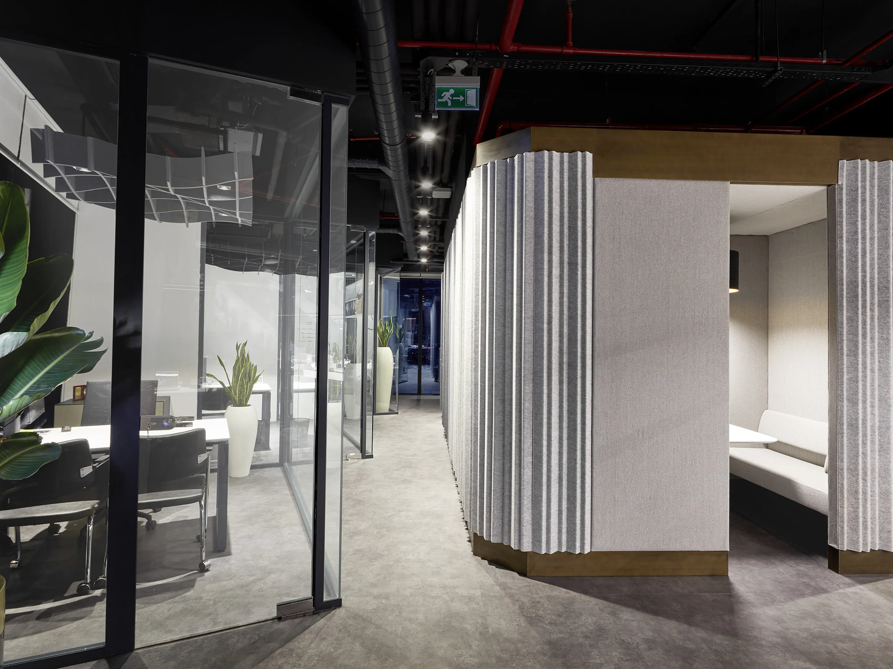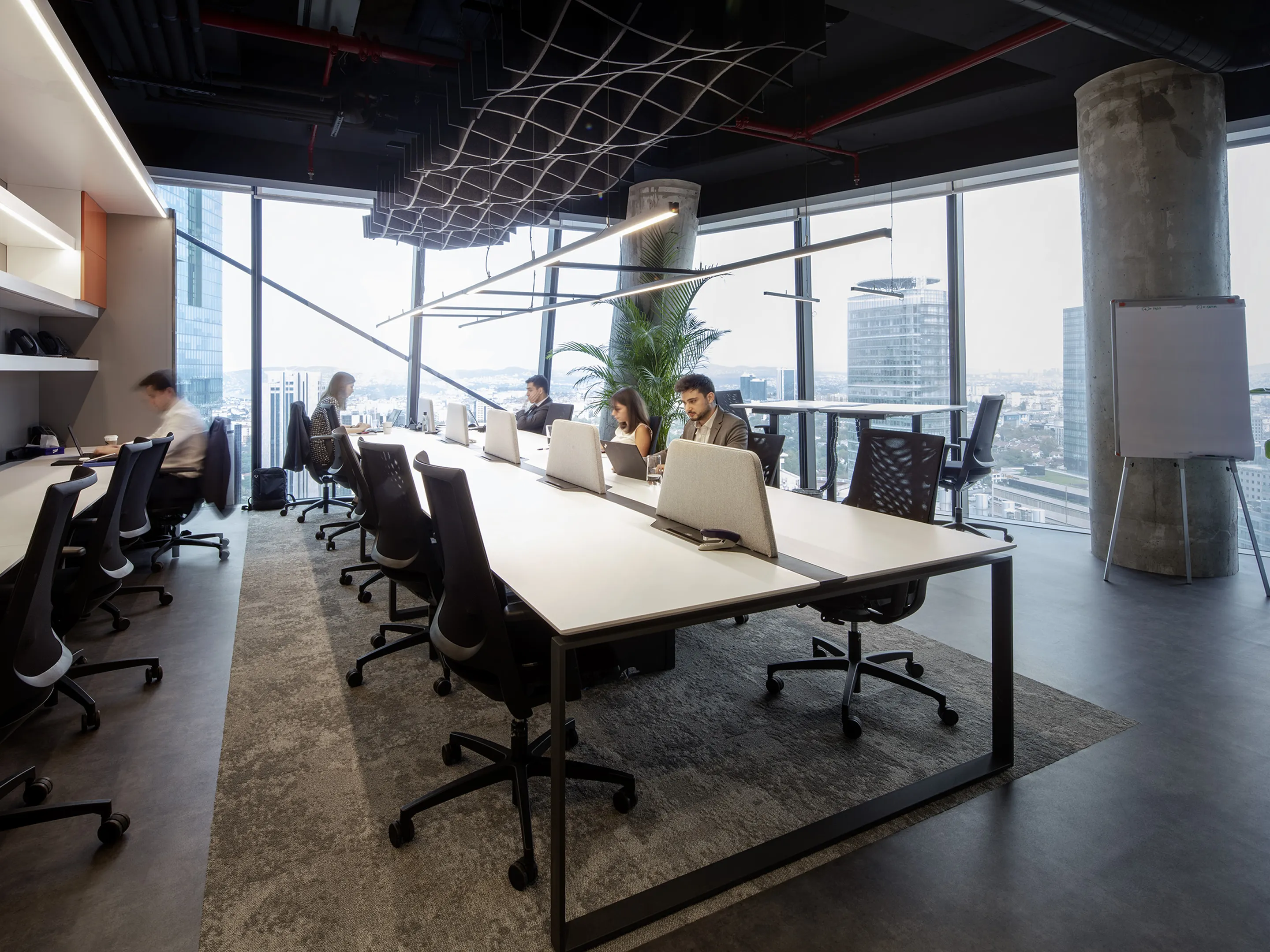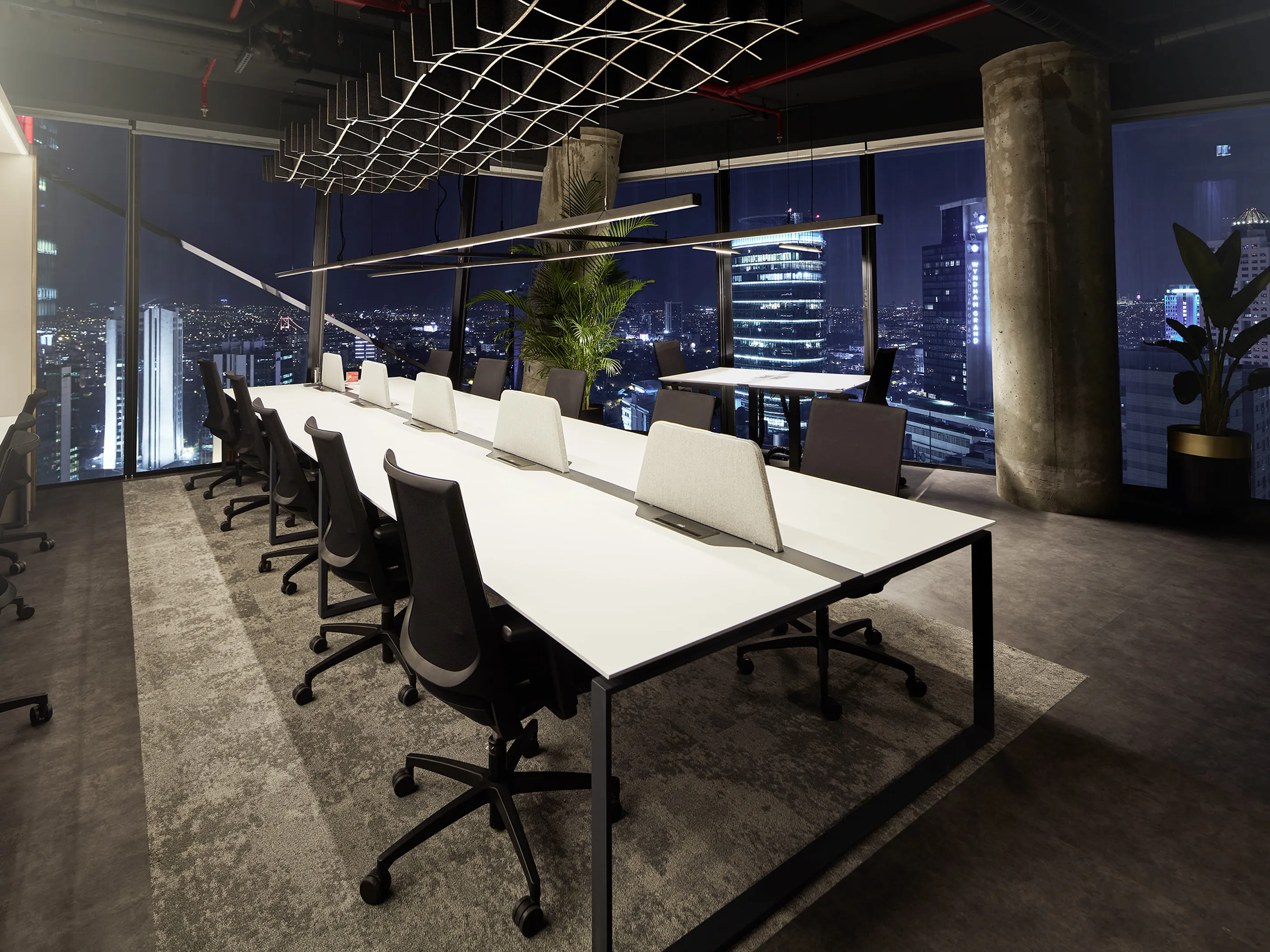 Akoestisch plafondpaneel hangend aan het plafond en een Sabins Waarde van 2,38 (m2).Incl. verstelbare staalkabels van 150cm, ophangset en installatiehandleiding