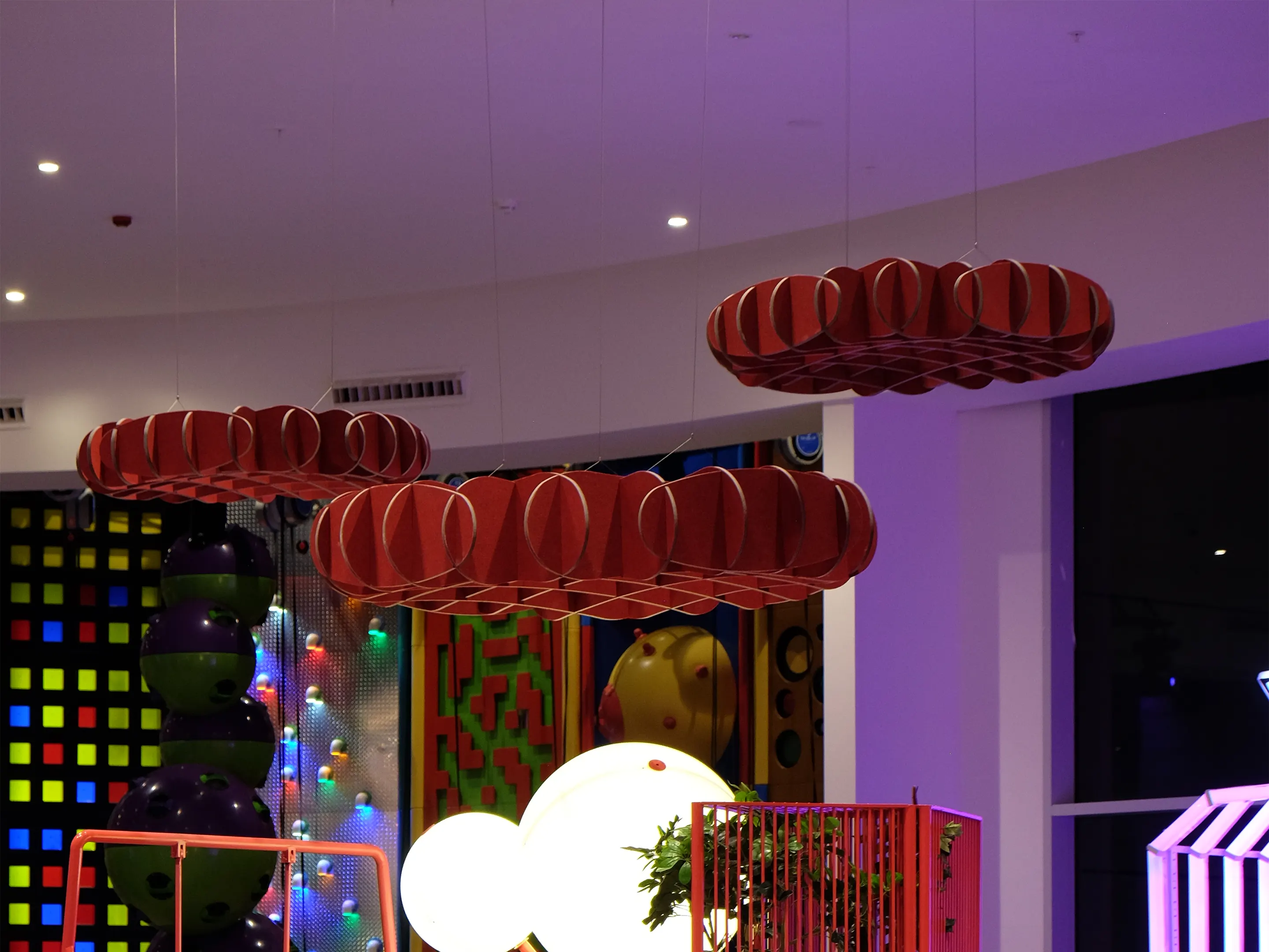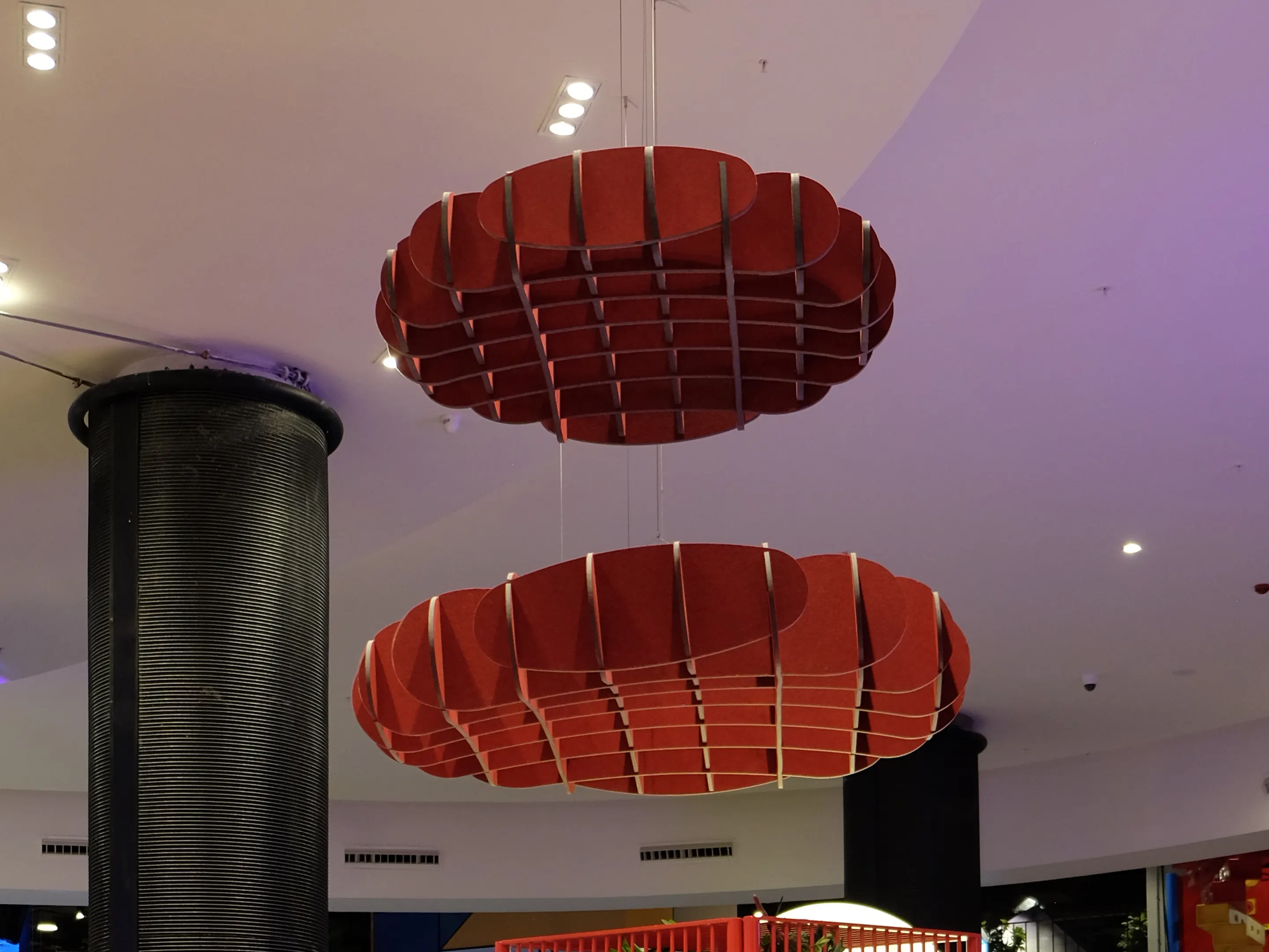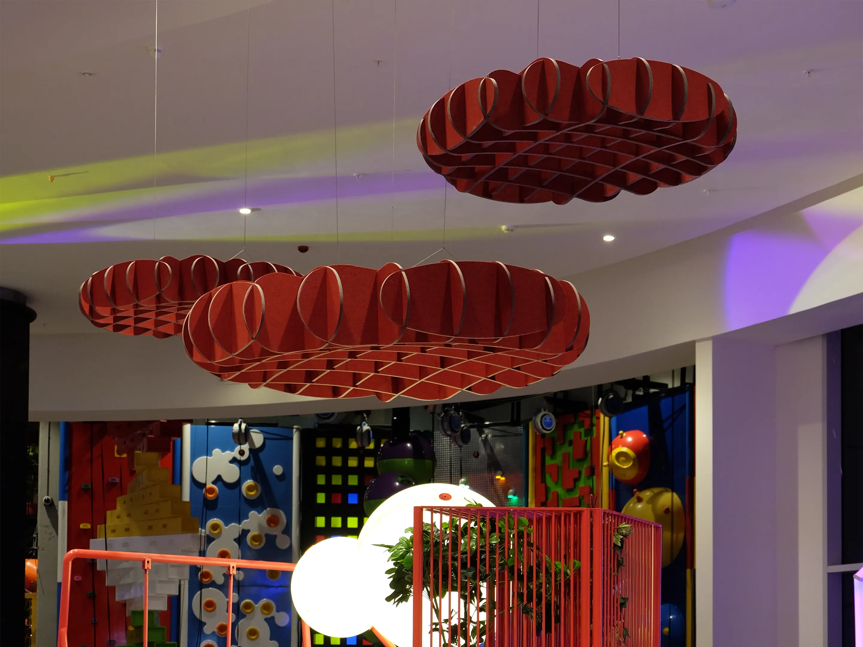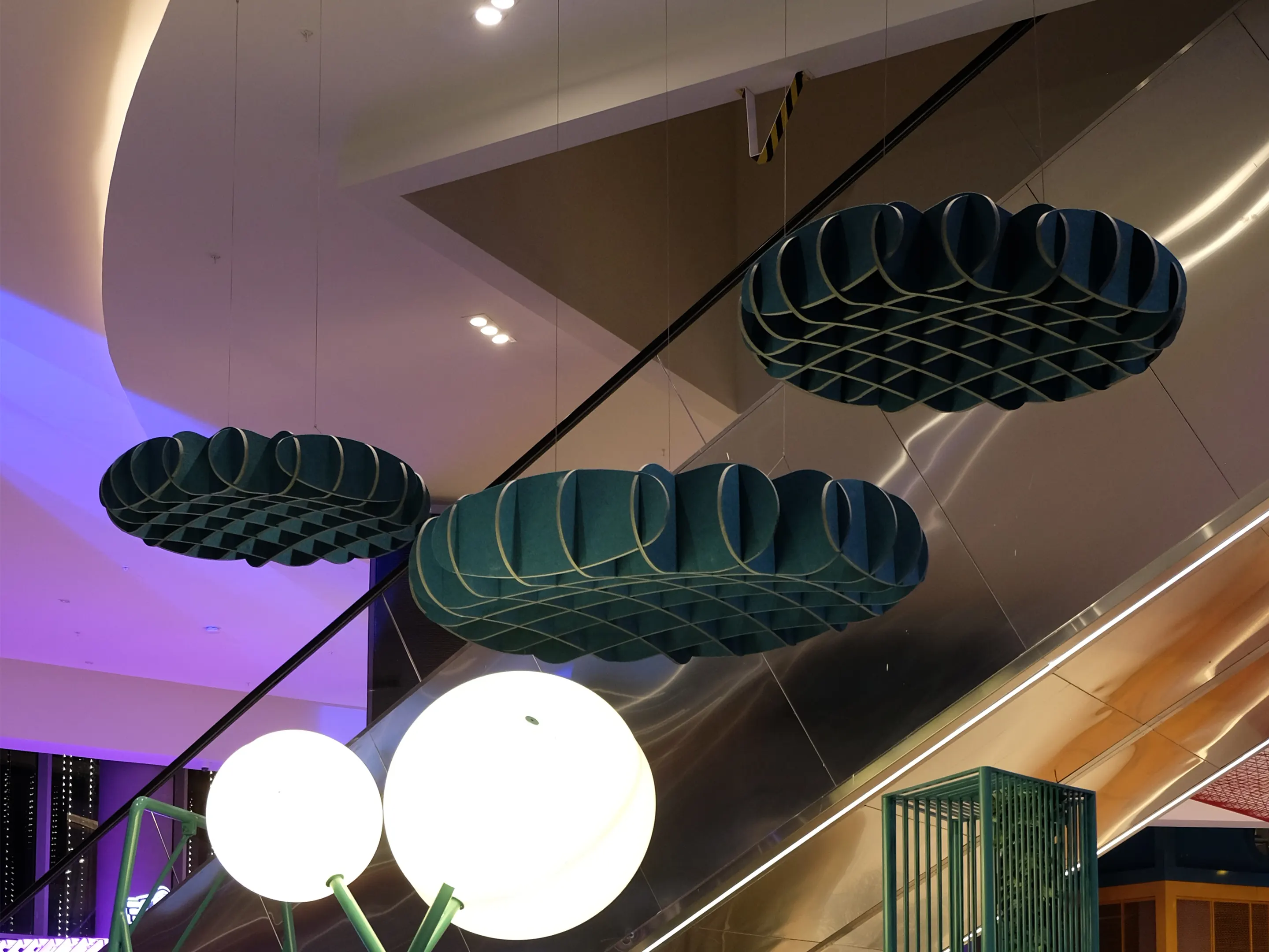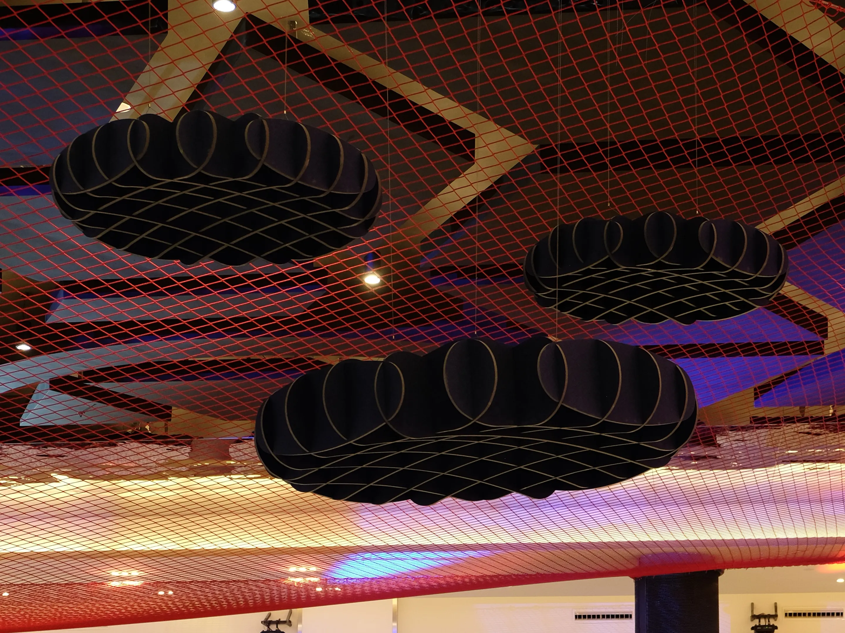 Akoestisch plafondpaneel hangend aan het plafond en een Sabins Waarde van 2,38 (m2).Incl. verstelbare staalkabels van 150cm, ophangset en installatiehandleiding