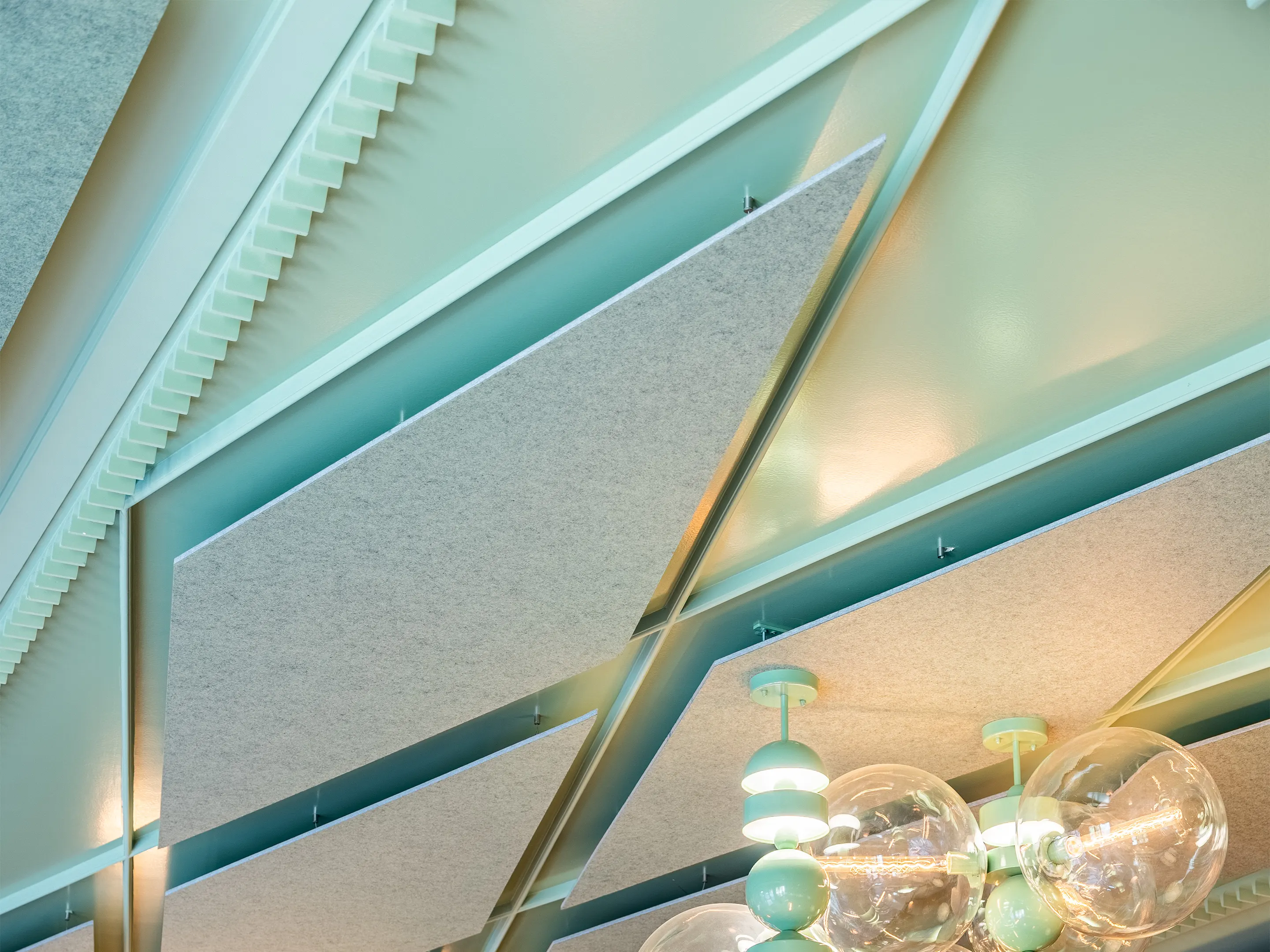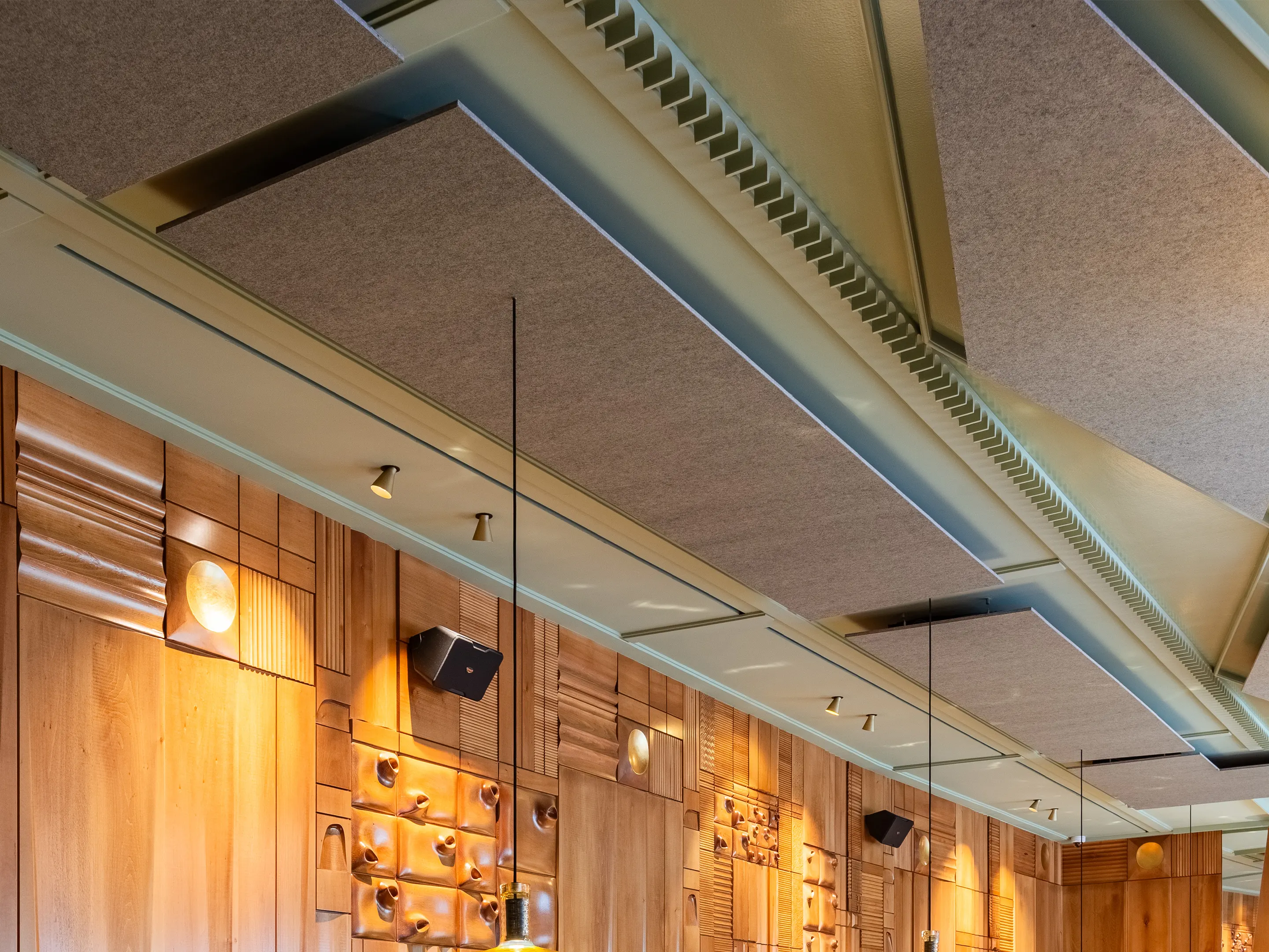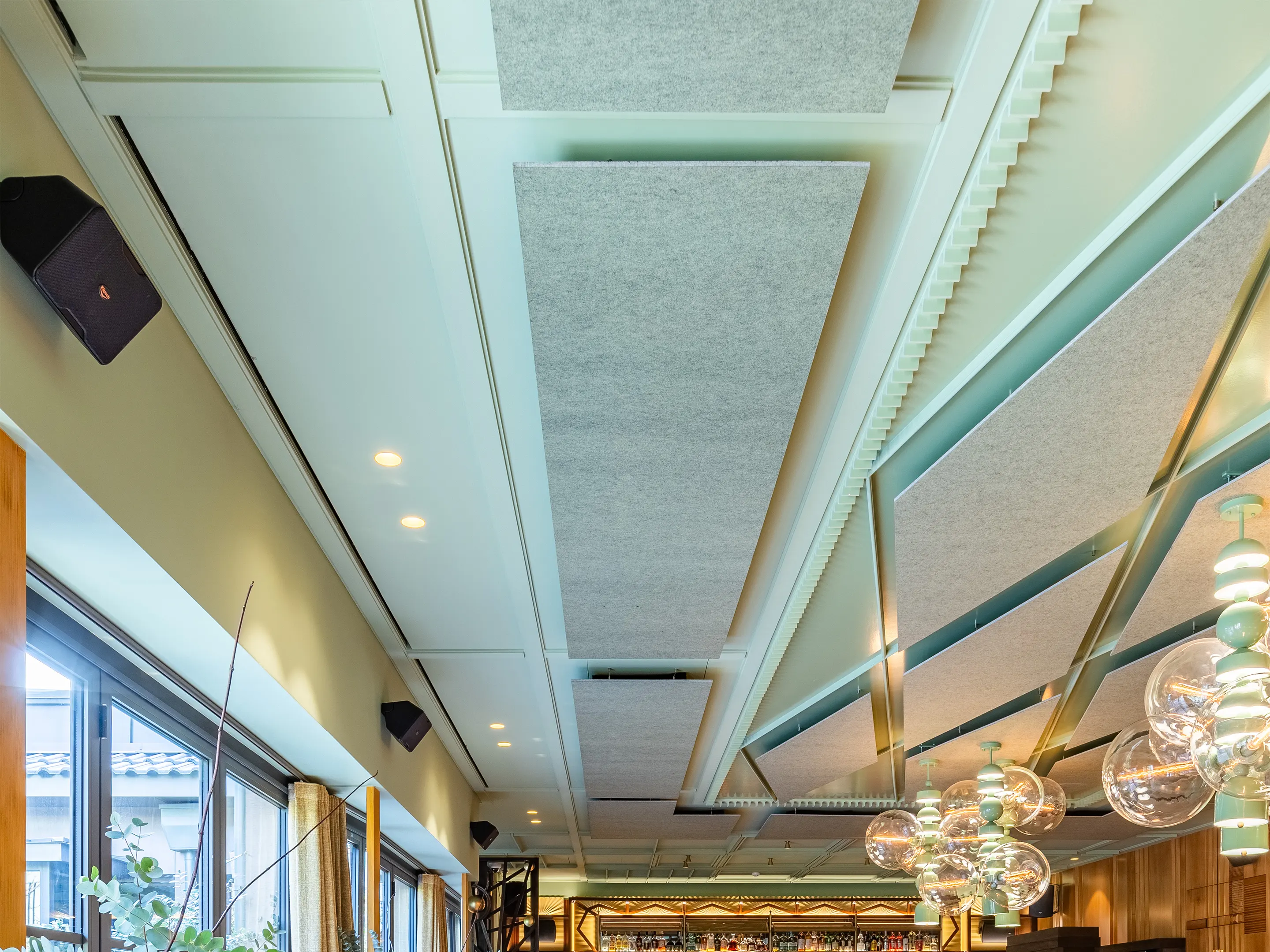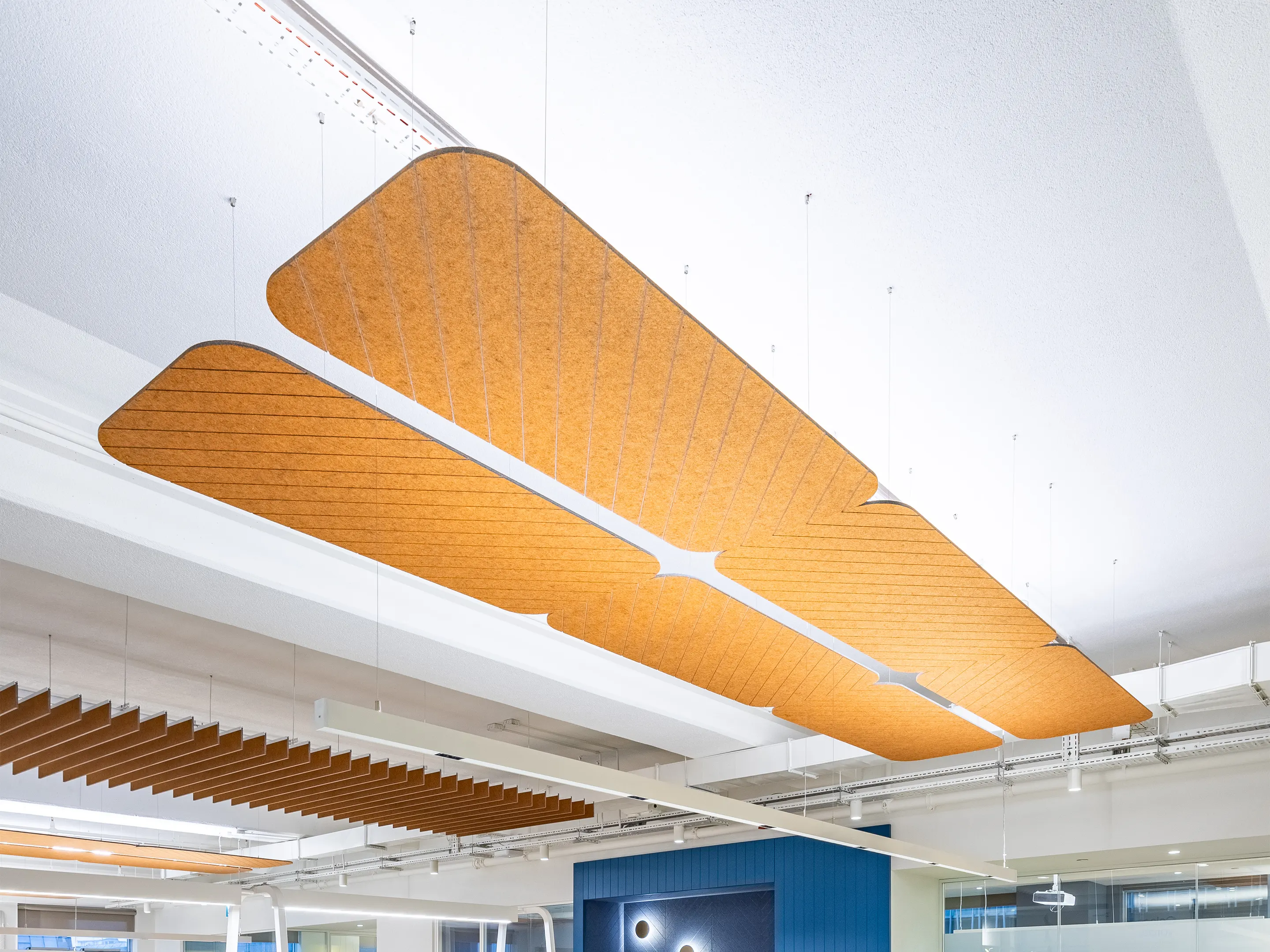 Rechthoekig akoestisch plafondpaneel incl. frame, hangend aan het plafond en een NRC Waarde van 0,80. Incl. frame, ophangset incl. verstelbare staalkabels van 300cm per kabel en installatiehandleiding