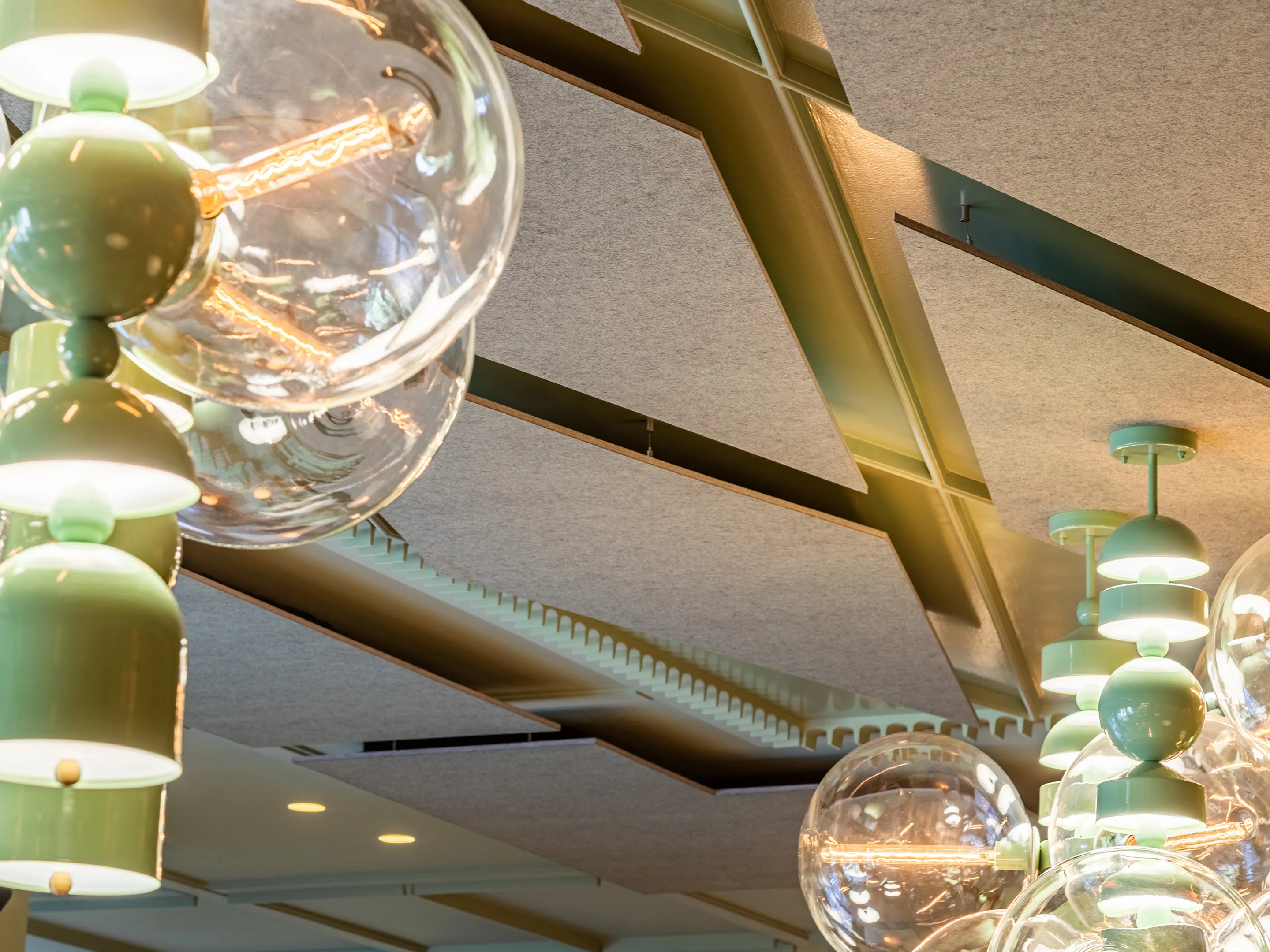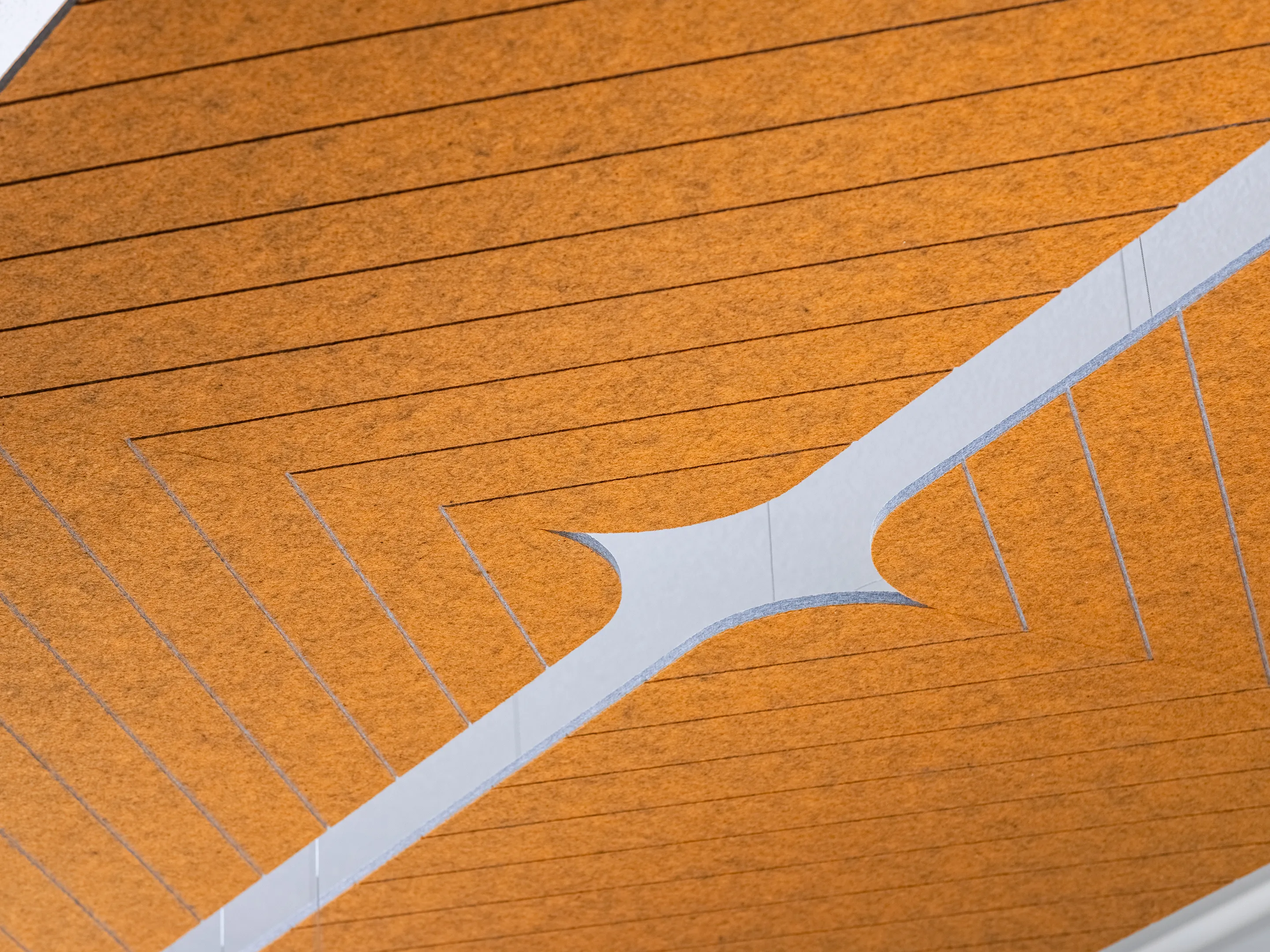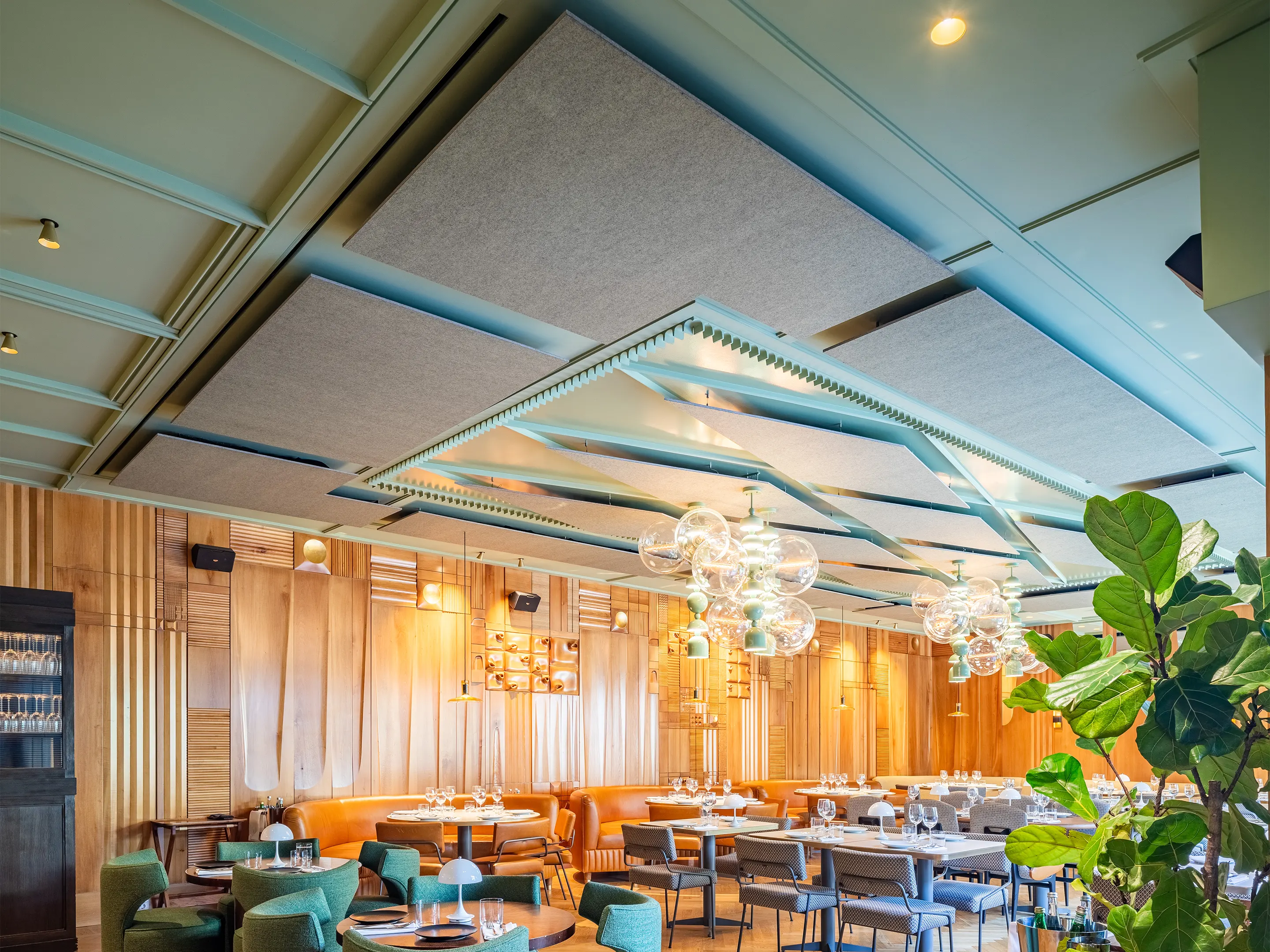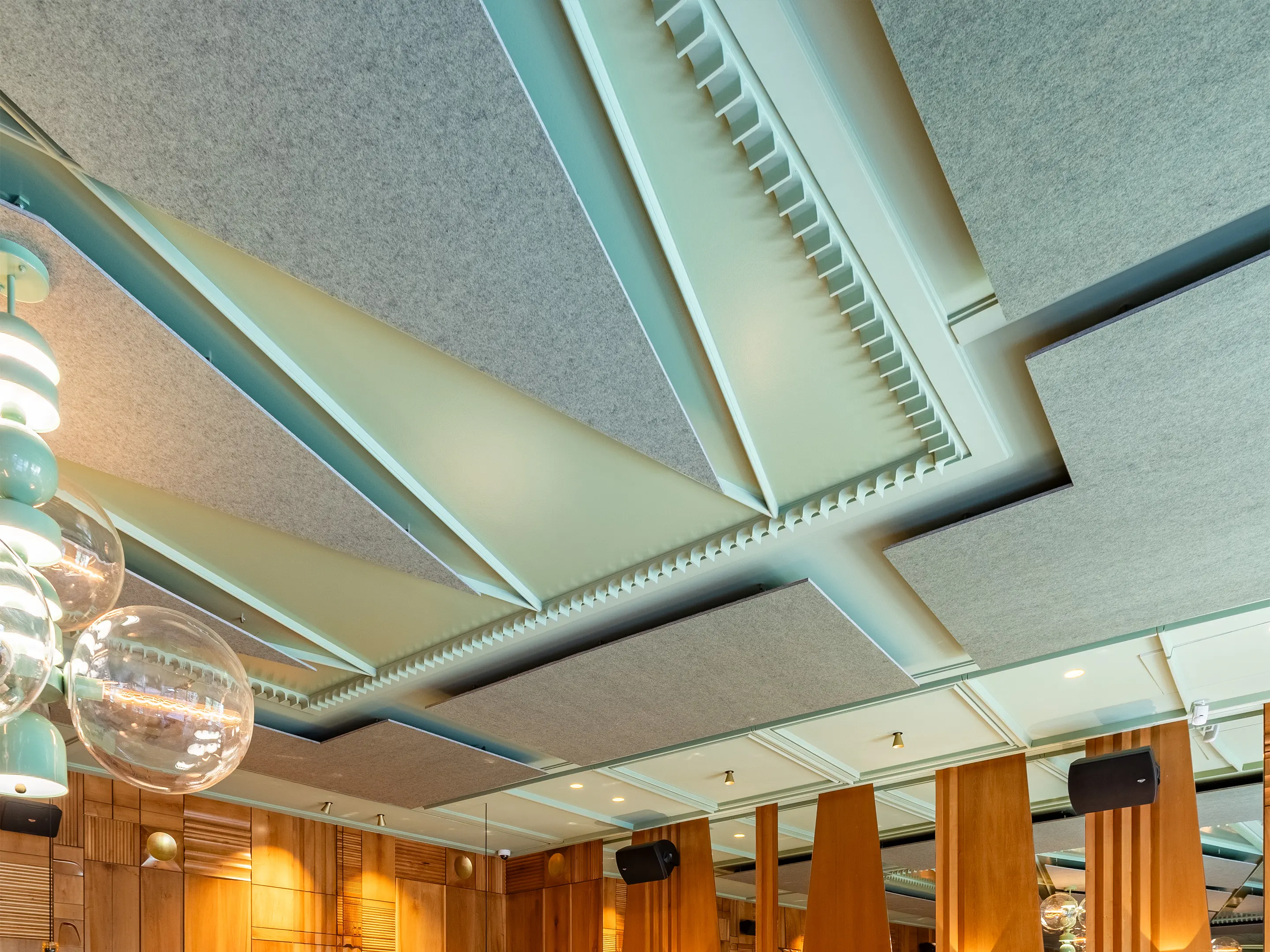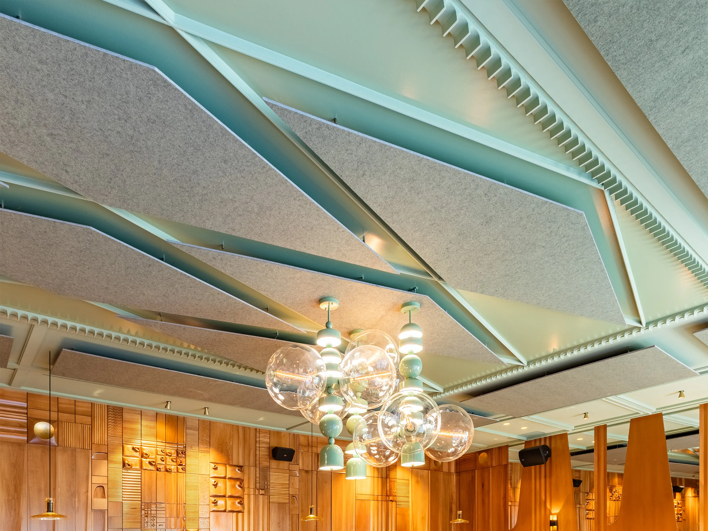 Rechthoekig akoestisch plafondpaneel incl. frame, hangend aan het plafond en een NRC Waarde van 0,80. Incl. frame, ophangset incl. verstelbare staalkabels van 300cm per kabel en installatiehandleiding