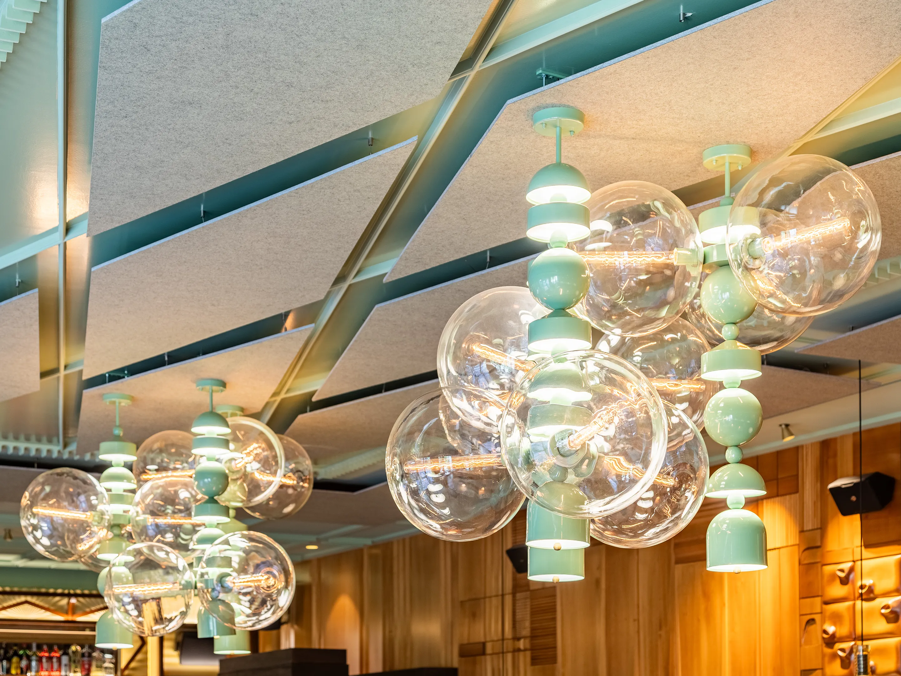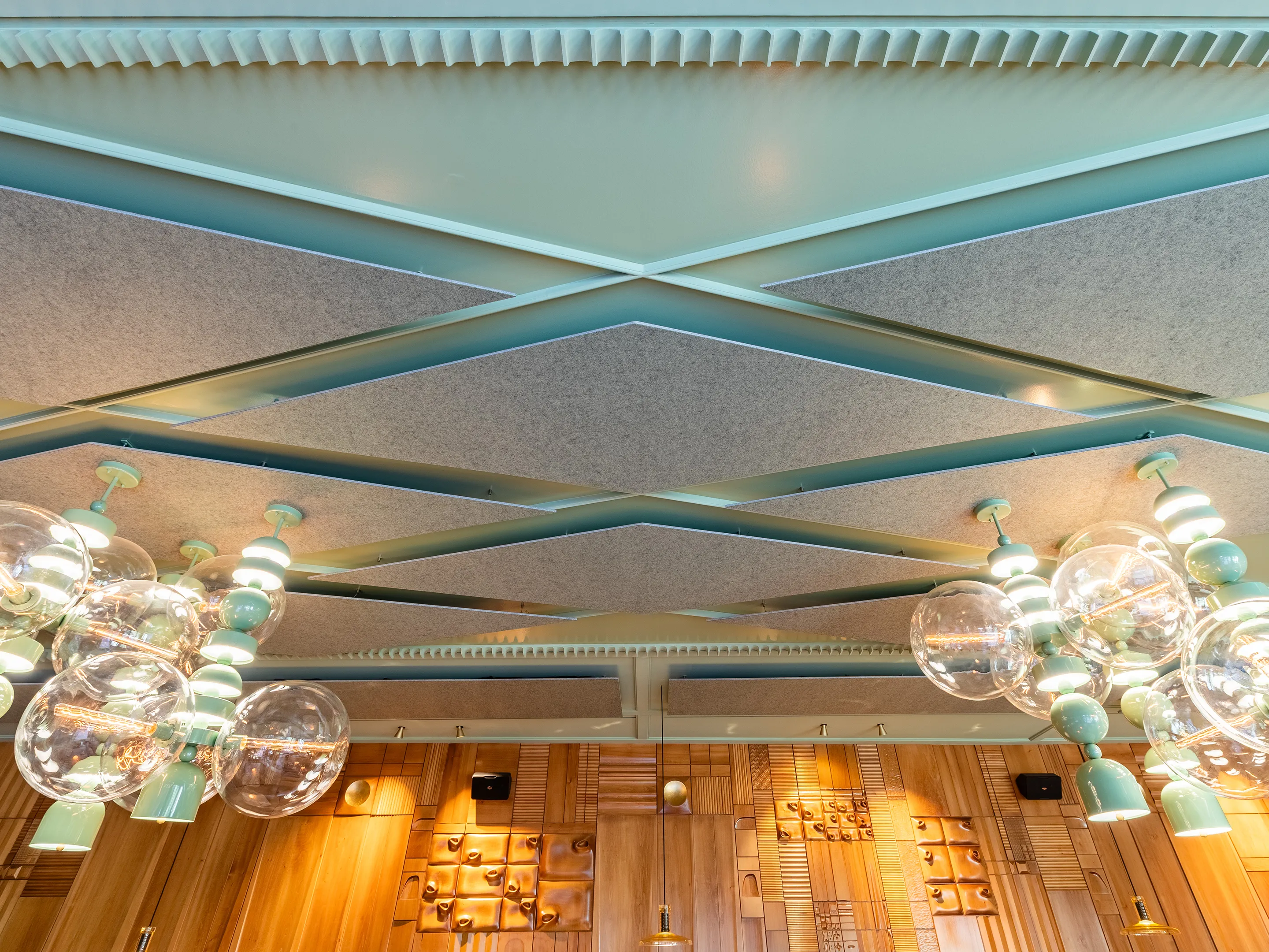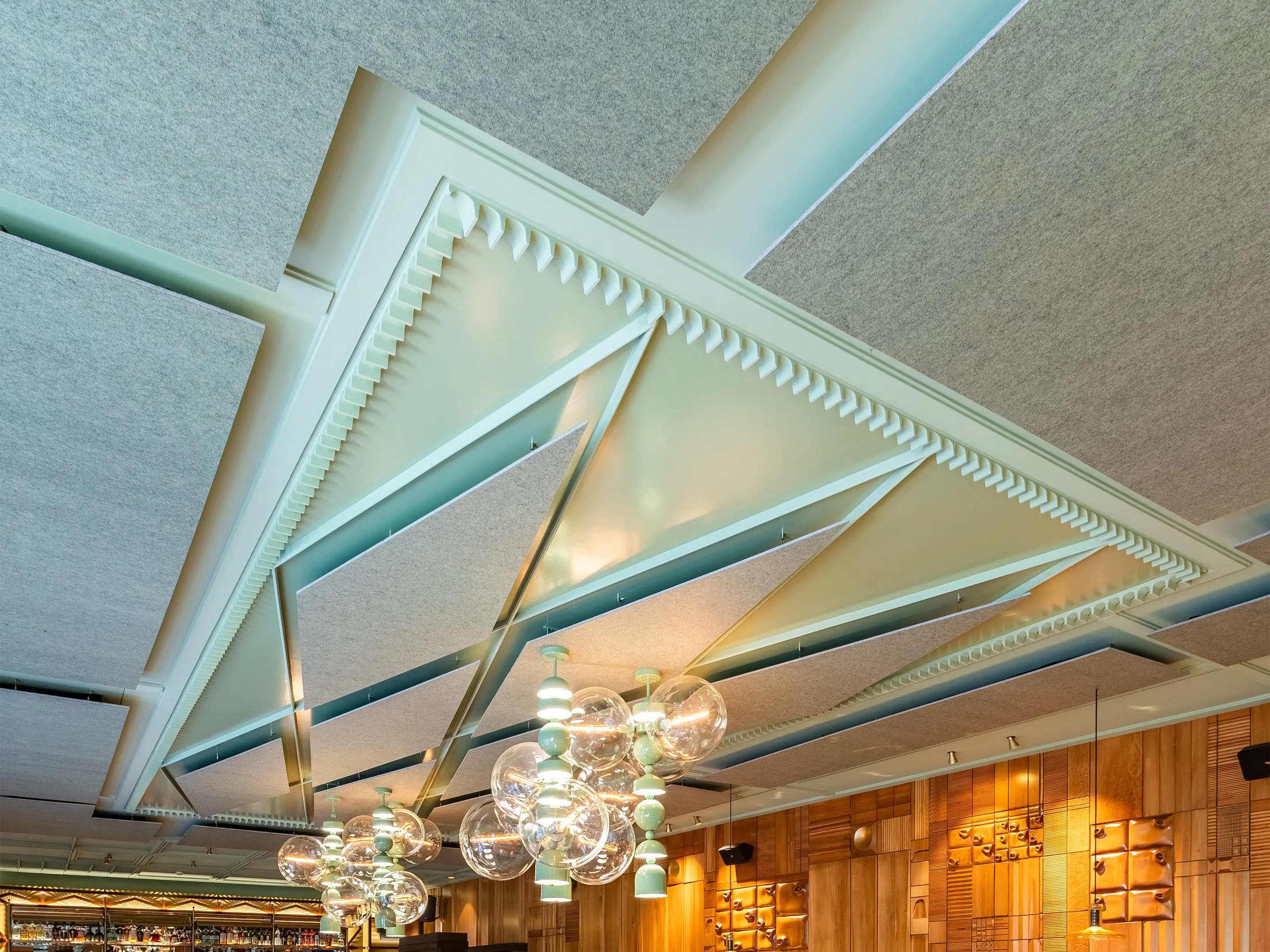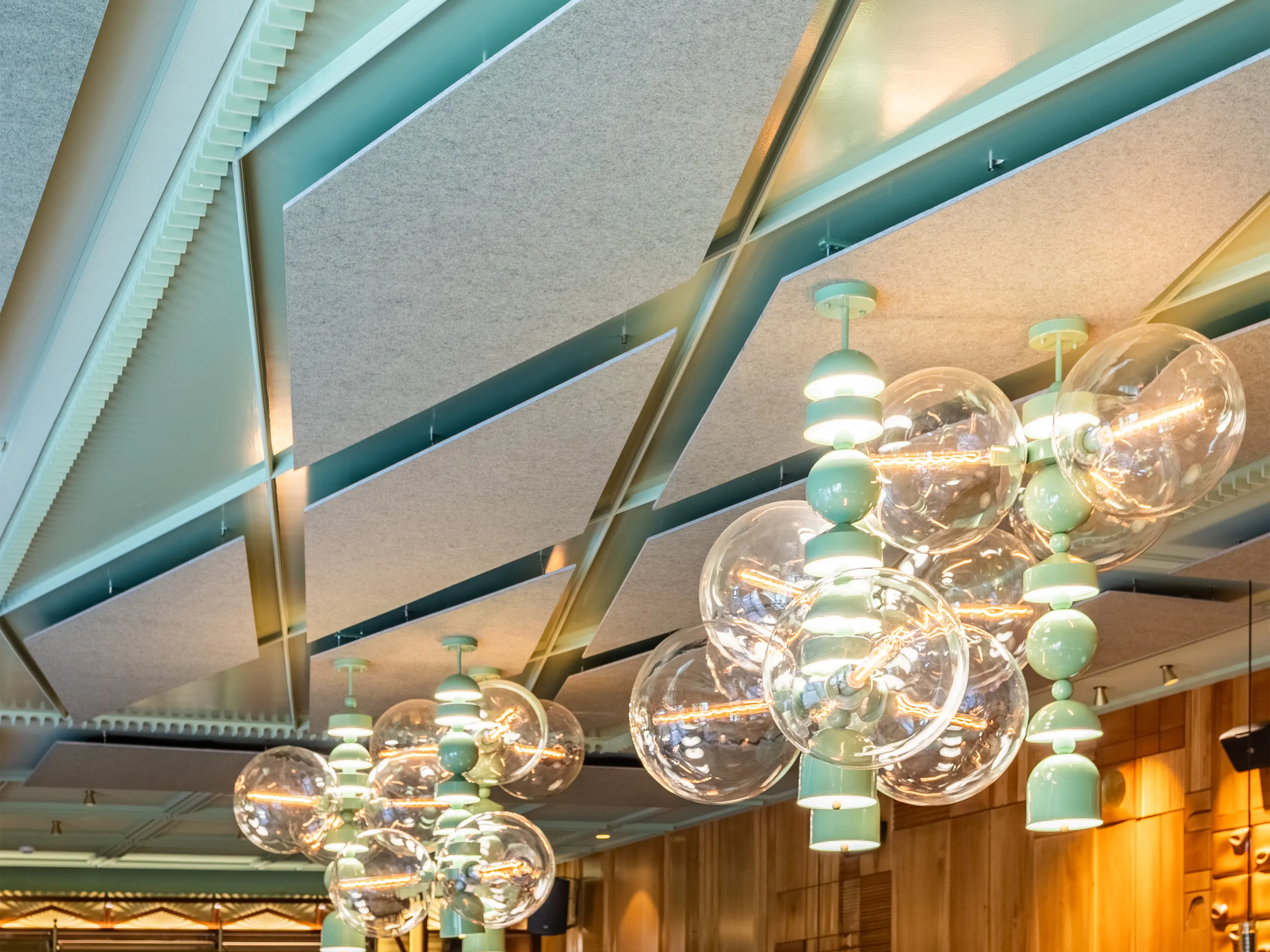 Rechthoekig akoestisch plafondpaneel incl. frame, hangend aan het plafond en een NRC Waarde van 0,80. Incl. frame, ophangset incl. verstelbare staalkabels van 300cm per kabel en installatiehandleiding