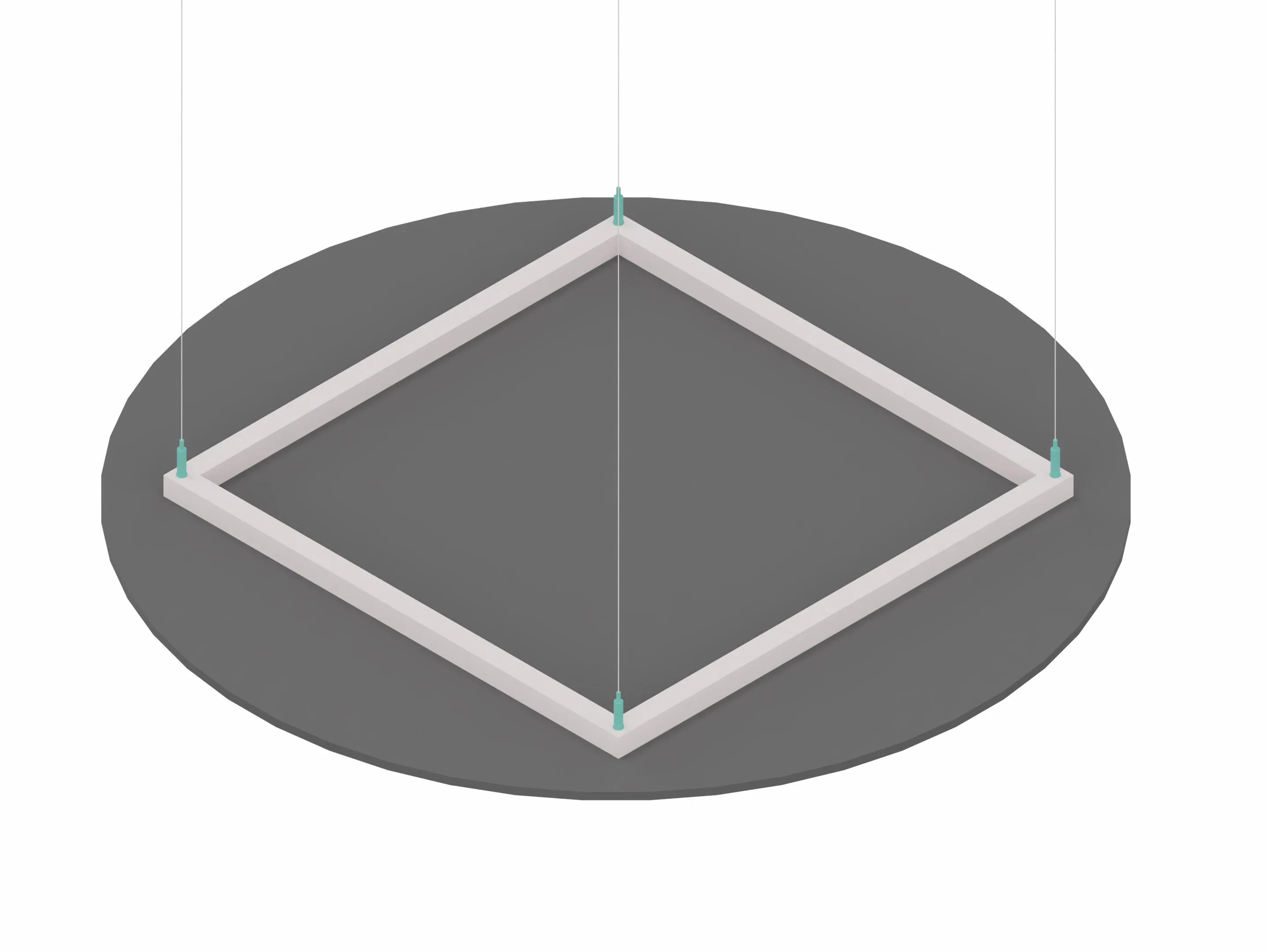 Vierkant akoestisch plafondpaneel incl. frame, hangend aan het plafond en een NRC Waarde van 0,80. Incl. frame, ophangset incl. verstelbare staalkabels van 300cm per kabel en installatiehandleiding