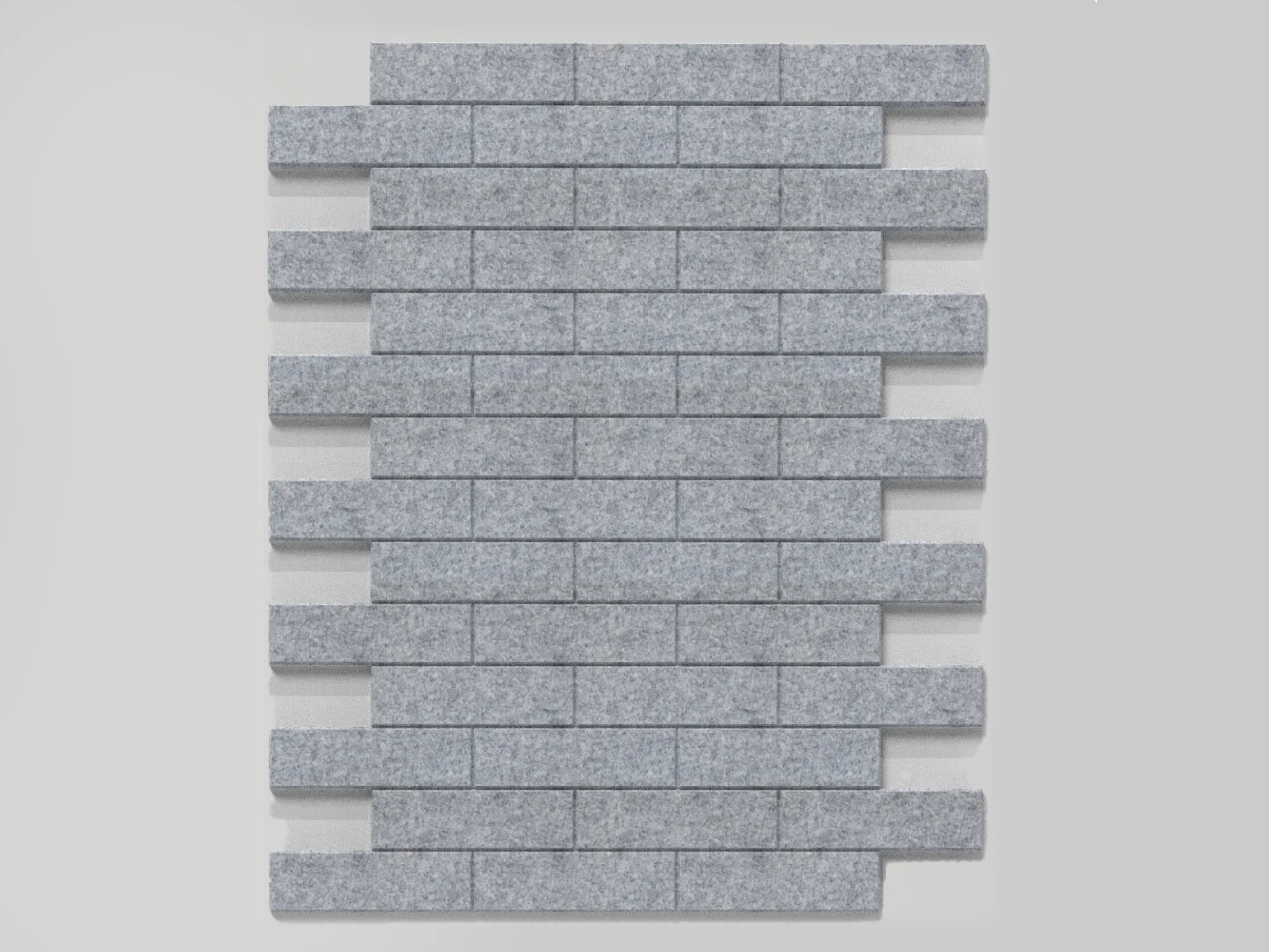 Rechthoekig akoestisch paneel met baksteen patroon en een NRC Waarde van 0,45. Met een V-vormige uitsnede in de rand. Bestellen als set in 1 kleur. Prijs per set.. Zonder installatieset. Voor montage zonder installatieset wordt Pattex geadviseerd.