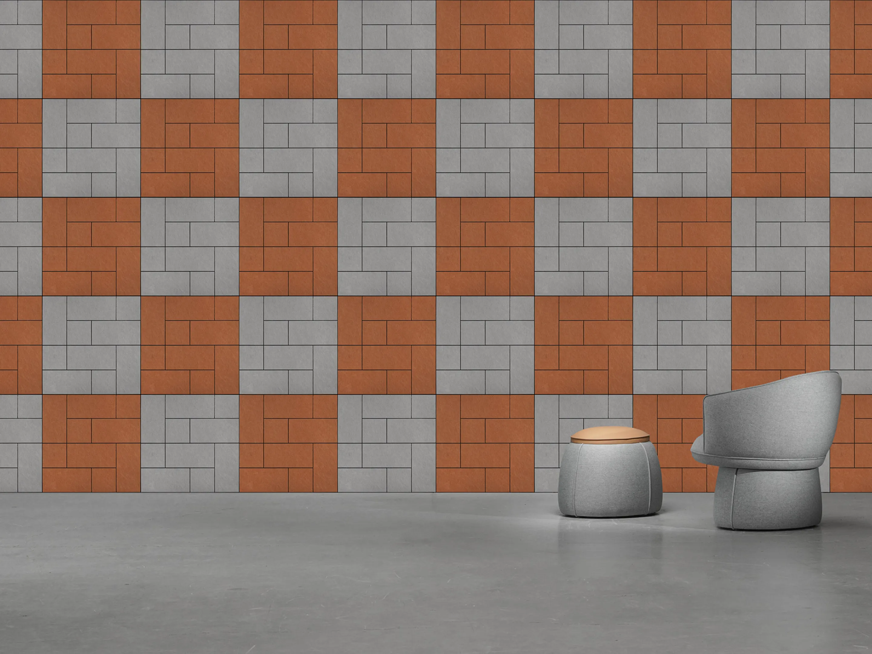 Akoestisch paneel met baksteen patroon die in het midden is gecentreerd en een NRC Waarde van 0,45. Met een V-vormige uitsnede in de rand. Bestellen per set/kleur/soort. Zonder installatieset. Voor montage zonder installatieset wordt Pattex geadviseerd.