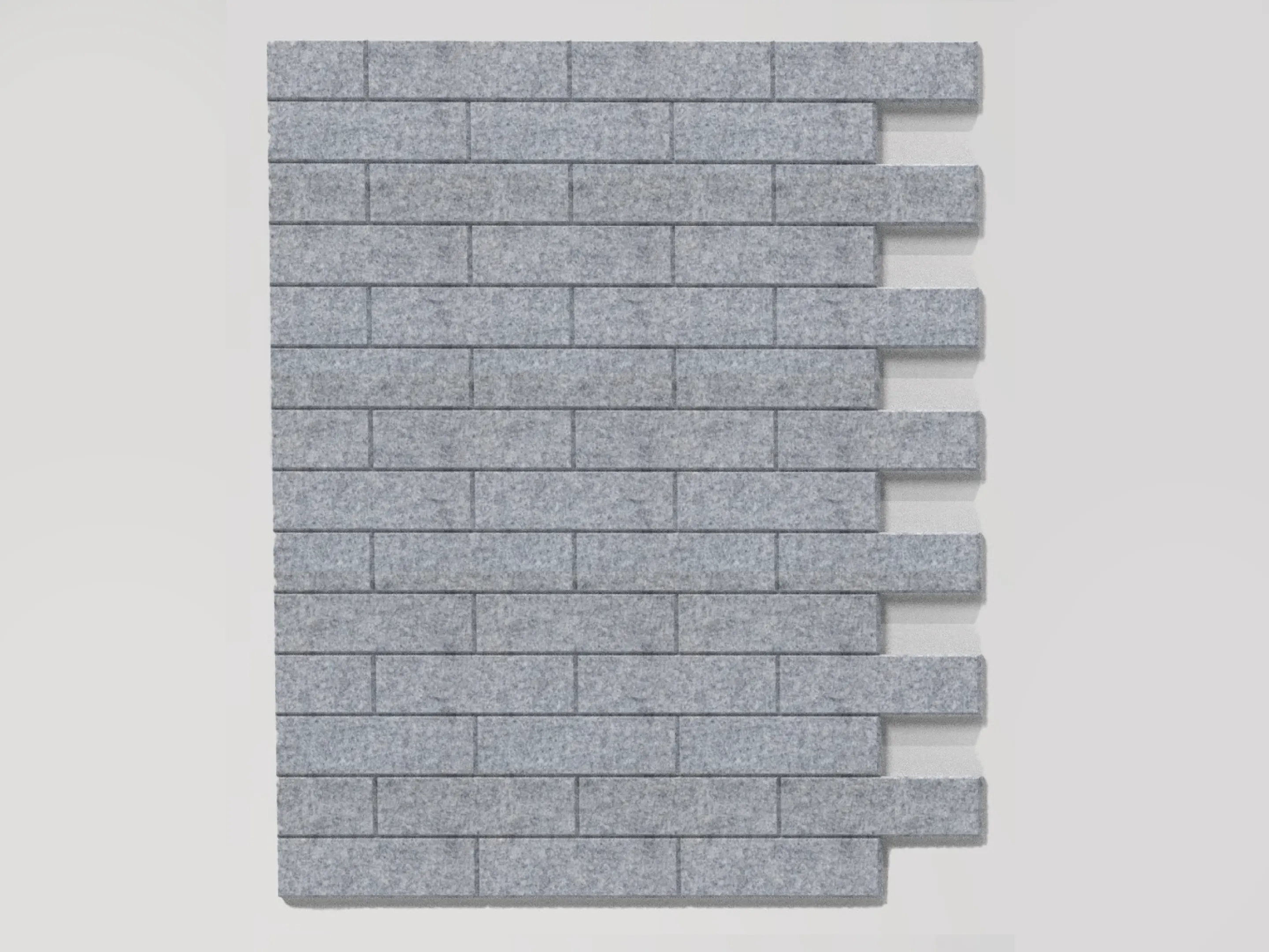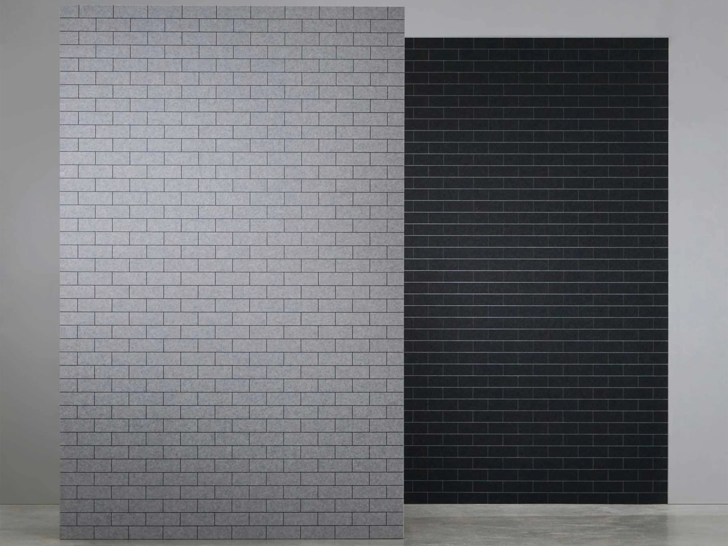 Akoestisch paneel met baksteen patroon die links is uitgelijnd en een NRC Waarde van 0,45. Met een V-vormige uitsnede in de rand. Bestellen per set/kleur/soort. Zonder installatieset. Voor montage zonder installatieset wordt Pattex geadviseerd.