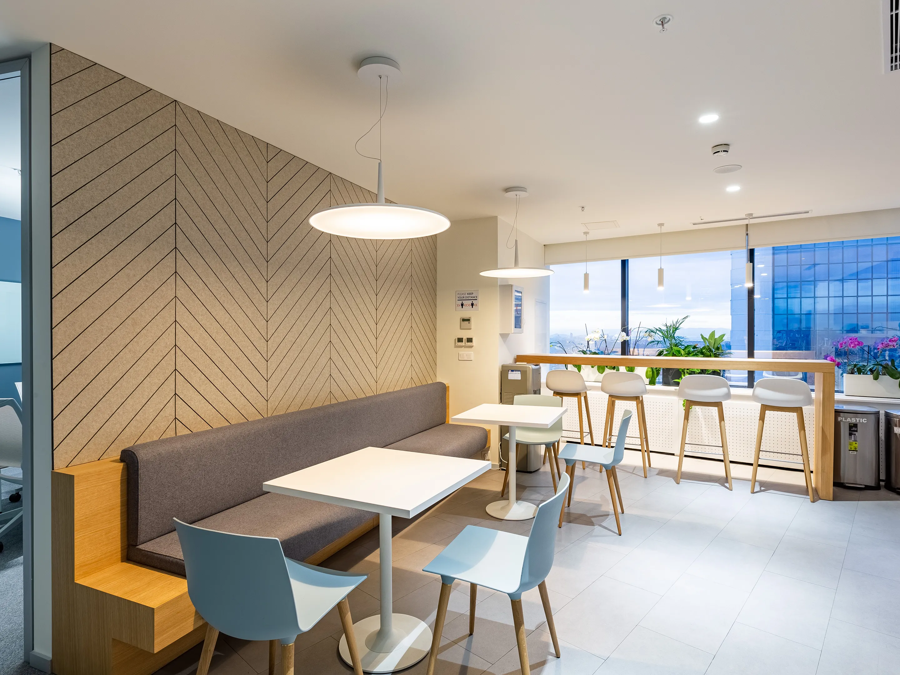 Rechthoekig akoestisch paneel met een links diagonaal strepen patroon en een NRC Waarde van 0,45. Met een V-vormige uitsnede in de rand. Bestellen als set in 1 kleur. Prijs per set.. Zonder installatieset. Voor montage wordt Pattex geadviseerd.