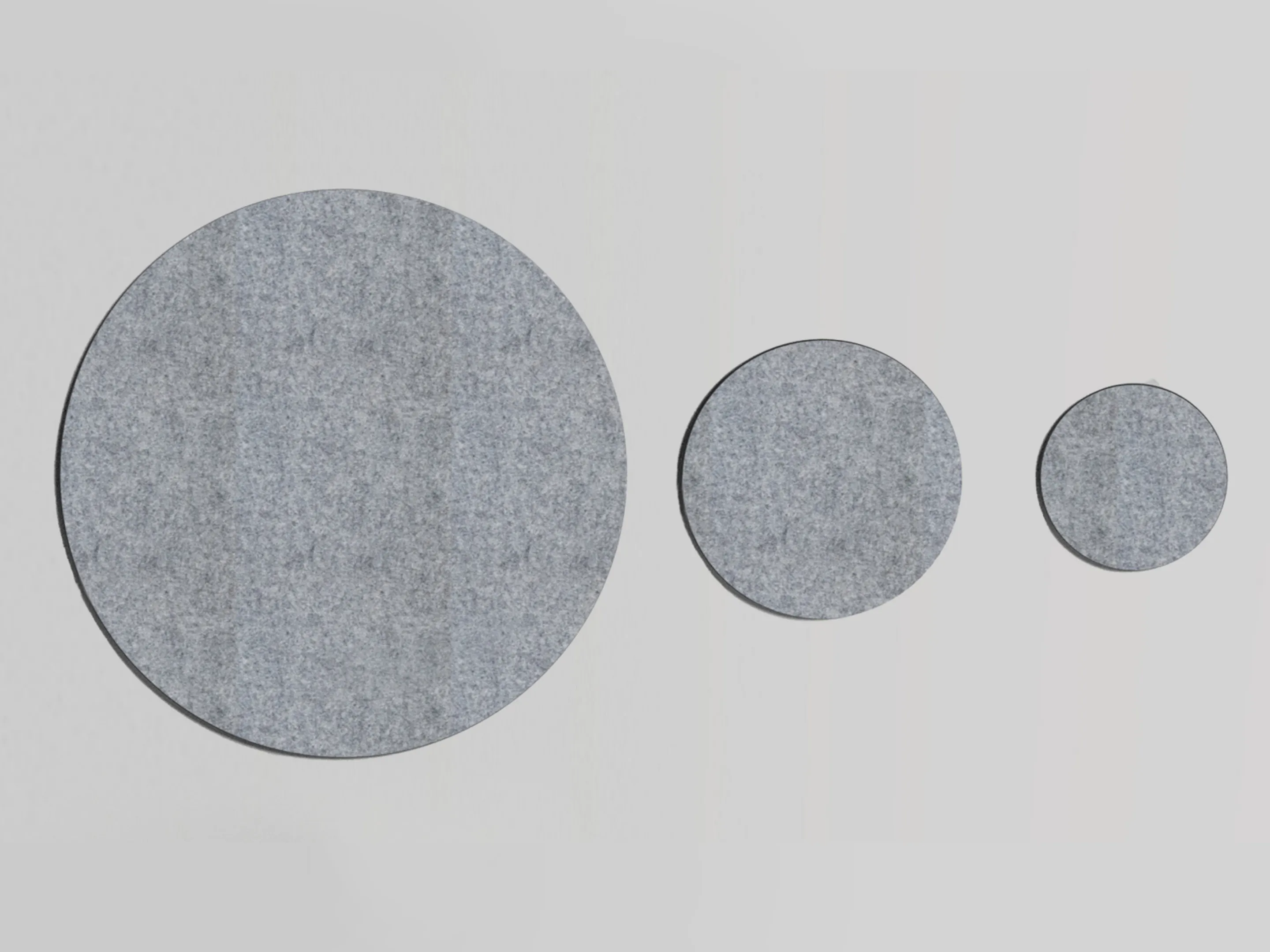 Ronde akoestische tegels met een NRC Waarde van 0,45. Met een V-vormige uitsnede in de rand. Bestellen als set in 1 kleur. Prijs per set.. Zonder installatieset. Voor montage zonder installatieset wordt Pattex geadviseerd.