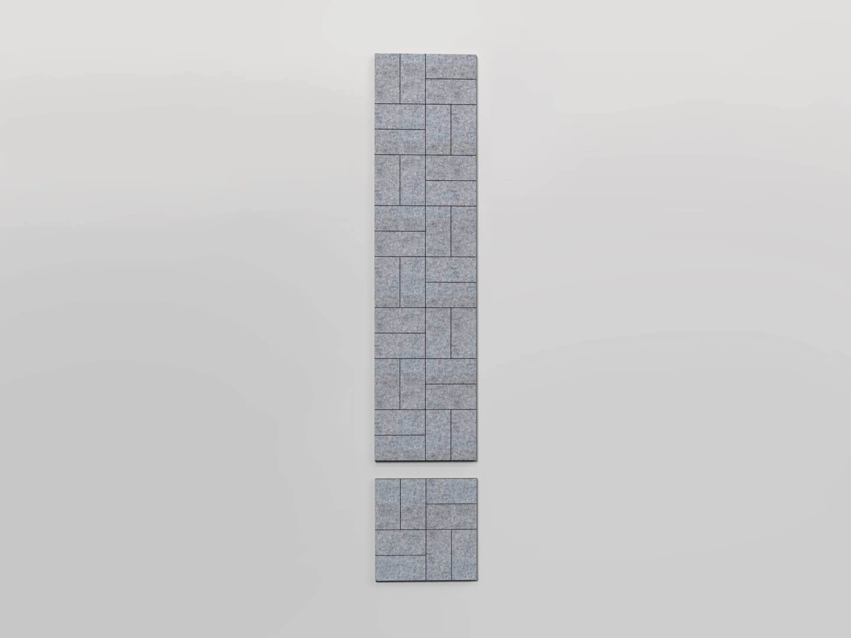 Rechthoekig akoestisch paneel met rechthoekige vlakken in grill patroon en een NRC Waarde van 0,45. Met een V-vormige uitsnede in de rand. Bestellen als set in 1 kleur. Prijs per set.. Zonder installatieset. Voor montage wordt Pattex geadviseerd.