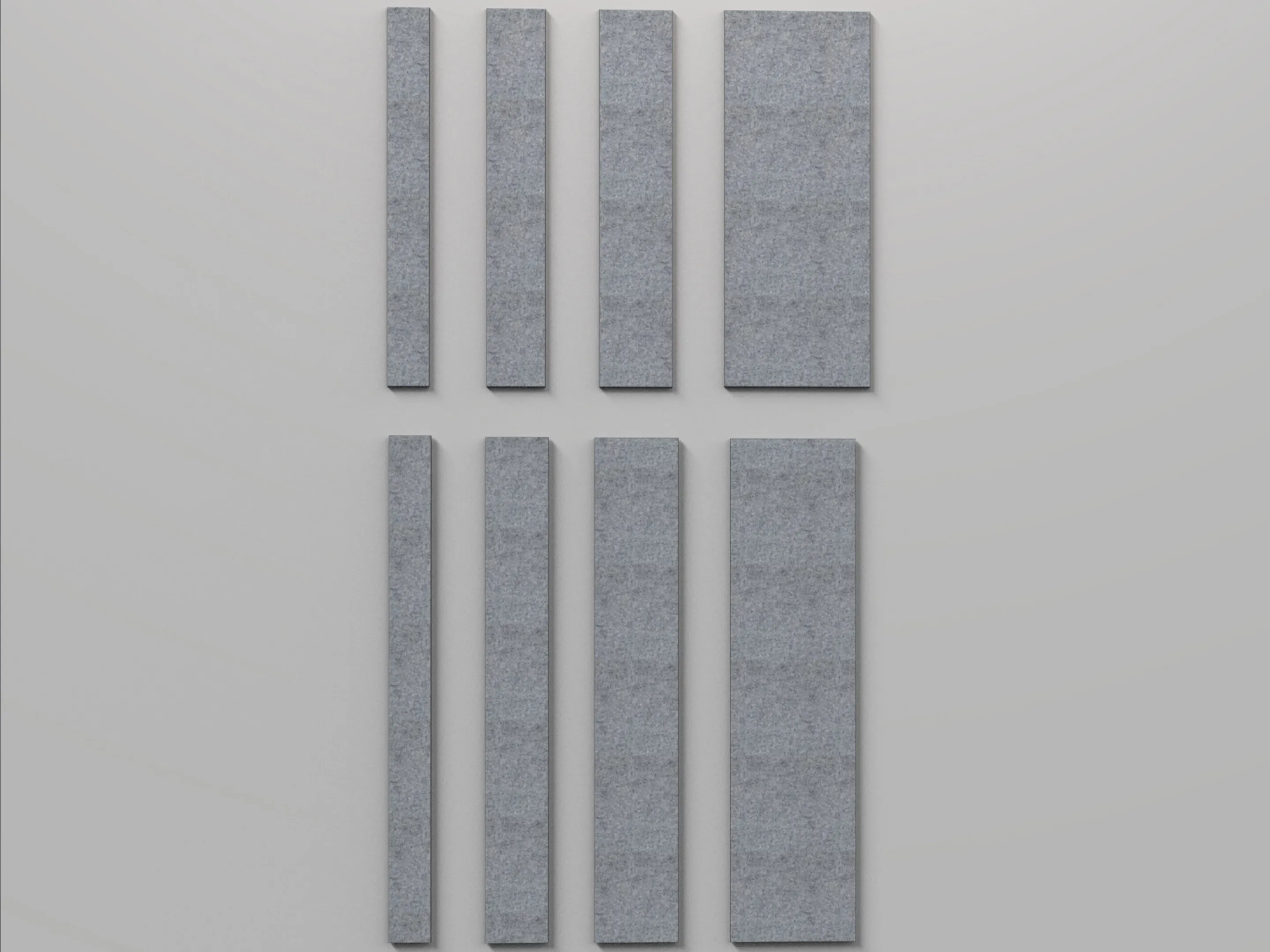 Rechthoekige akoestische tegels zonder patroon en een NRC Waarde van 0,45. Met een V-vormige uitsnede in de rand. Bestellen als set in 1 kleur. Prijs per set.. Zonder installatieset. Voor montage zonder installatieset wordt Pattex geadviseerd.