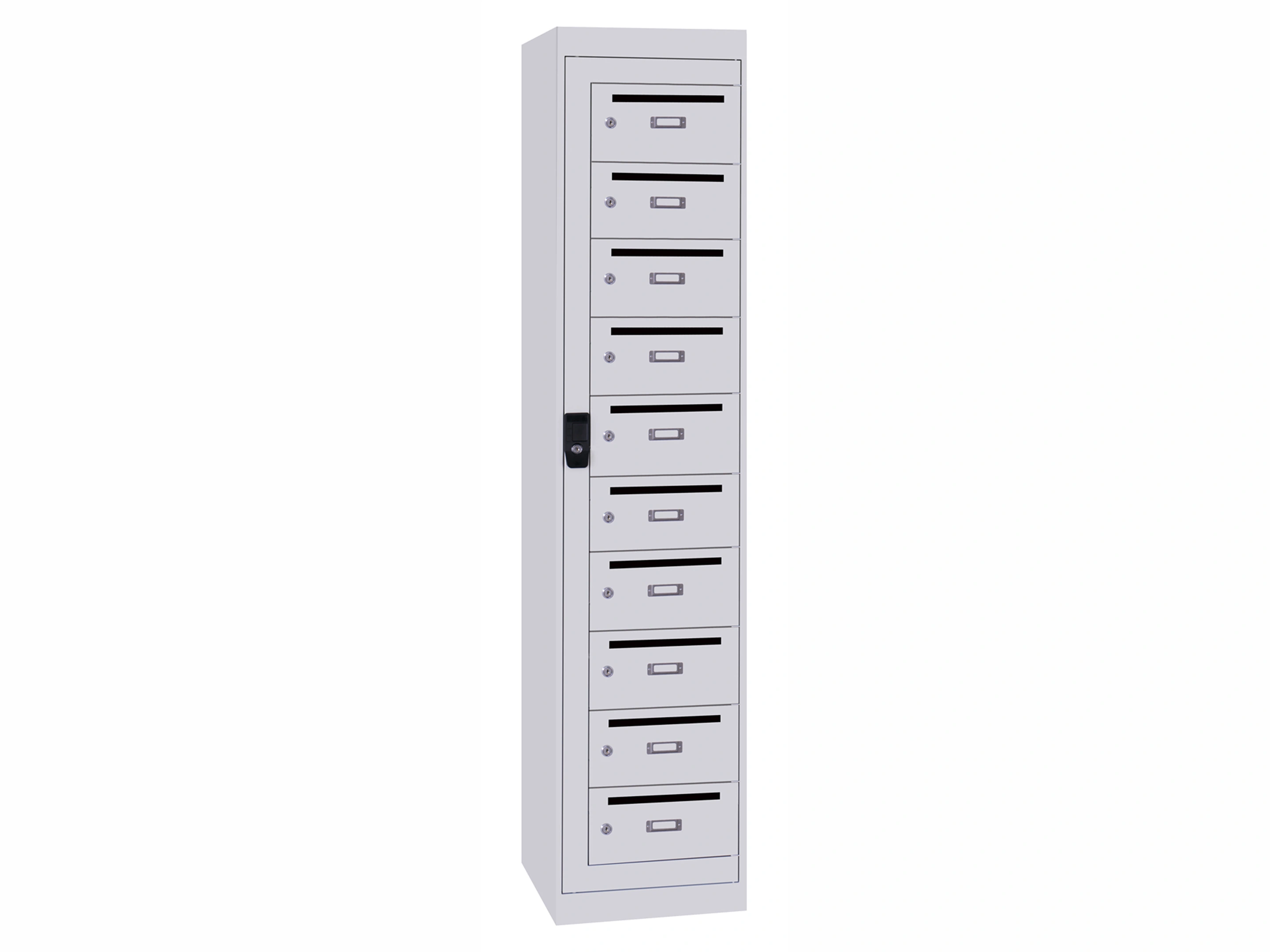 Postvakkenkast - 10 deurs, voet, 190x40x50cm, grijs/grijs, cilinder