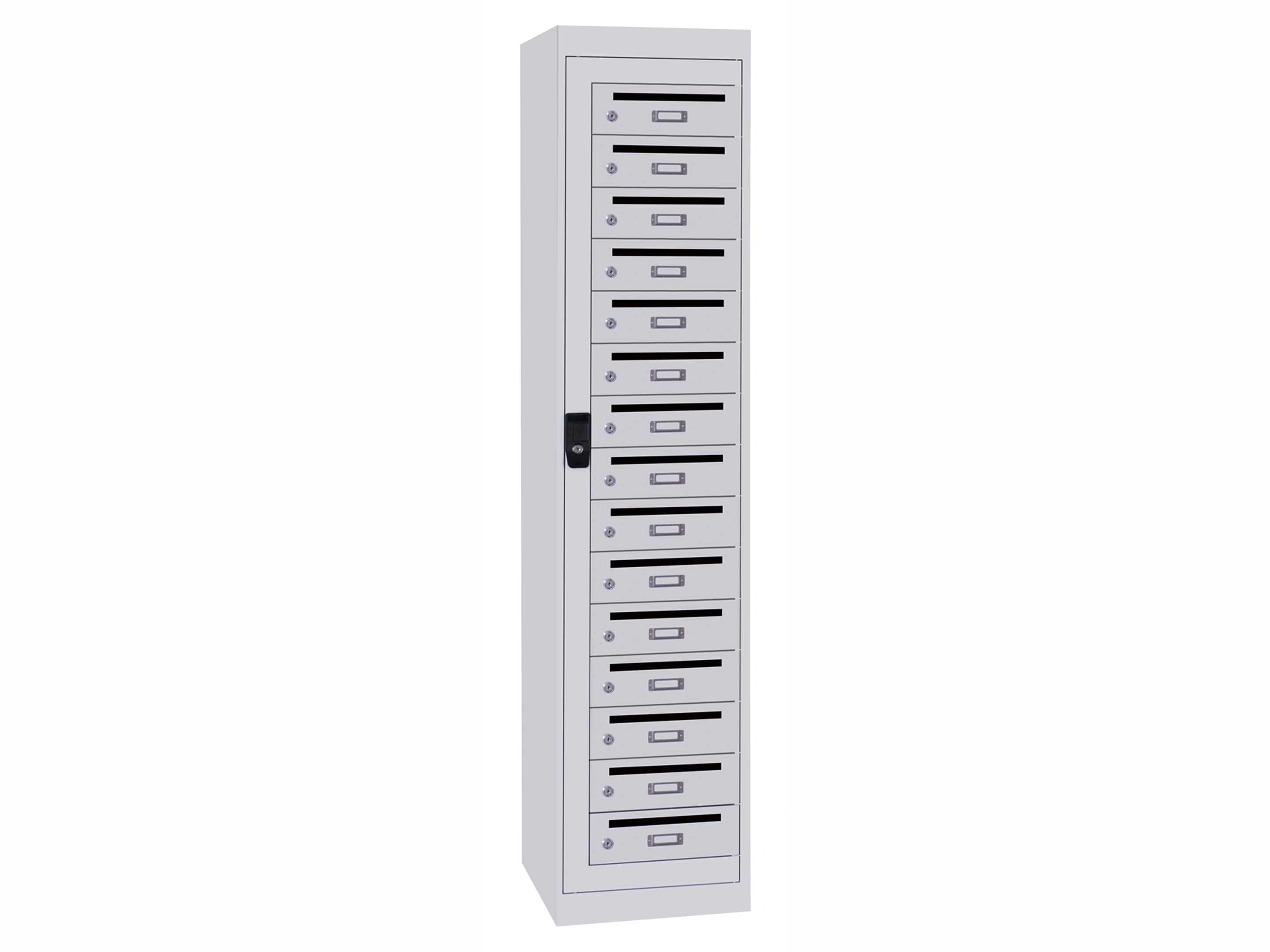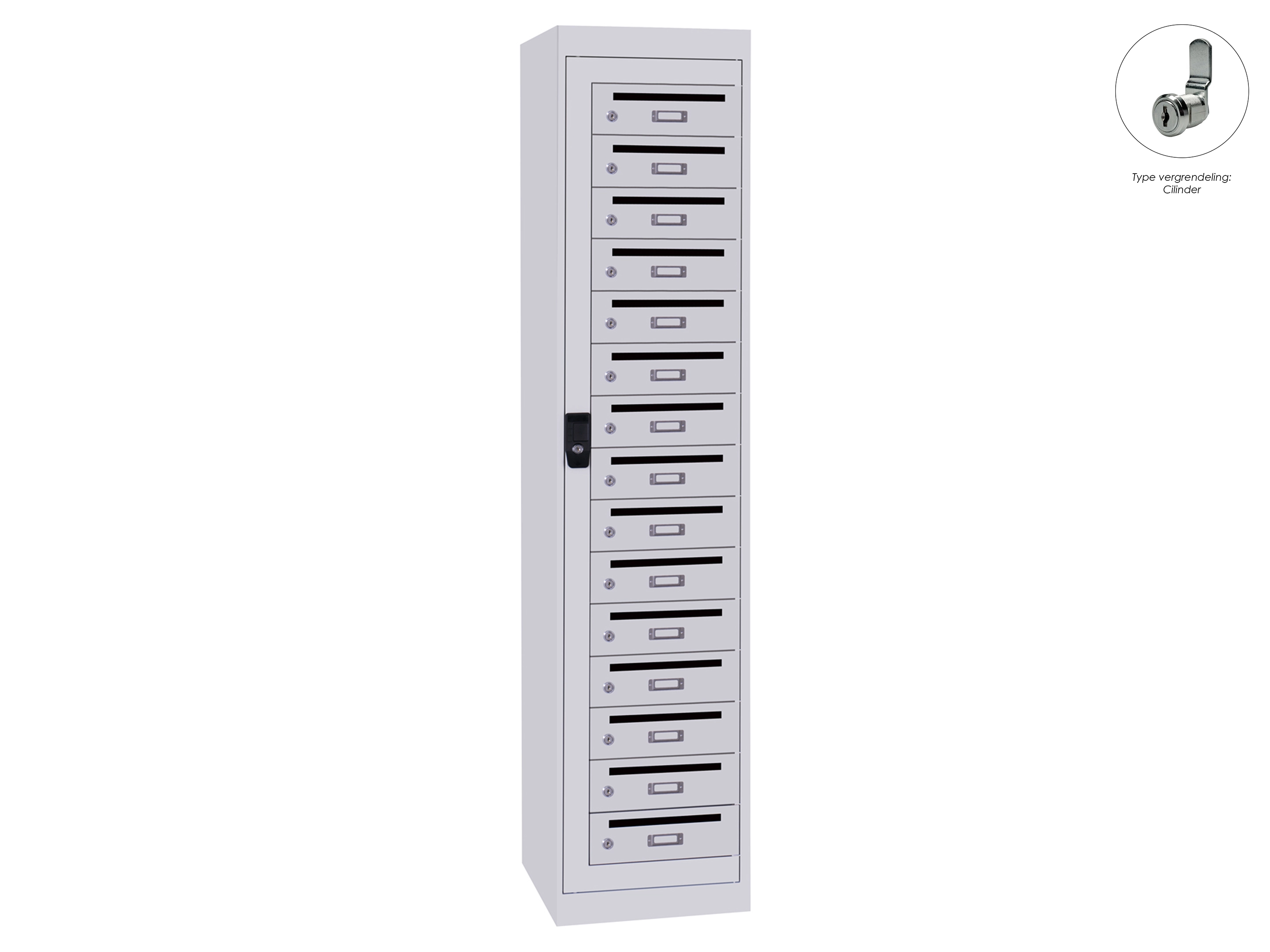 Postvakkenkast - 15 deurs, 180x40x50cm, grijs/grijs, cilinder