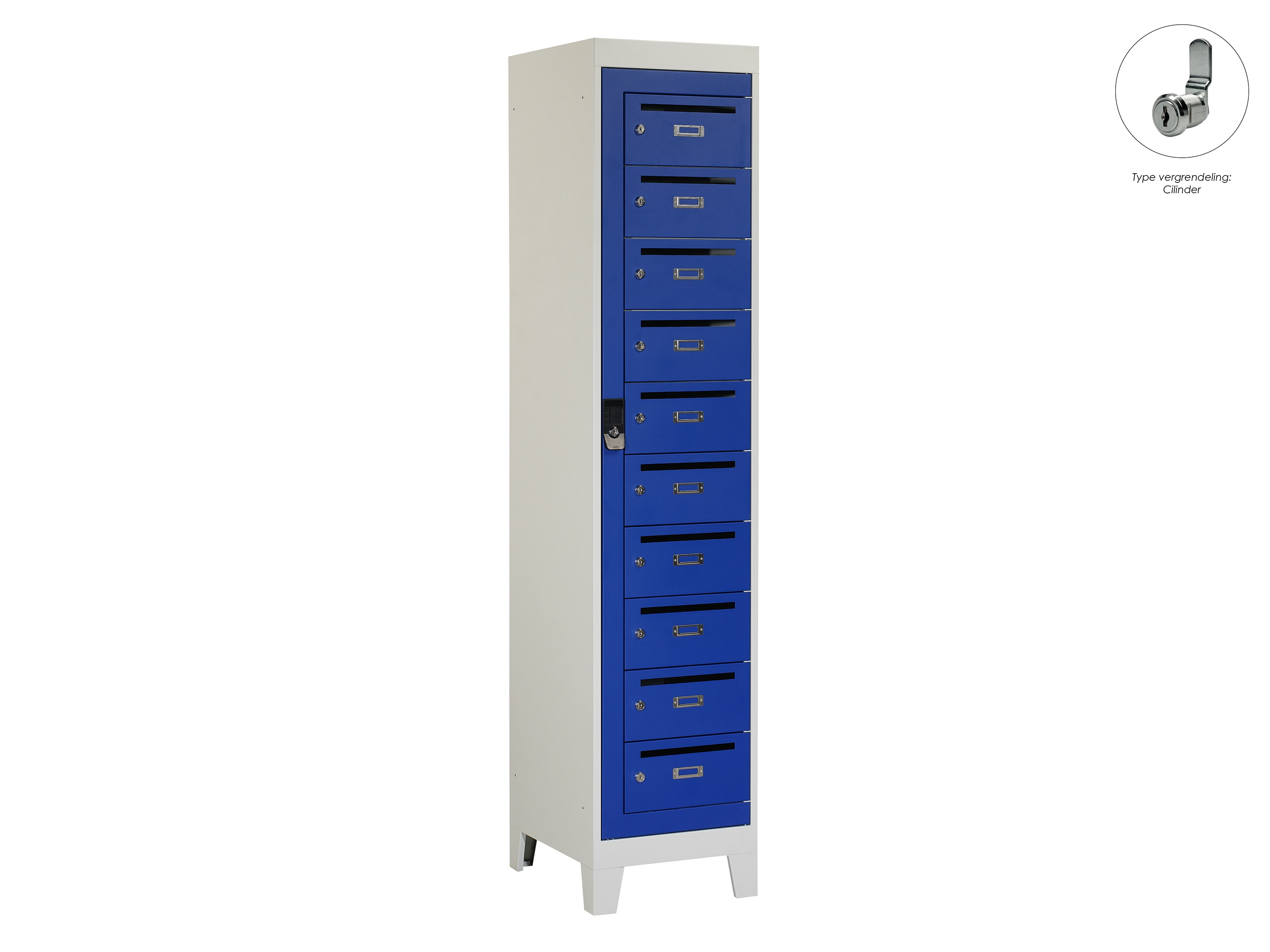 Postvakkenkast - 10 deurs, voet, 190x40x50cm, grijs/blauw, cilinder