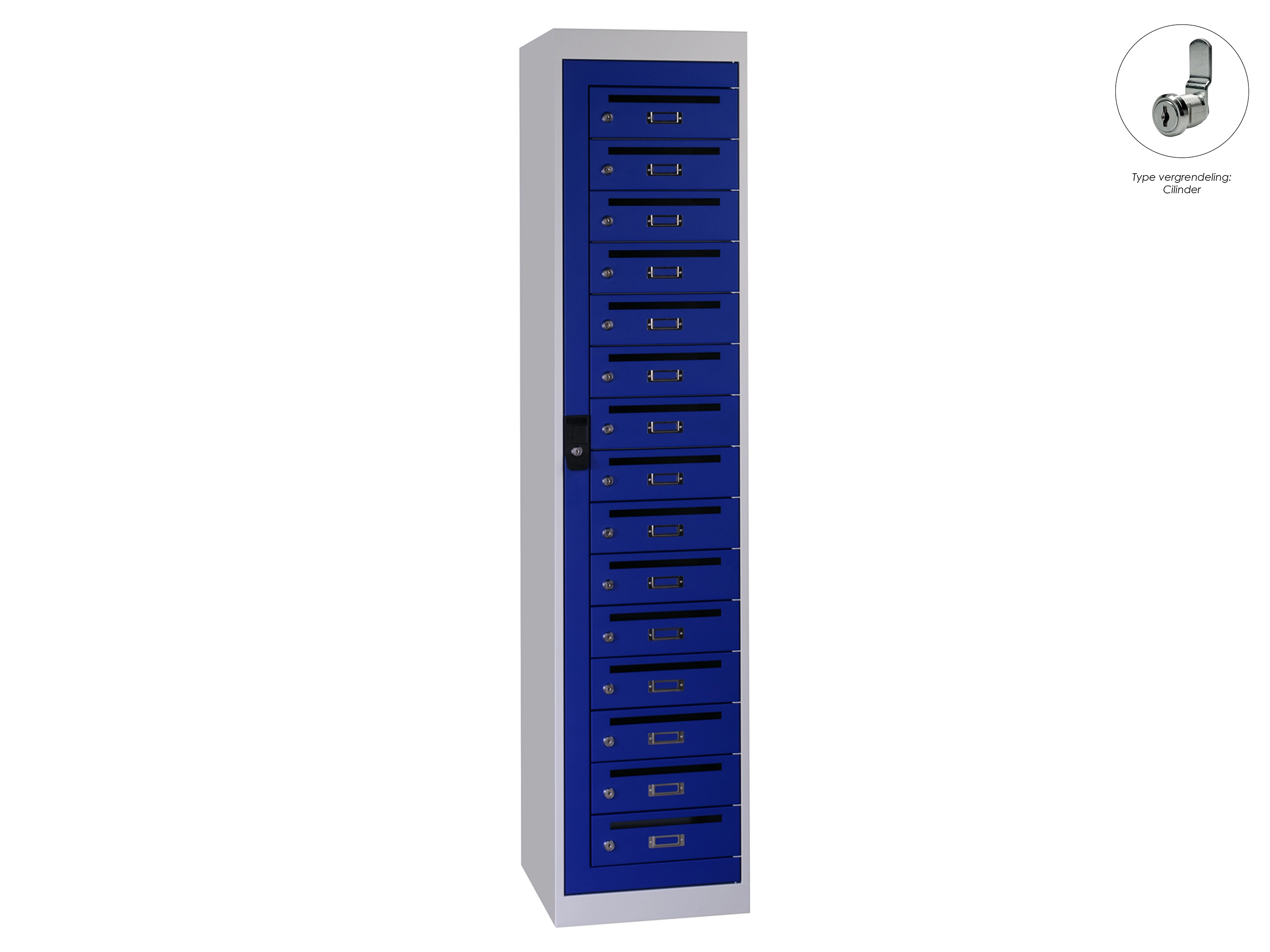 Postvakkenkast - 15 deurs, 180x40x50cm, grijs/blauw, cilinder