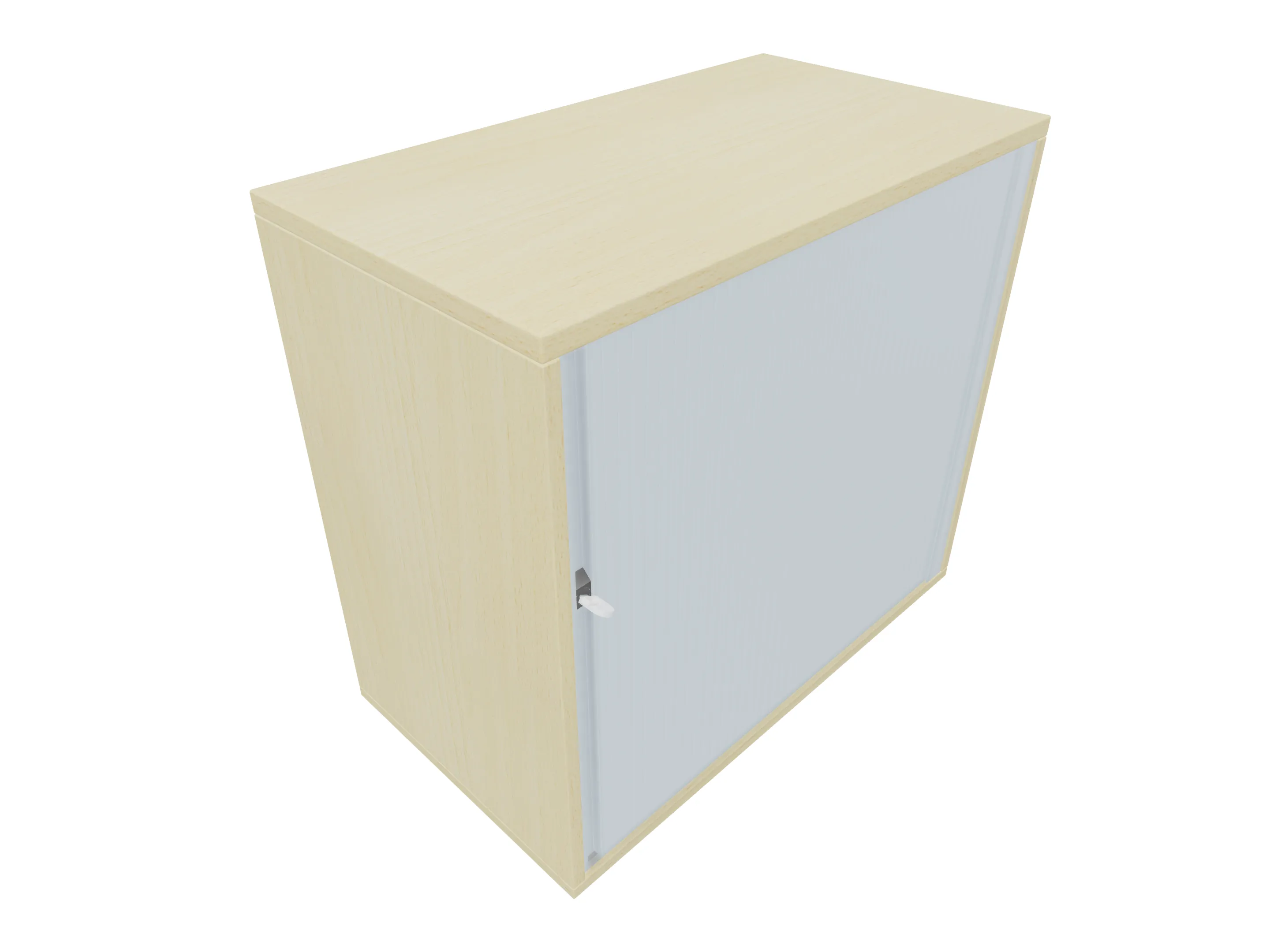 Aanzetkast met roldeur met greeplijst (rechtssluitend) zonder middenwand en metalen sokkel. Afmeting: 800 x 720 x 441mm (BxHxD)