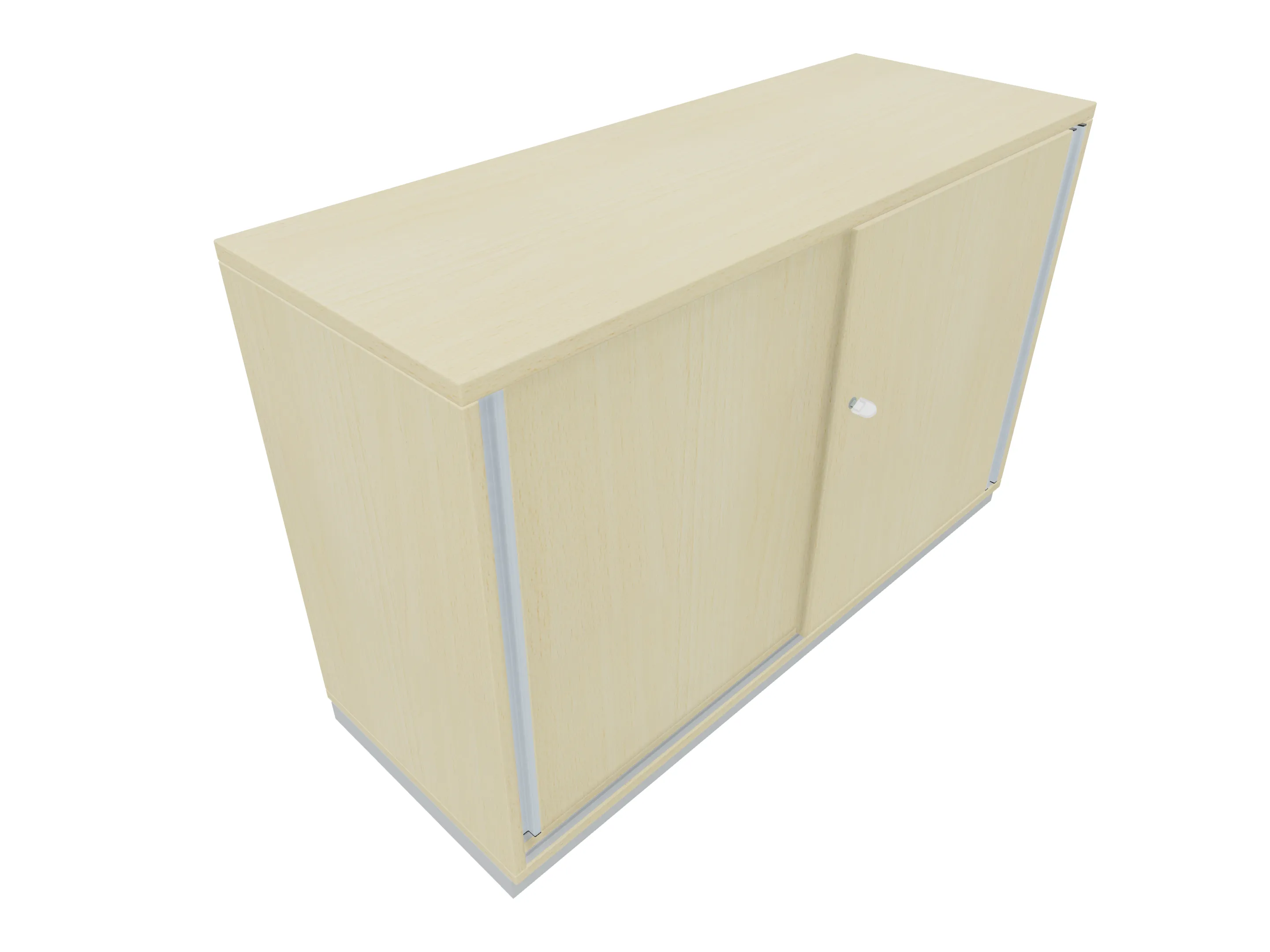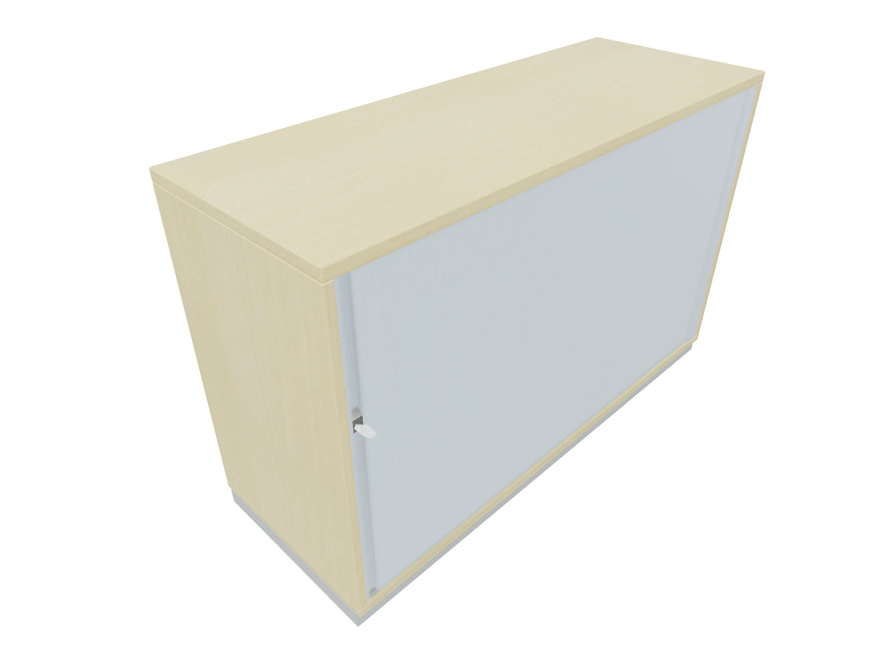 Aanzetkast met roldeur met greeplijst (rechtssluitend) zonder middenwand en metalen sokkel. Afmeting: 1200 x 720 x 441mm (BxHxD)