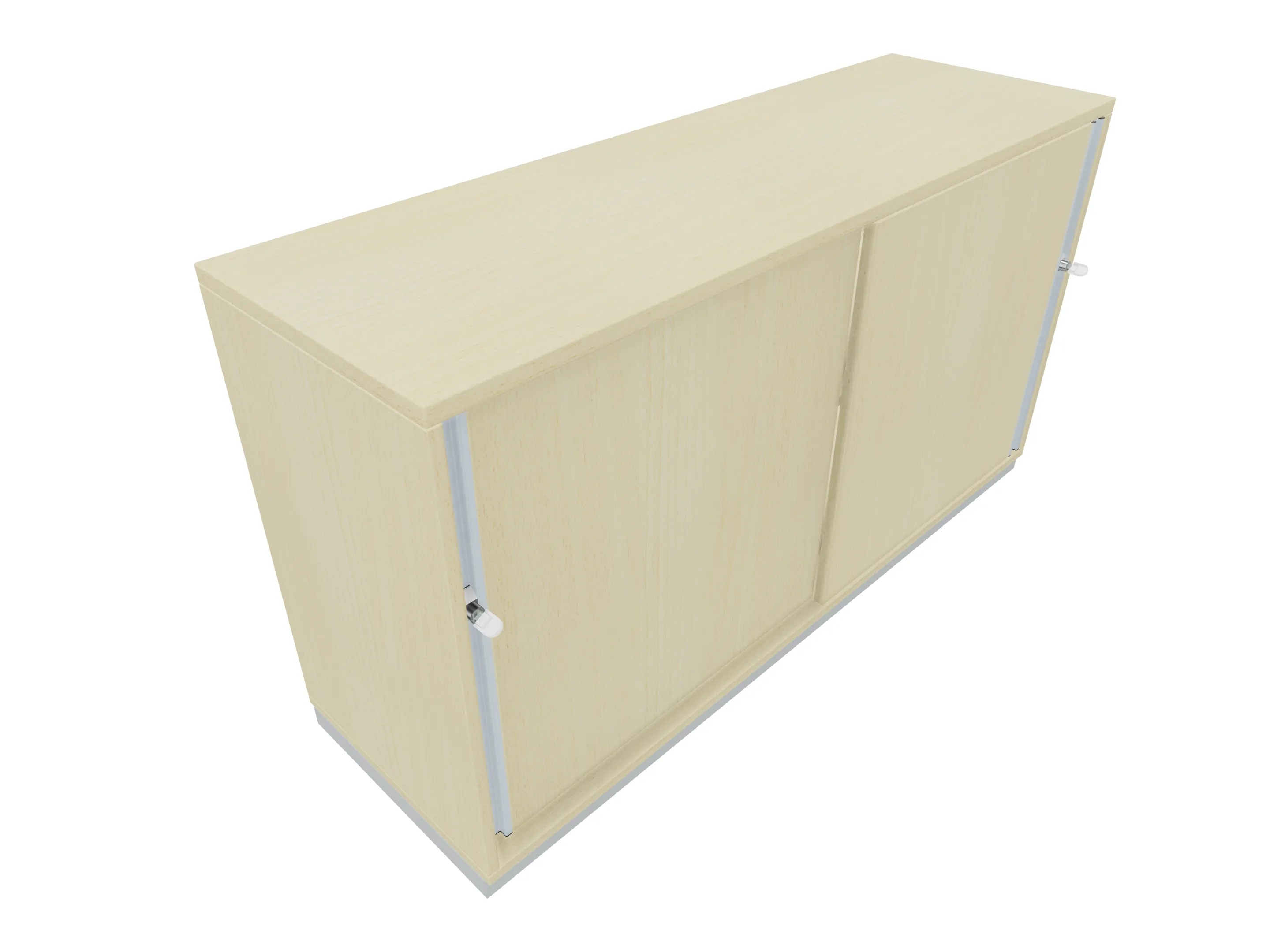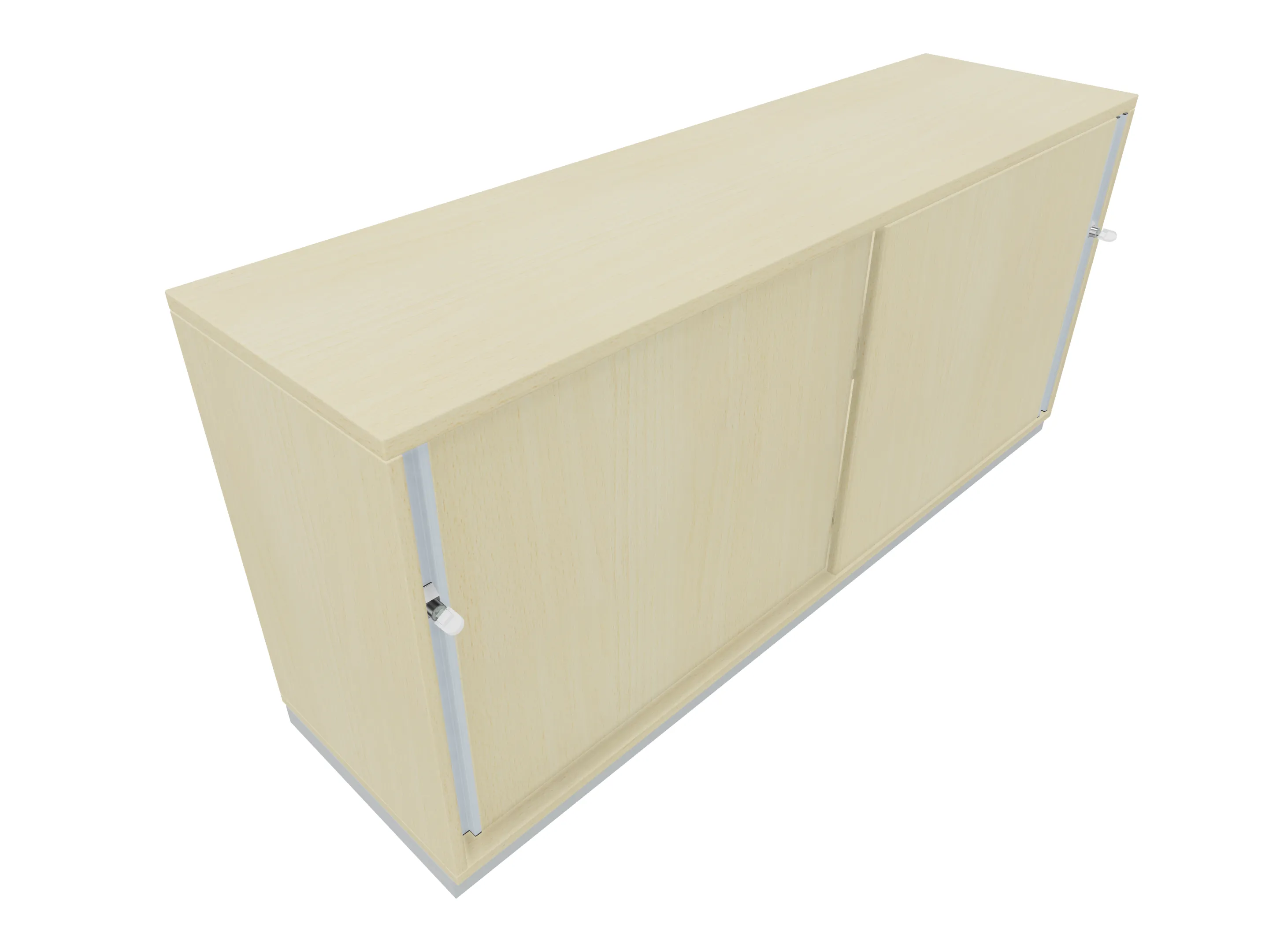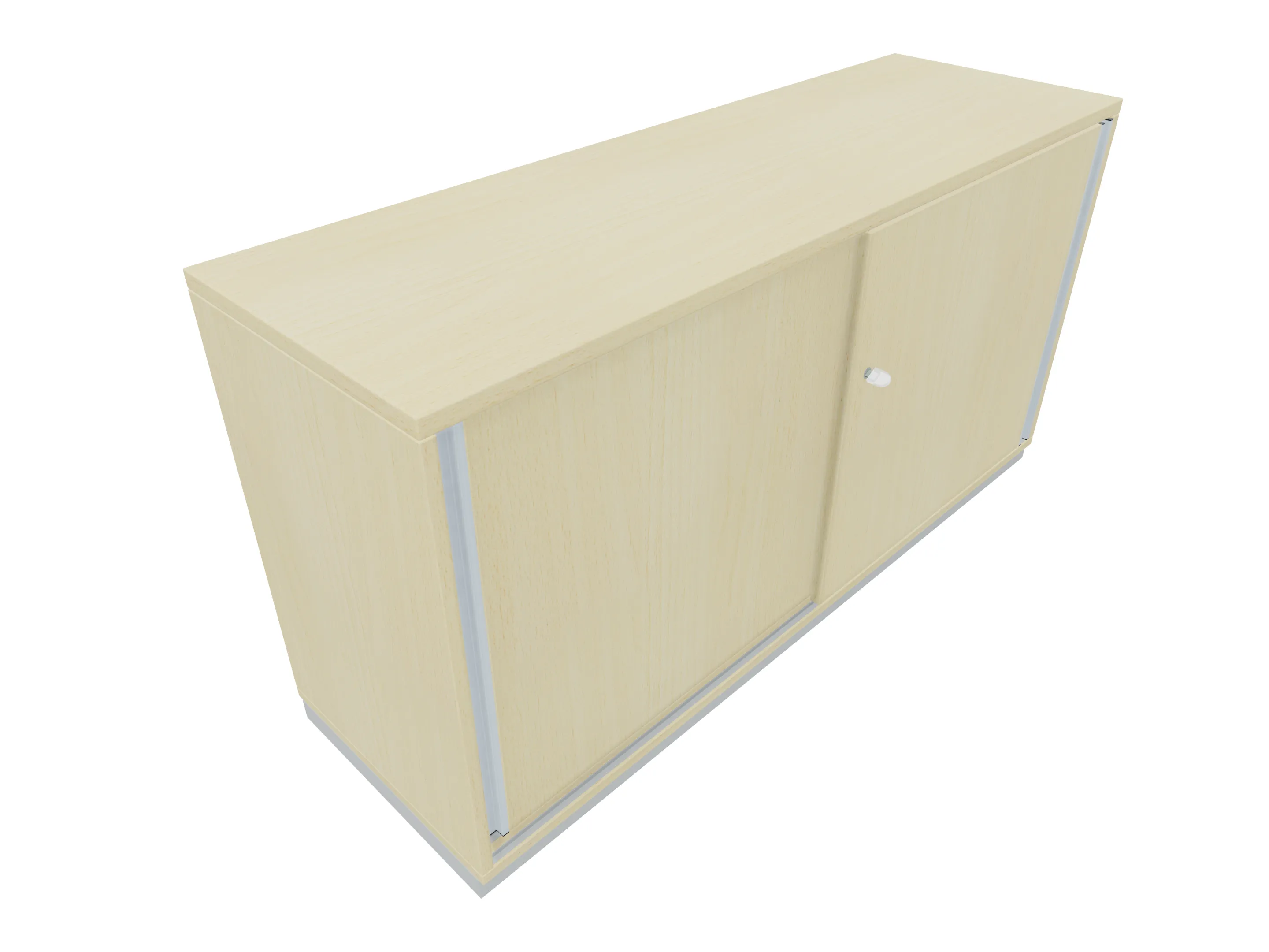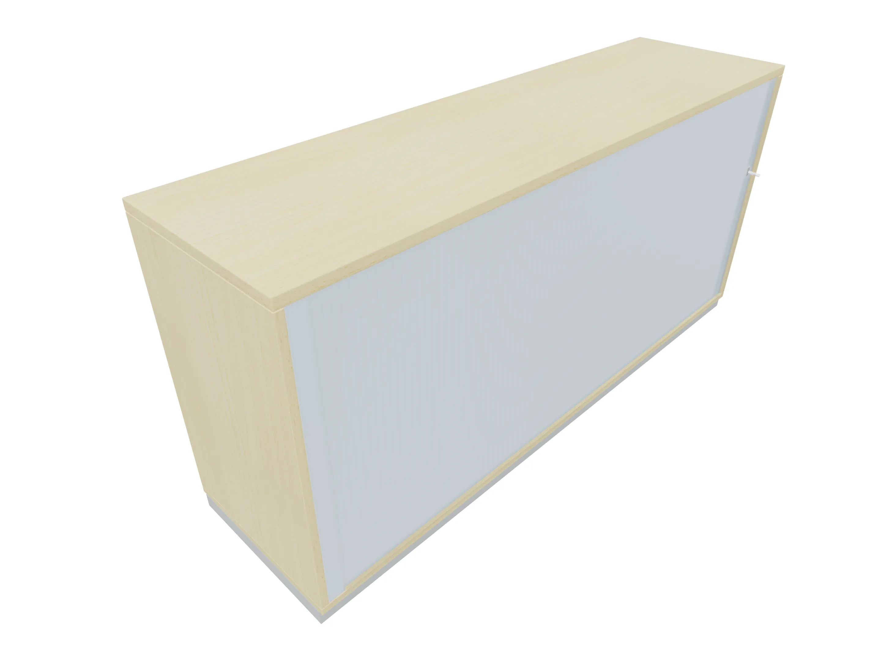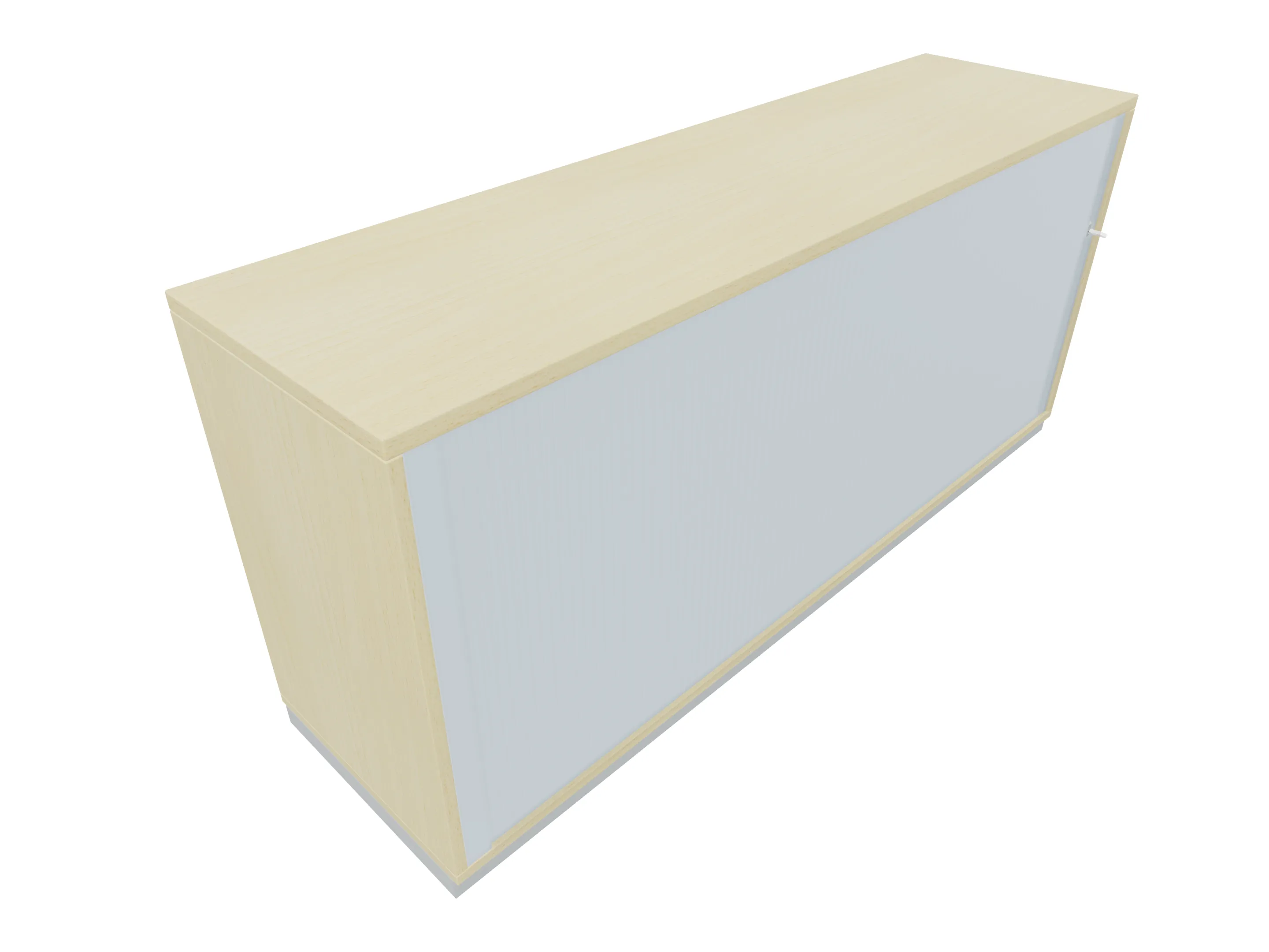 Aanzetkast met roldeur met greeplijst (rechtssluitend) zonder middenwand en metalen sokkel. Afmeting: 1600 x 720 x 441mm (BxHxD)