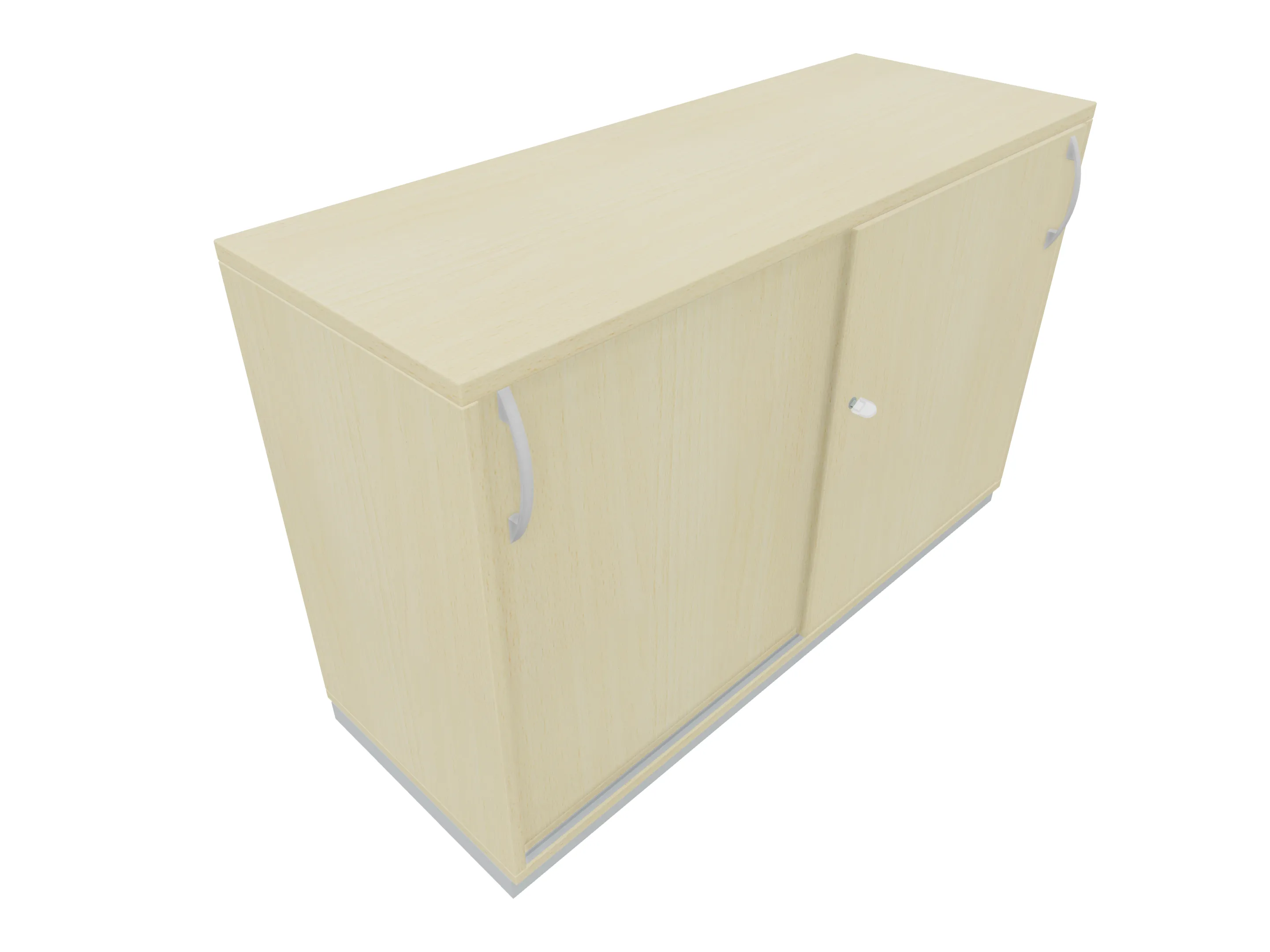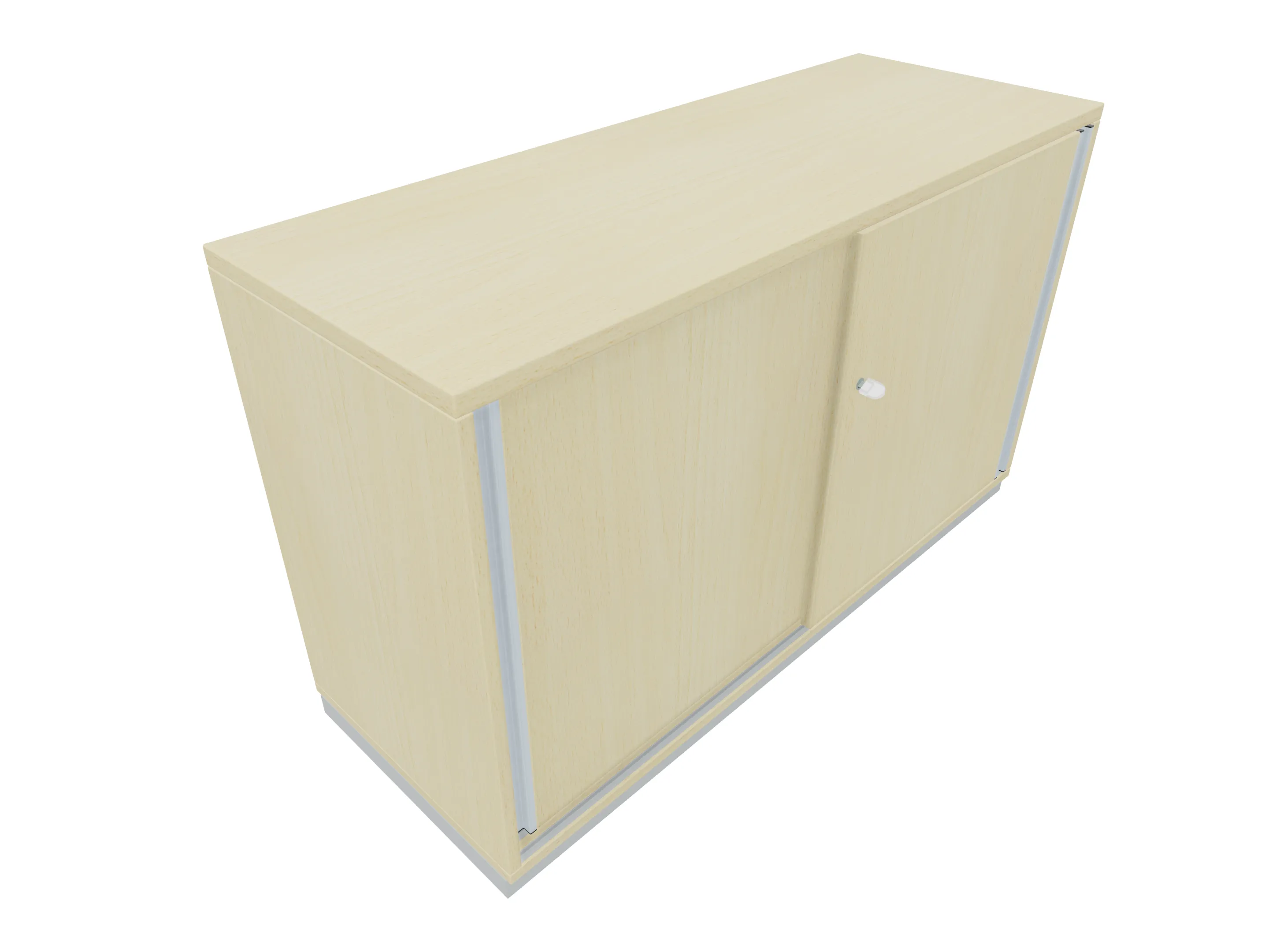 Aanzetkast met zweefschuifdeuren (met greeplijst), inclusief sluiting en metalen sokkel. Afmeting: 1200 x 720 x 441mm (BxHxD)