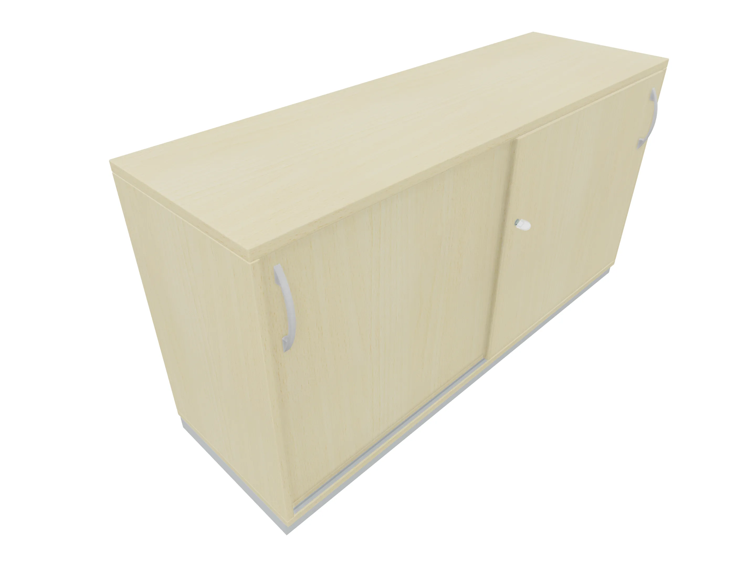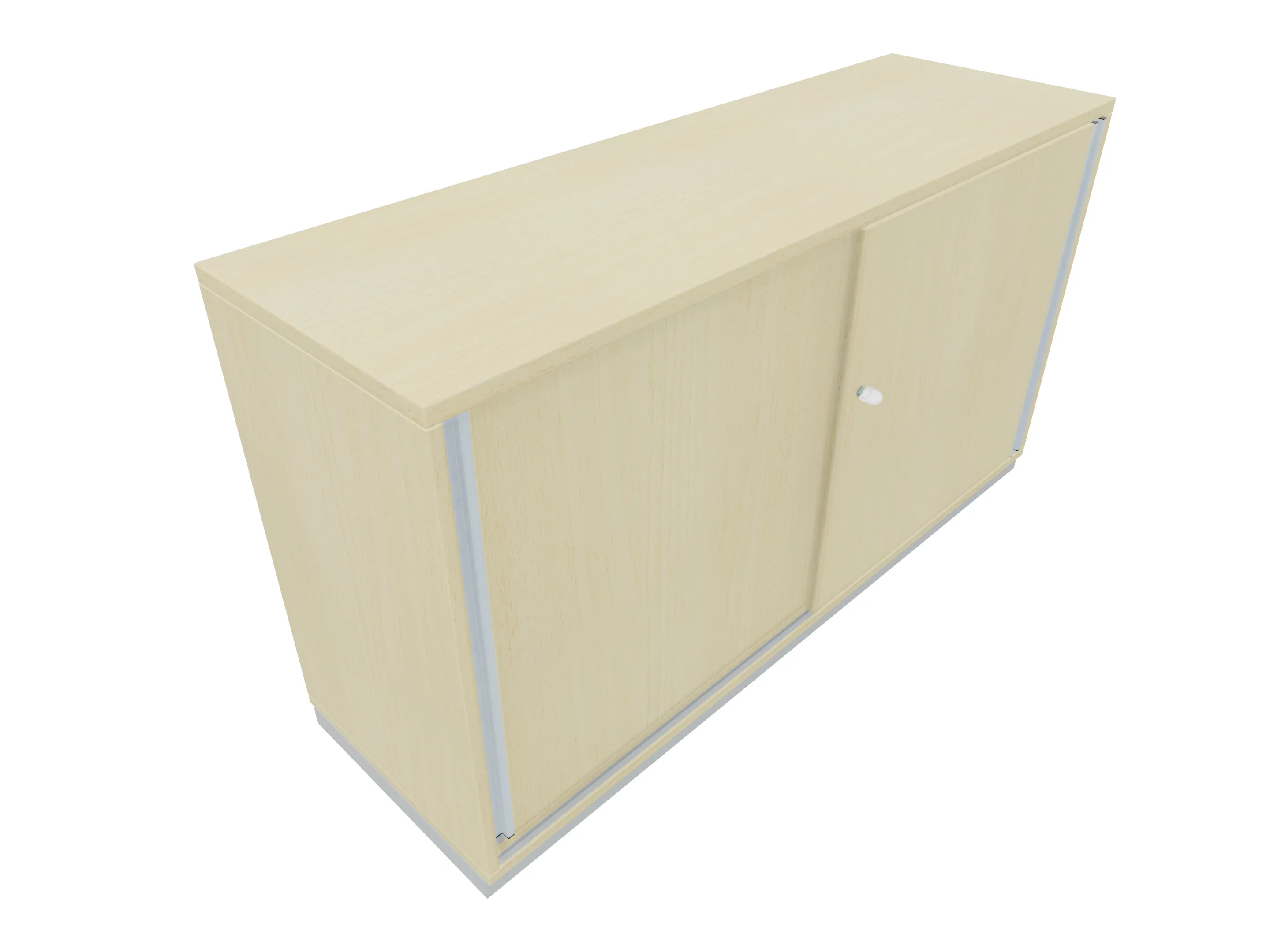 Aanzetkast met schuifdeuren (met greeplijst), inclusief sluiting en metalen sokkel. Afmeting: 1600 x 720 x 441mm (BxHxD)