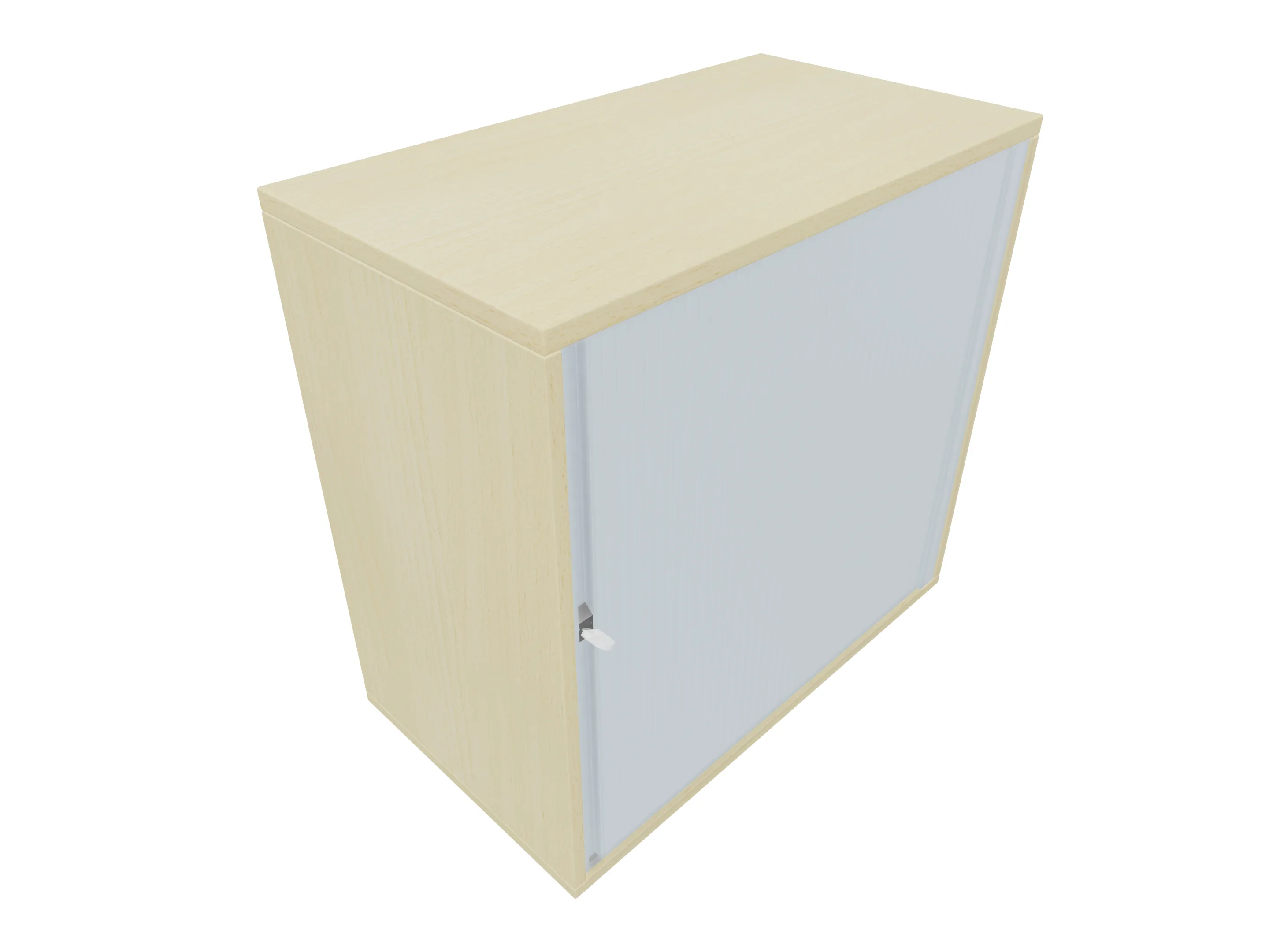 Hangkast met roldeuren (met greeplijst), rechtssluitend, inclusief sluiting en montagebeslag. Afmeting: 800 x 749 x 441mm (BxHxD)