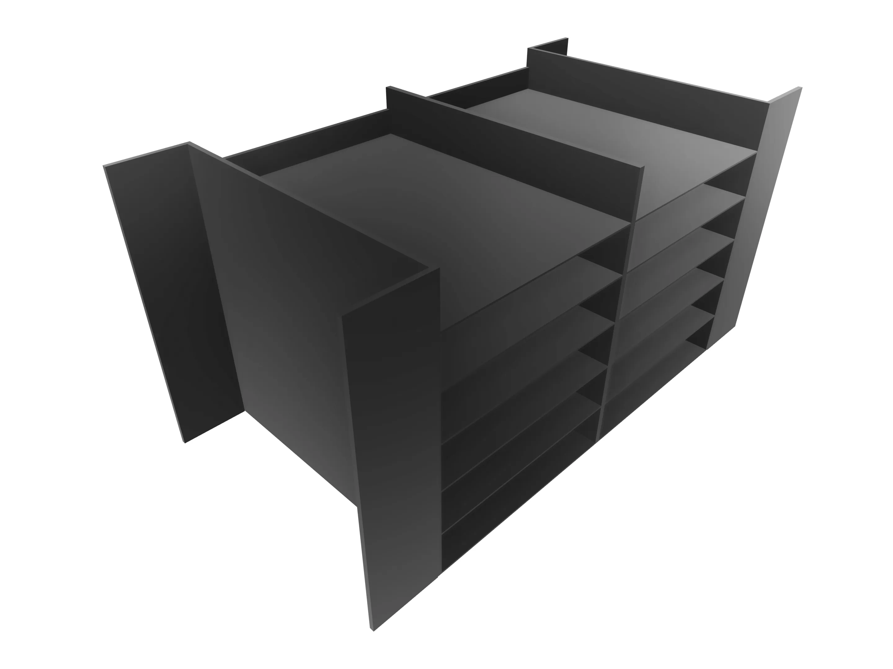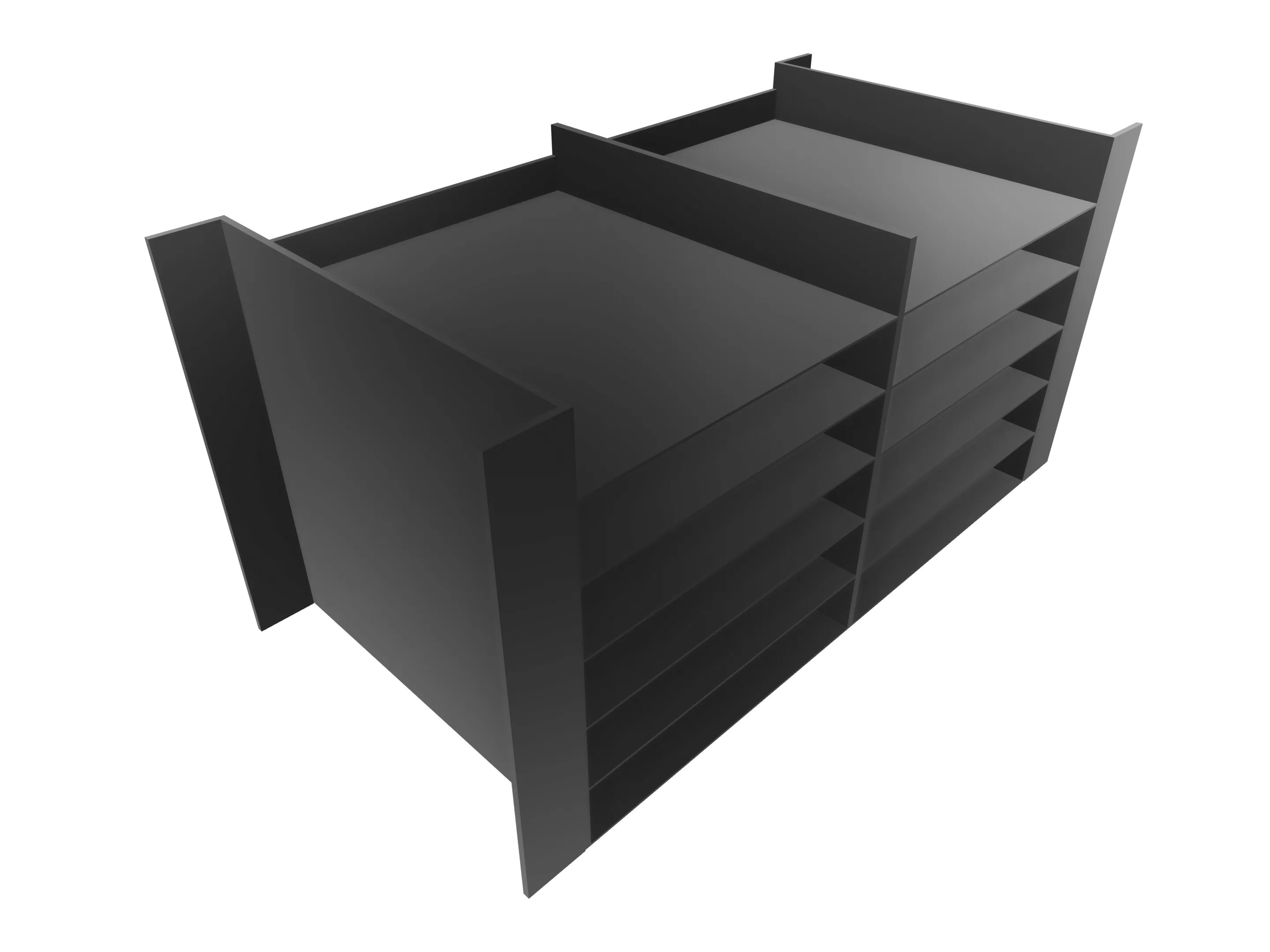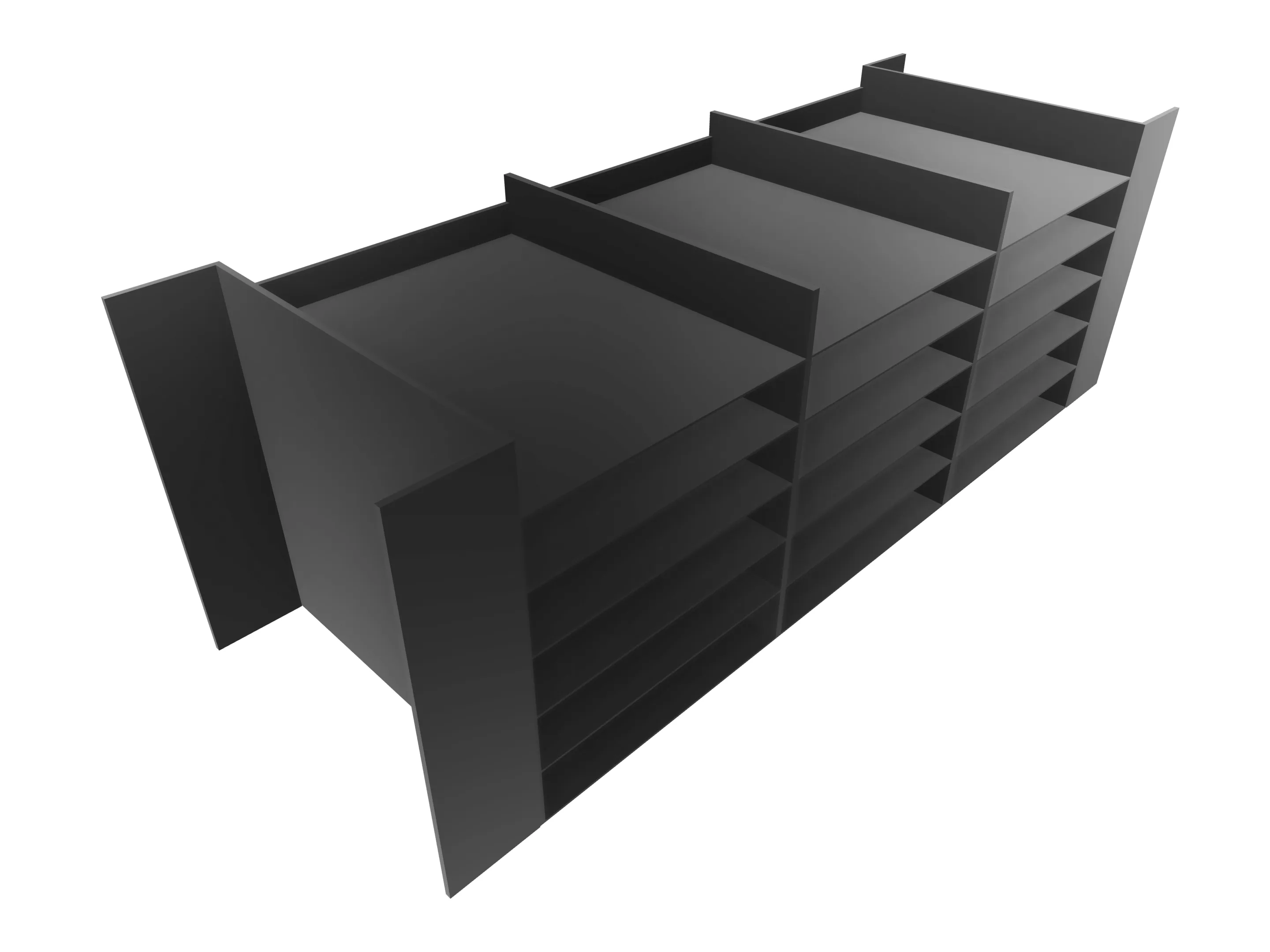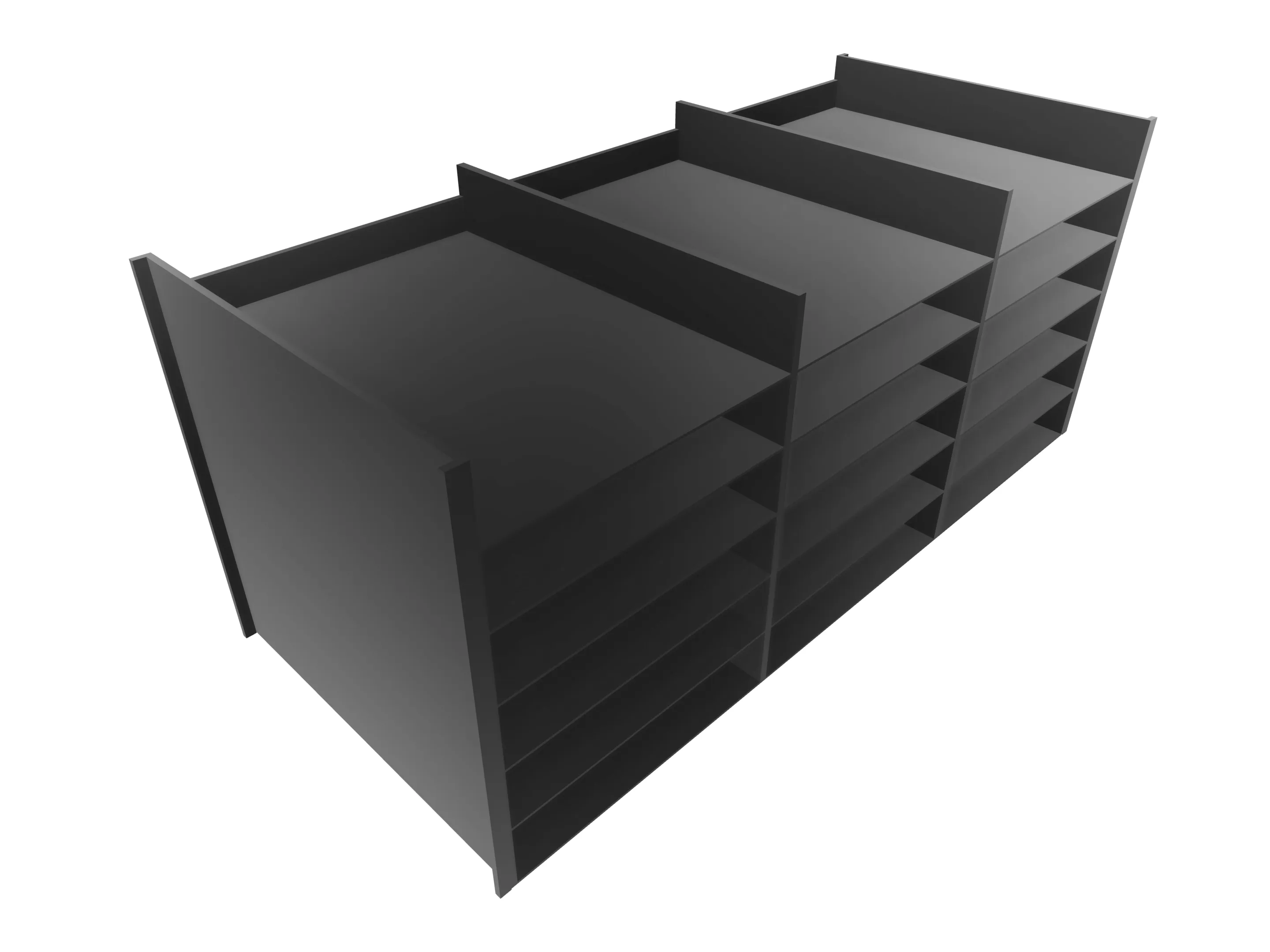24 laden à 240 mm open, incl. tekstplaatjes, 2 zijwanden, 3 tussenwanden, 4 vullijsten à 85 mm Afmeting: 1162 x 325 x 320mm (BxHxD)