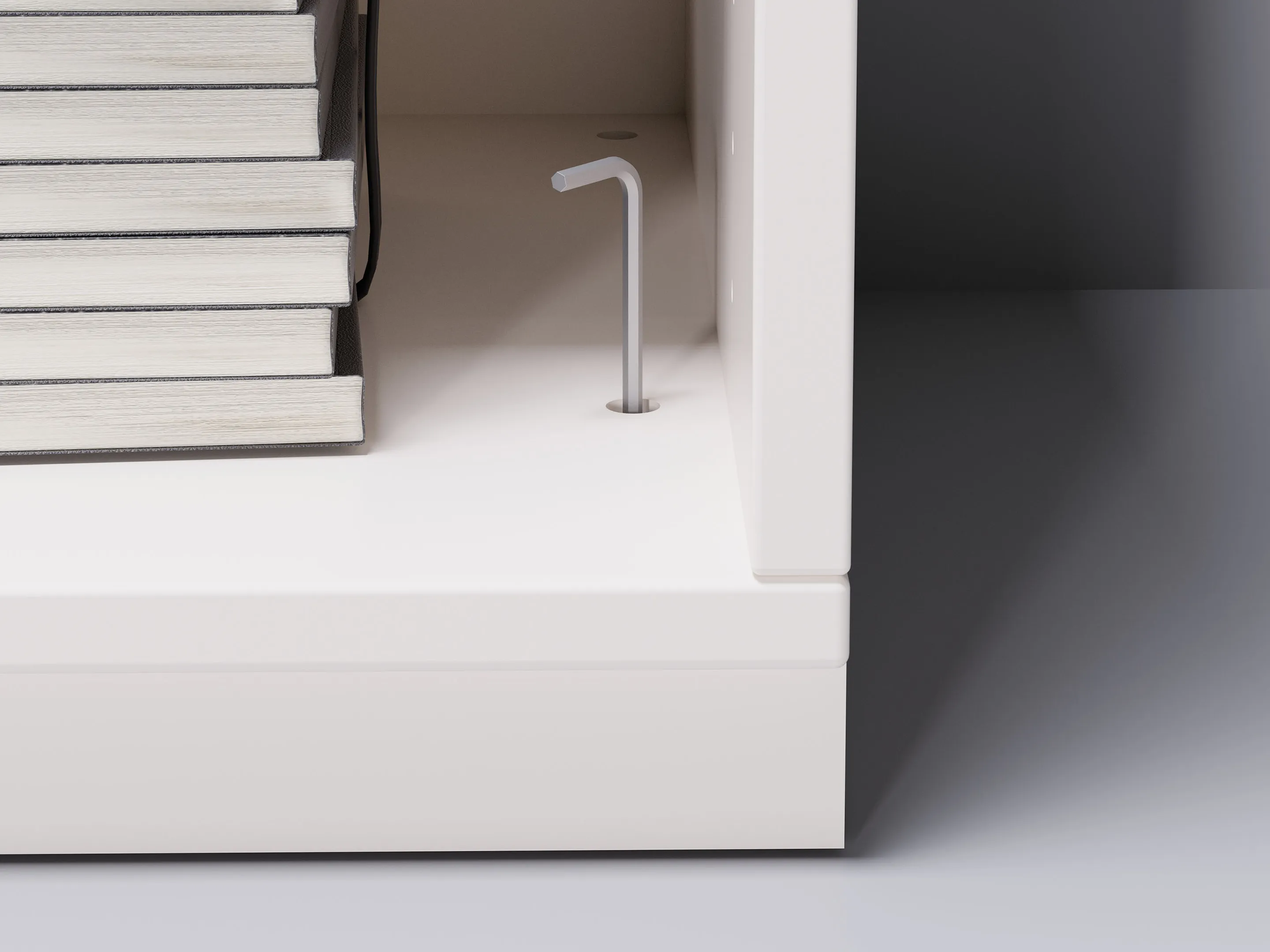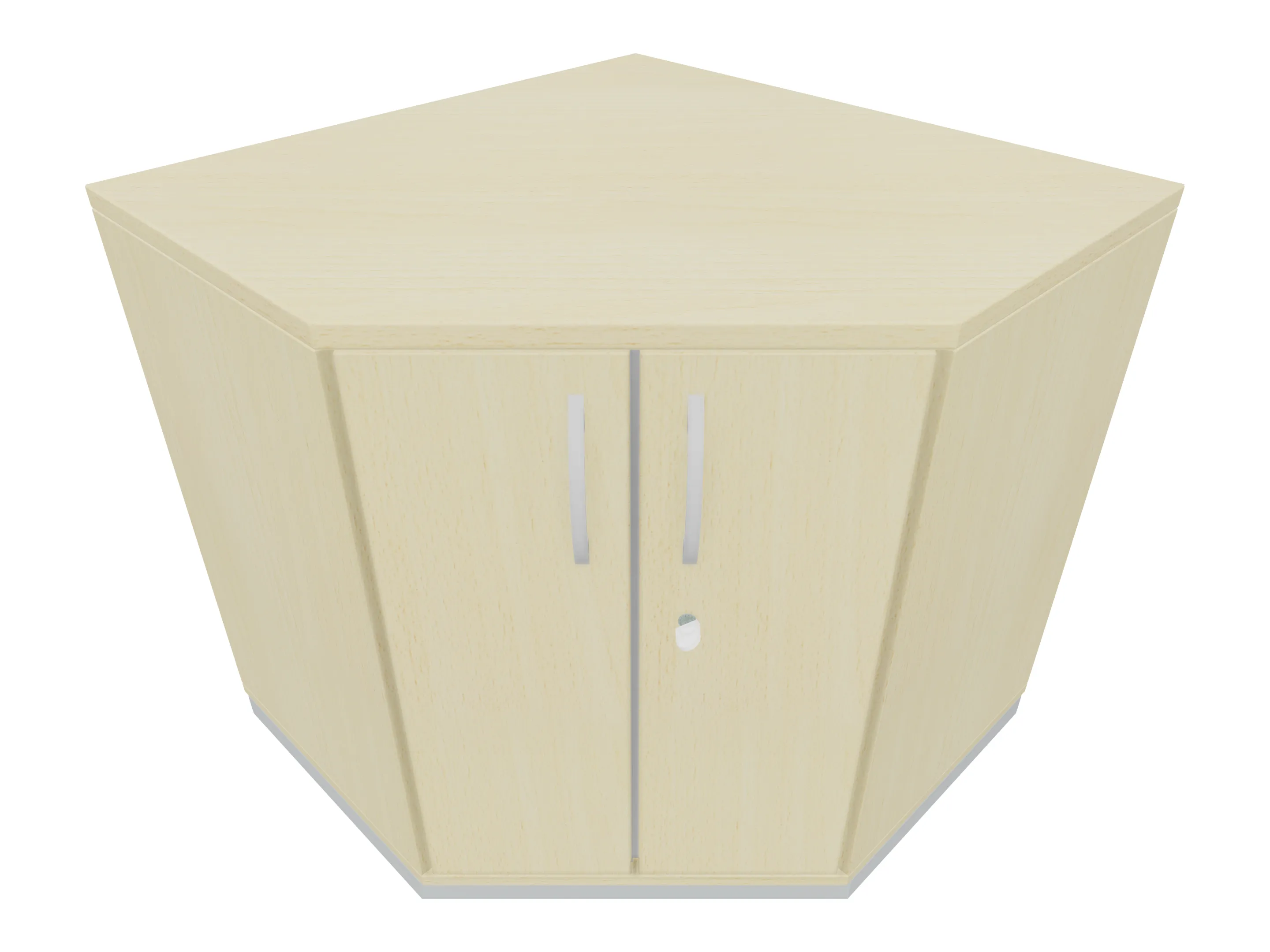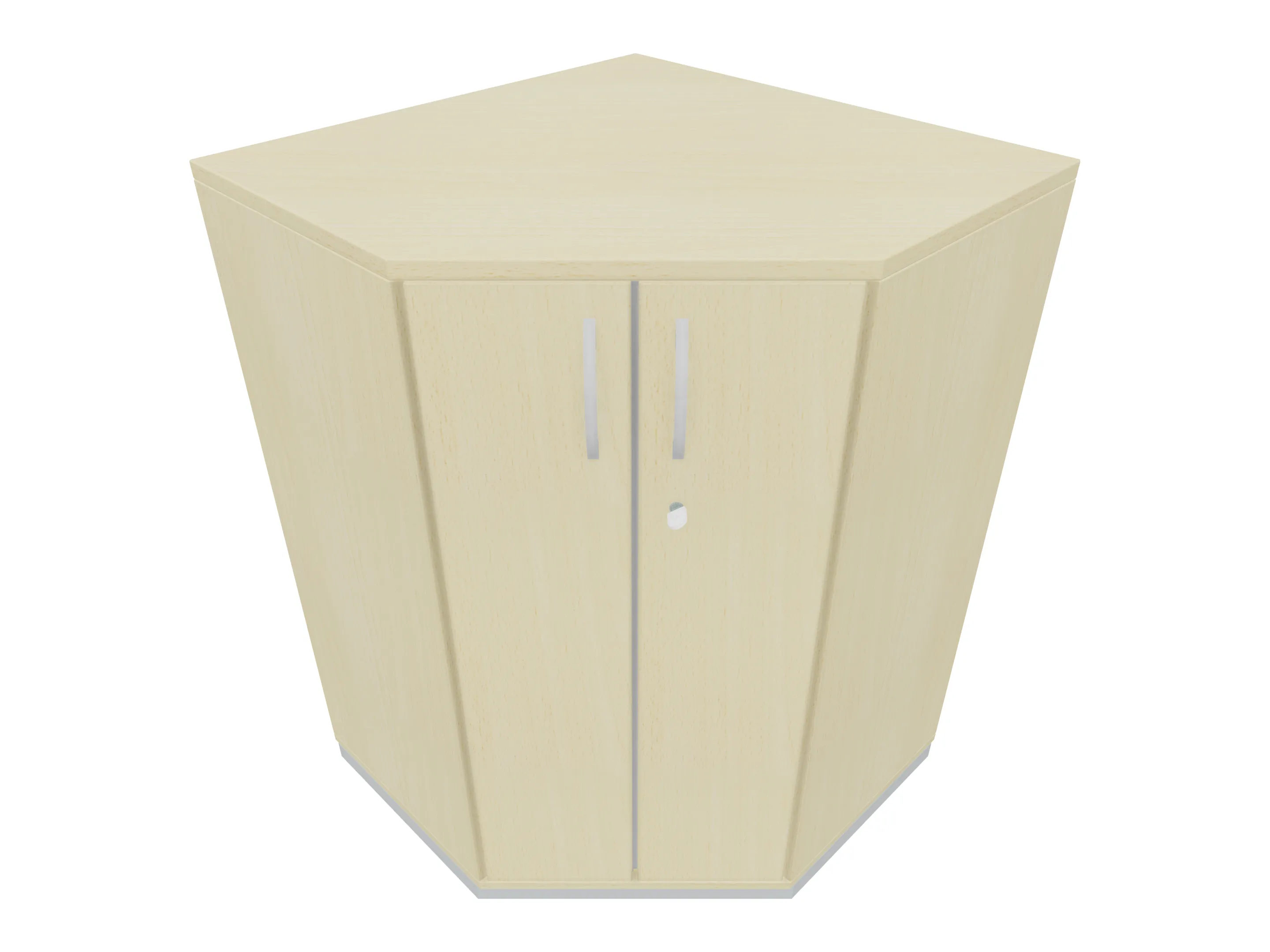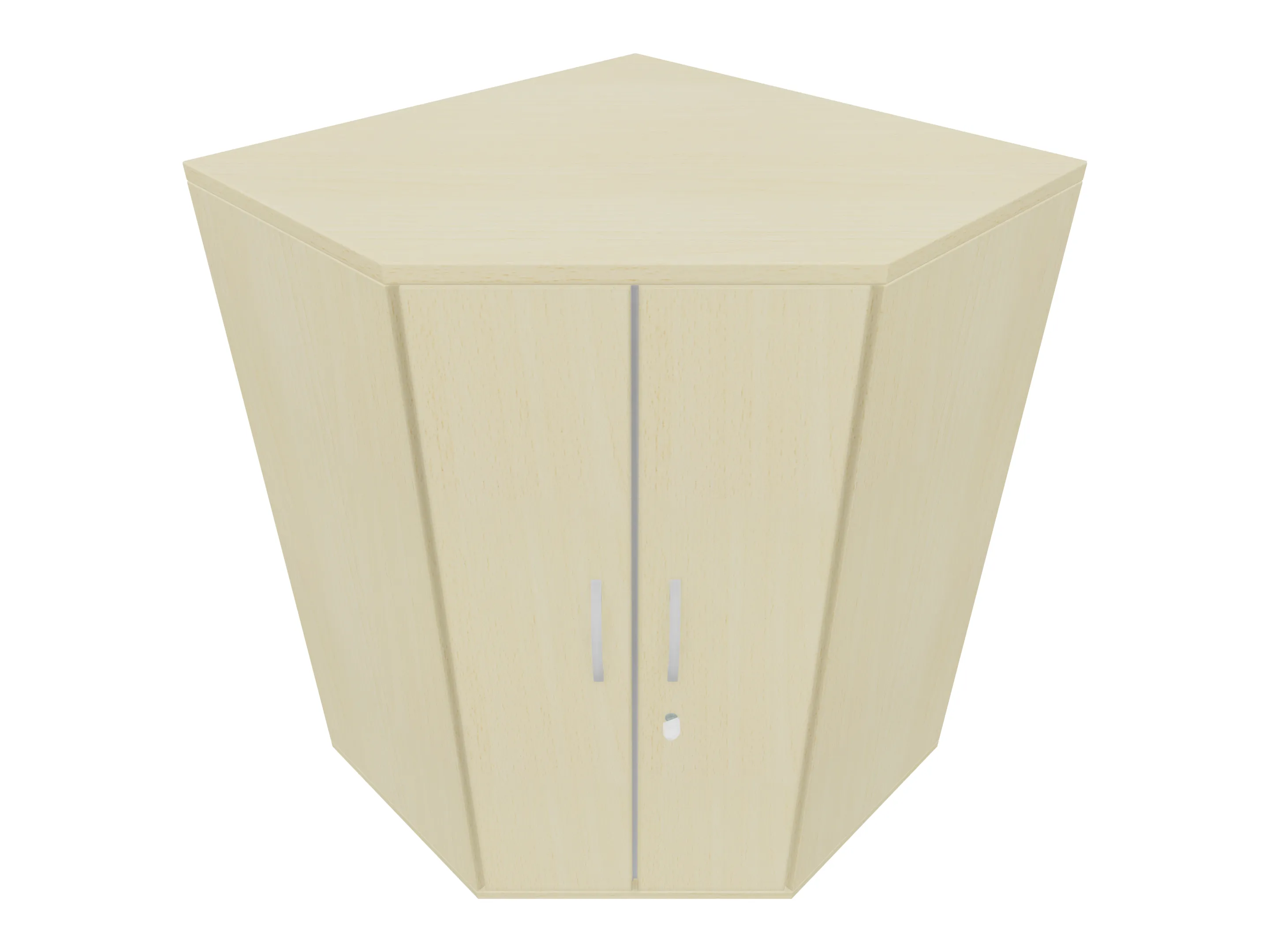 Opzetkast uitgevoerd als hoekelement met deuren, voor het plaatsen in binnenhoeken. Afmeting: 800 x 749 x 800mm (BxHxD)