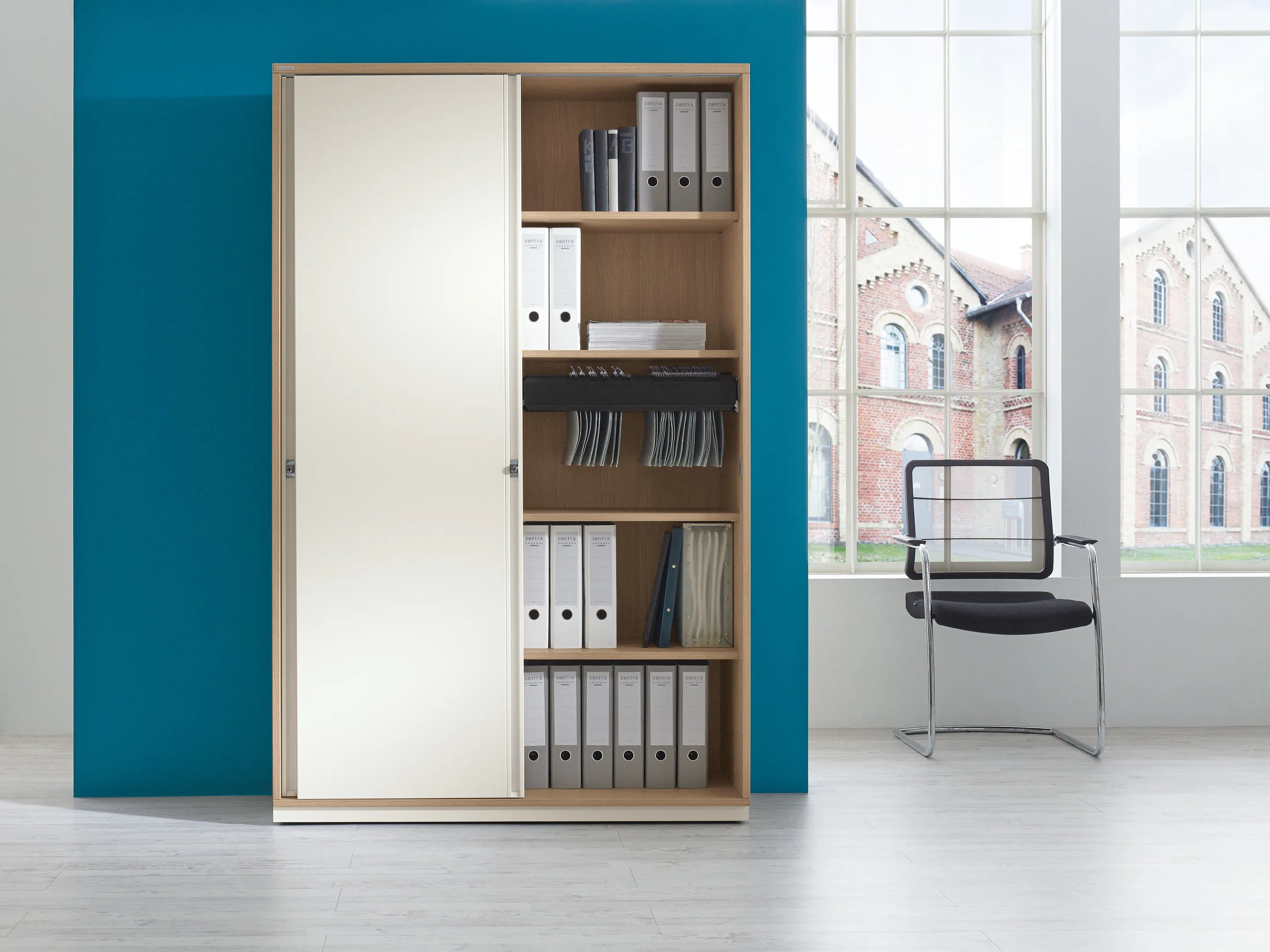 Opzetkast met schuifdeur met greeplijst zonder middenwand, voor plaatsing op kasten van het Prisma 2 programma. Afmeting: 1000 x 749 x 441mm (BxHxD)