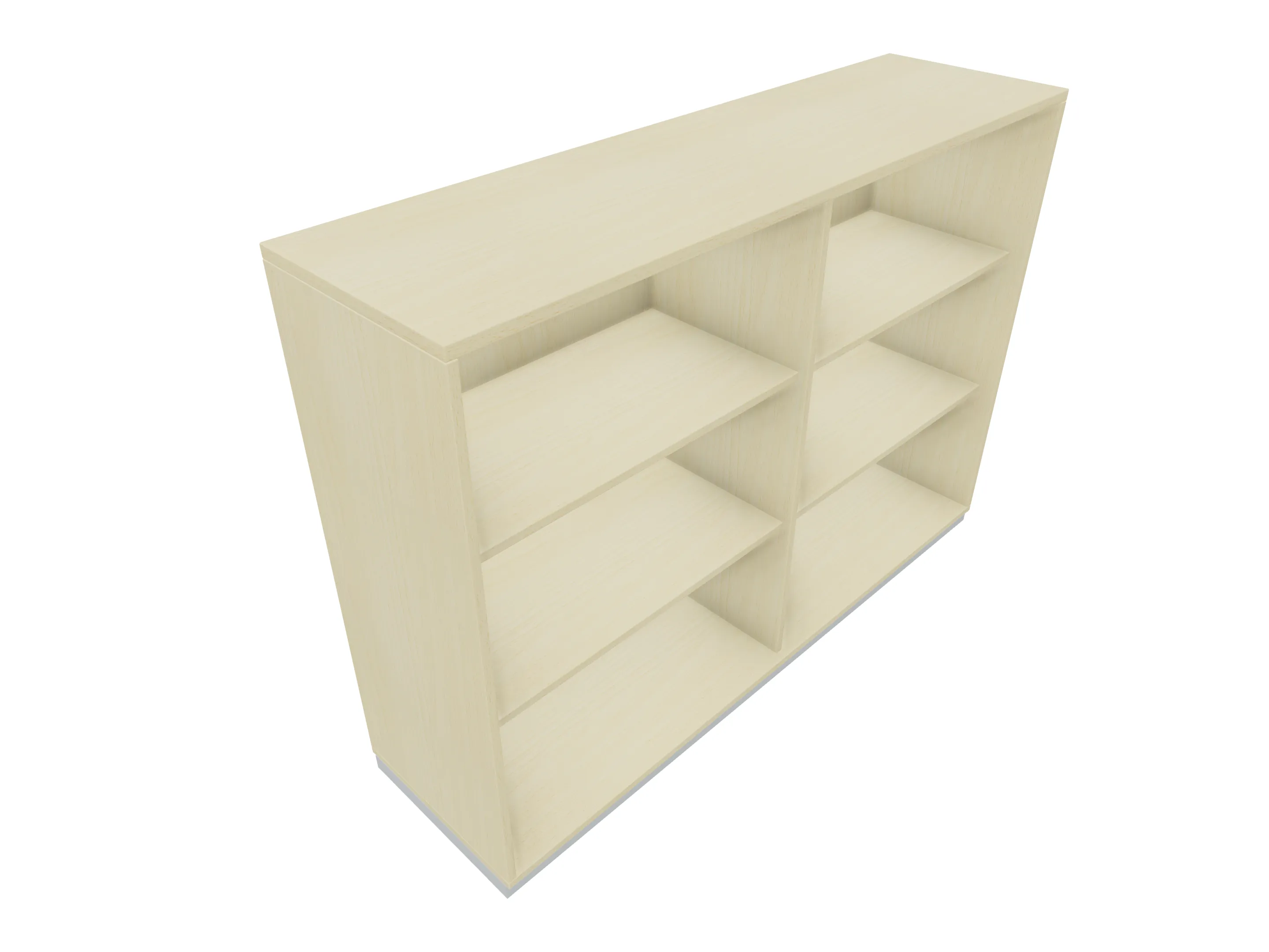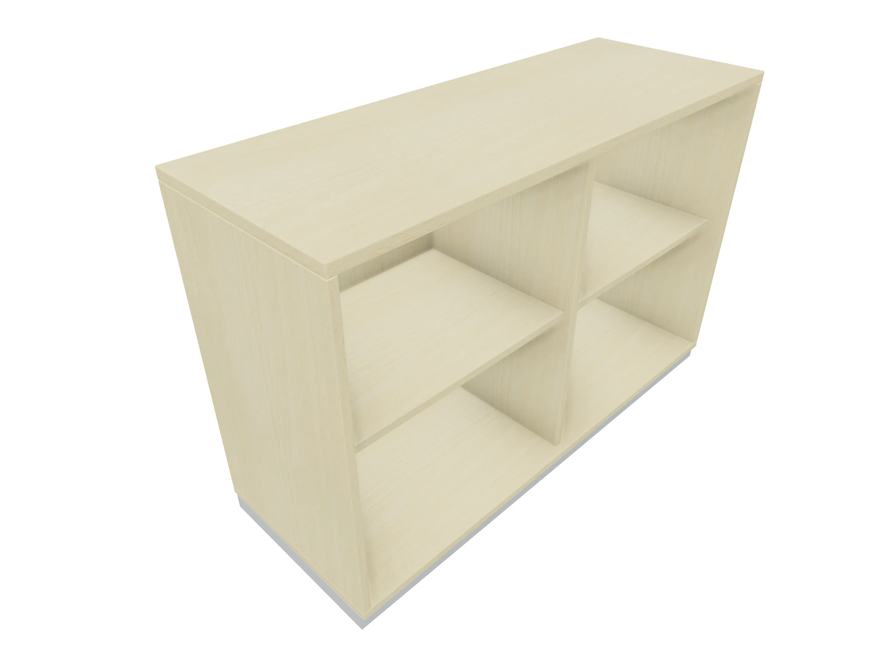 Openkast compleet met middenwand, 2 legborden en metalen sokkel. Afmeting: 1400 x 789 x 321mm (BxHxD)