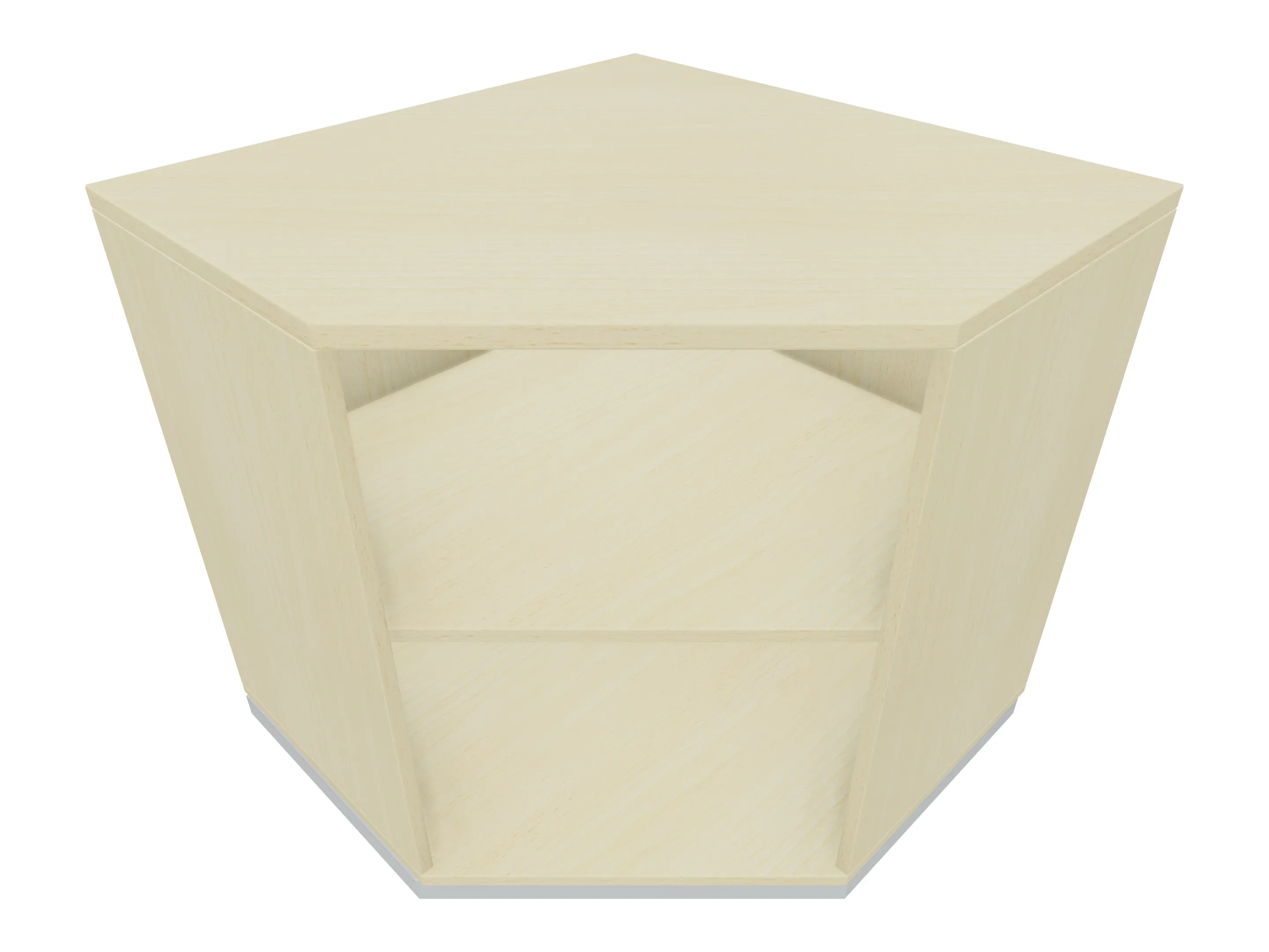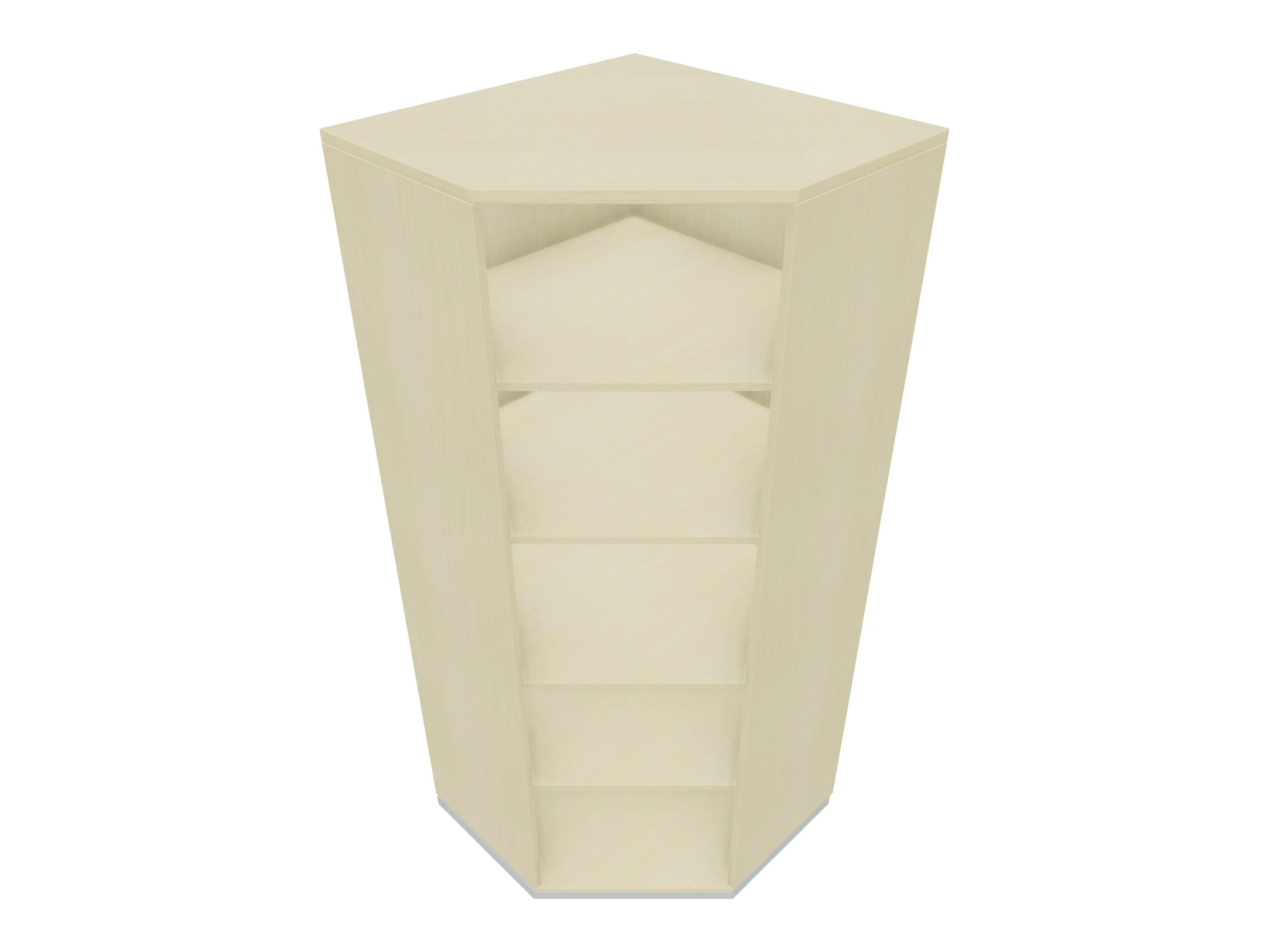 Opzetkast uitgevoerd als hoekelement zonder deuren, voor het plaatsen in binnenhoeken. Afmeting: 800 x 749 x 800mm (BxHxD)