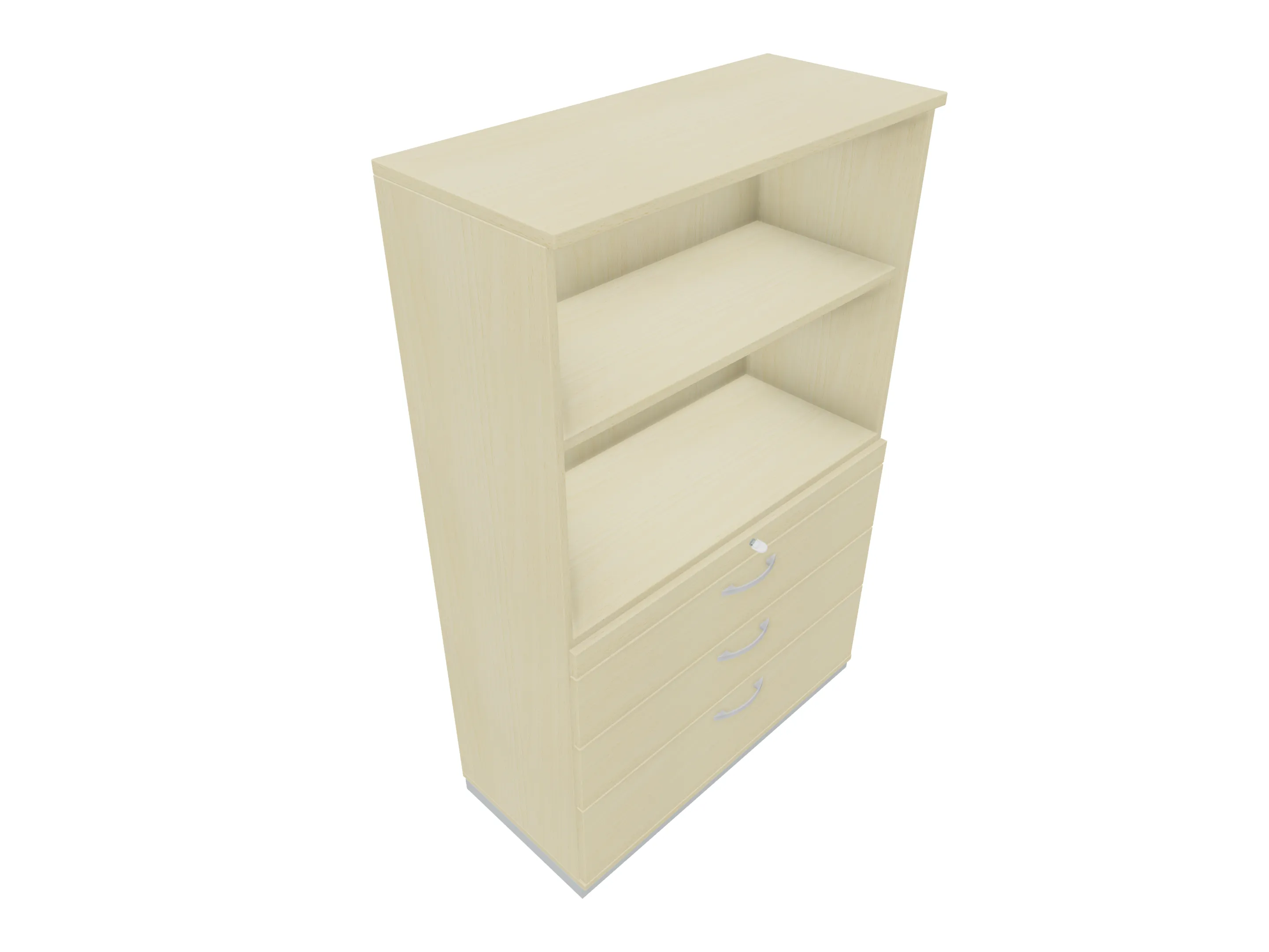 Openkast compleet met 3 legborden en metalen sokkel. Afmeting: 1000 x 1557 x 441mm (BxHxD)