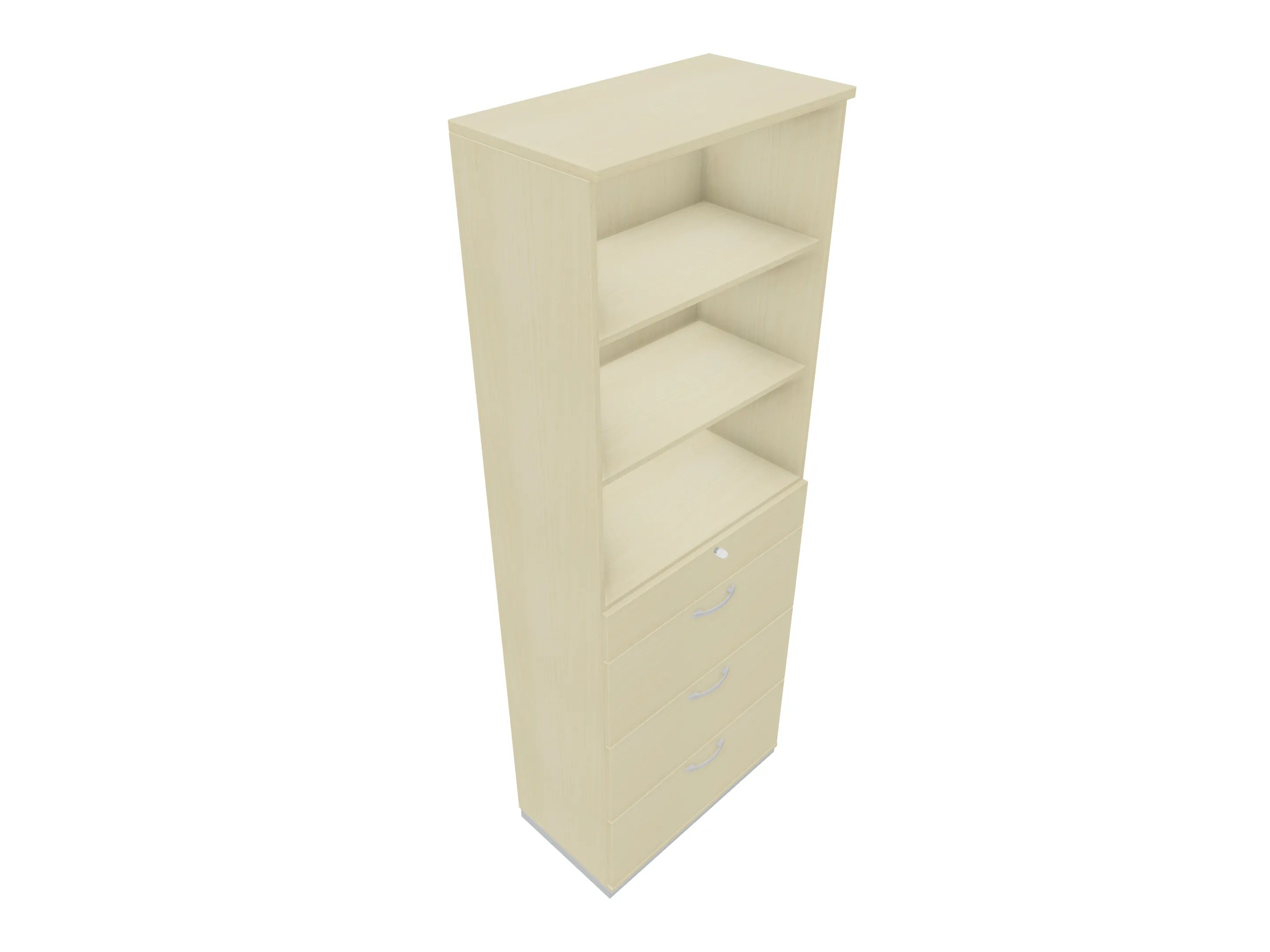 Openkast compleet met 4 legborden en metalen sokkel. Afmeting: 800 x 1909 x 441mm (BxHxD)