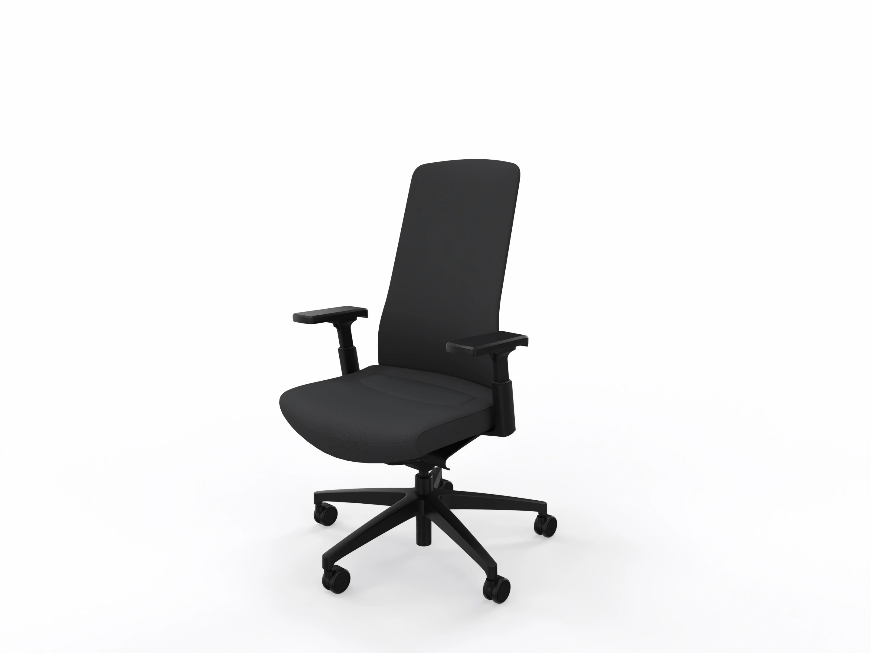 Standaard met: Smart-Spring technologie (synchroonmechaniek), 3D zitbeweging (vergrendelbaar), 3D T-armleggers (in hoogte, breedte, diepte verstelbaar), Universele wielen. Volledig zwart