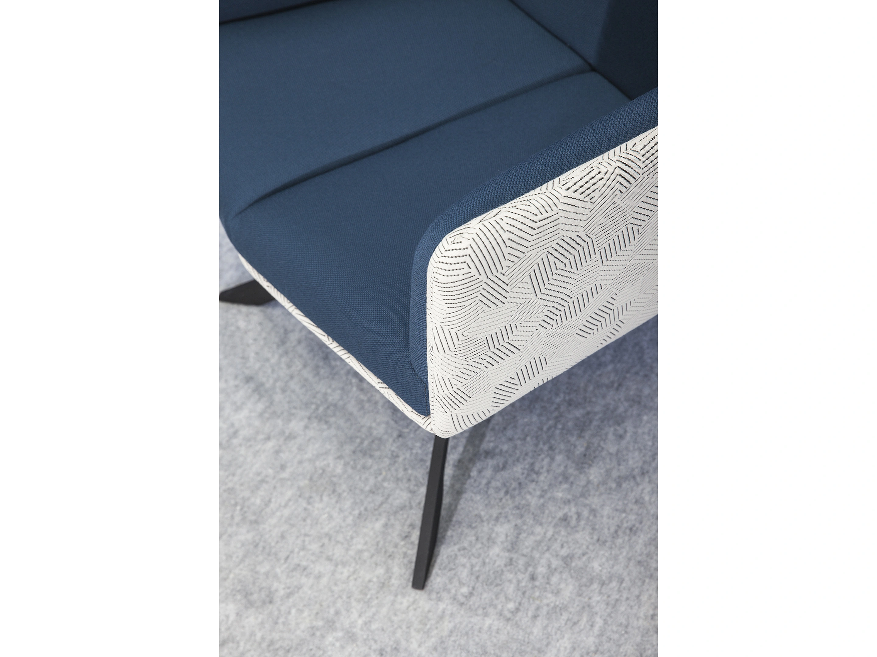 Volledig gestoffeerde kuip met een akoestische wanden aan beide kanten van het hoofdrust, op een 4-teens voetkruis voorzien van kunststof glijders.