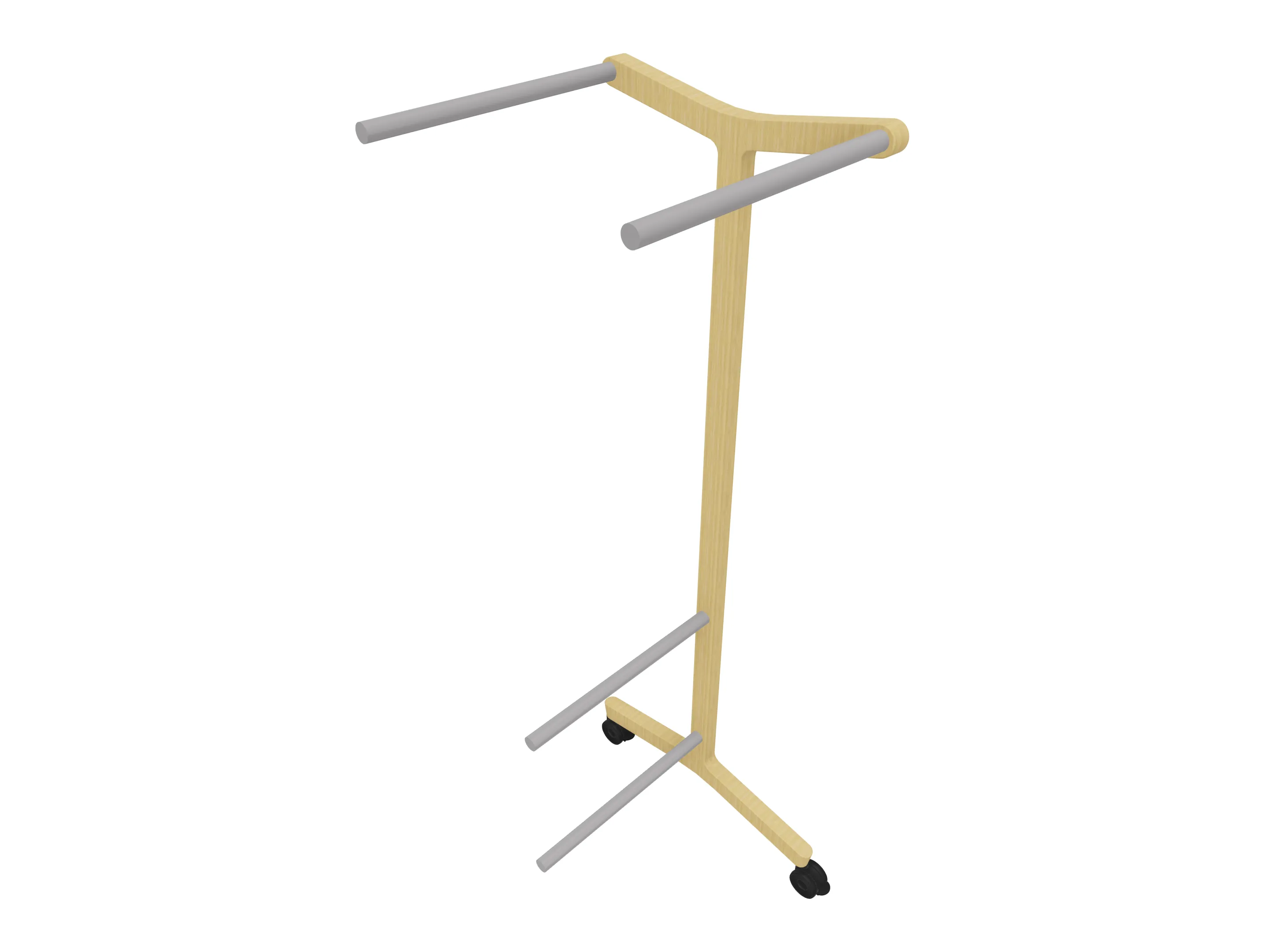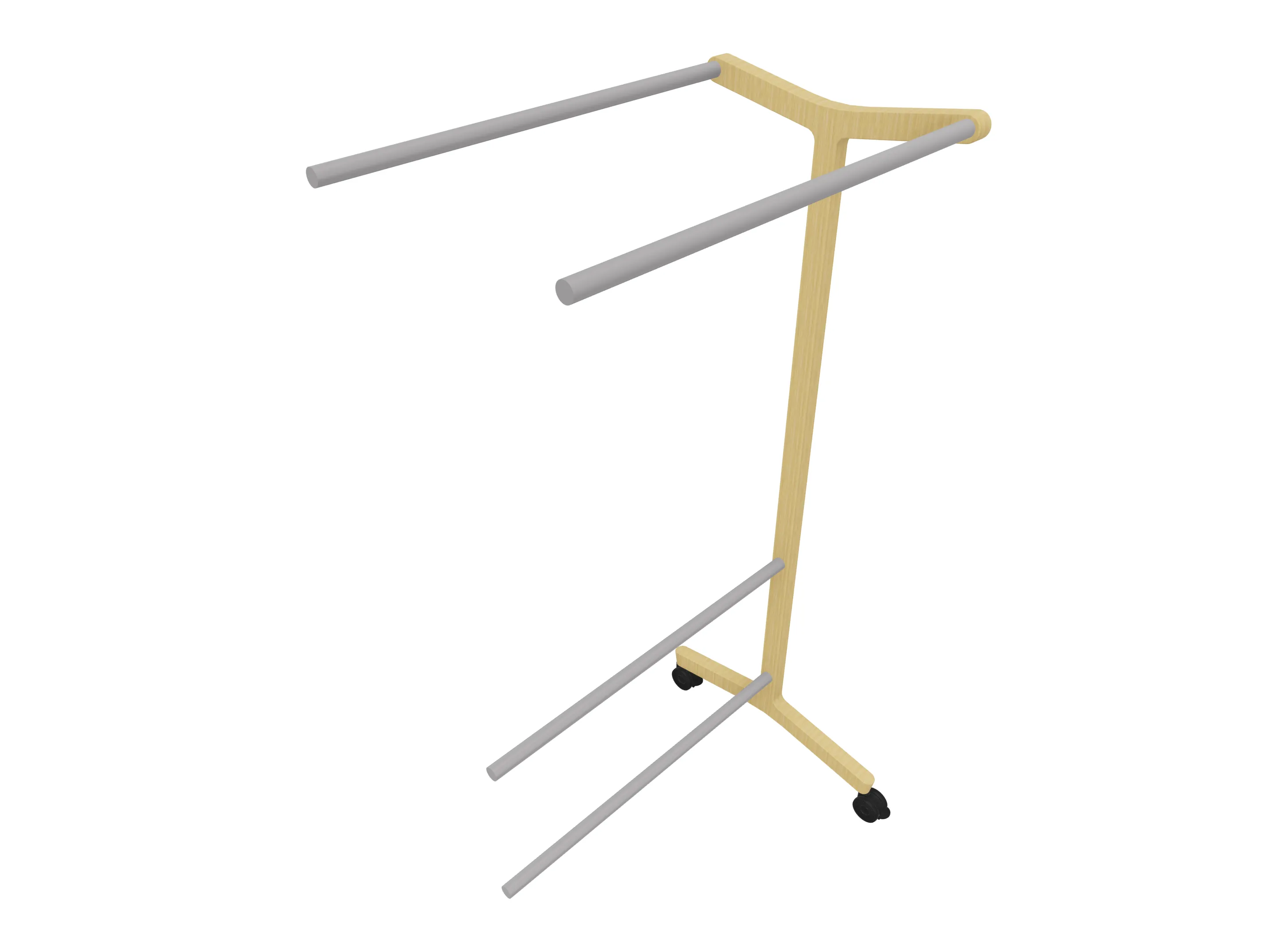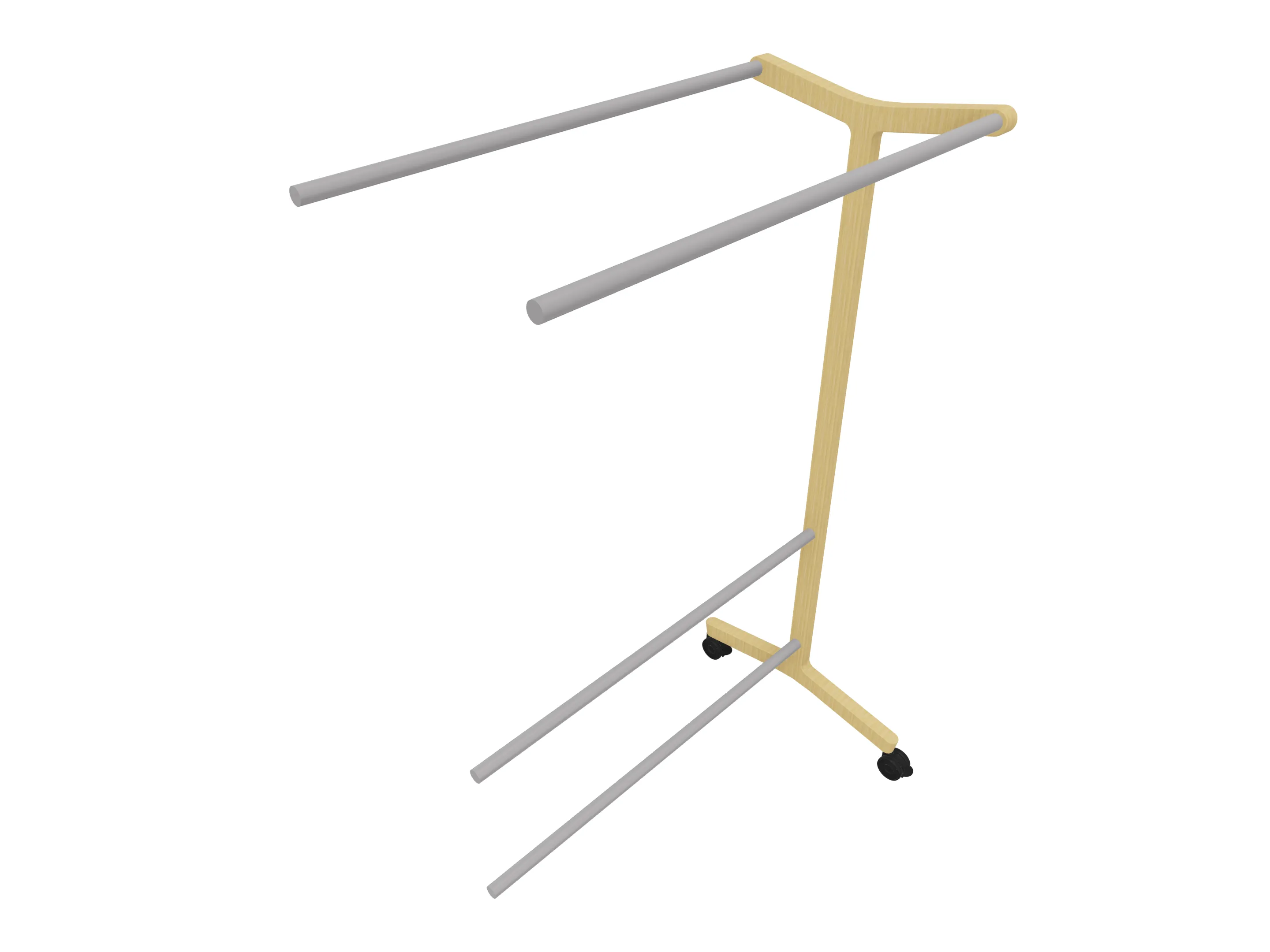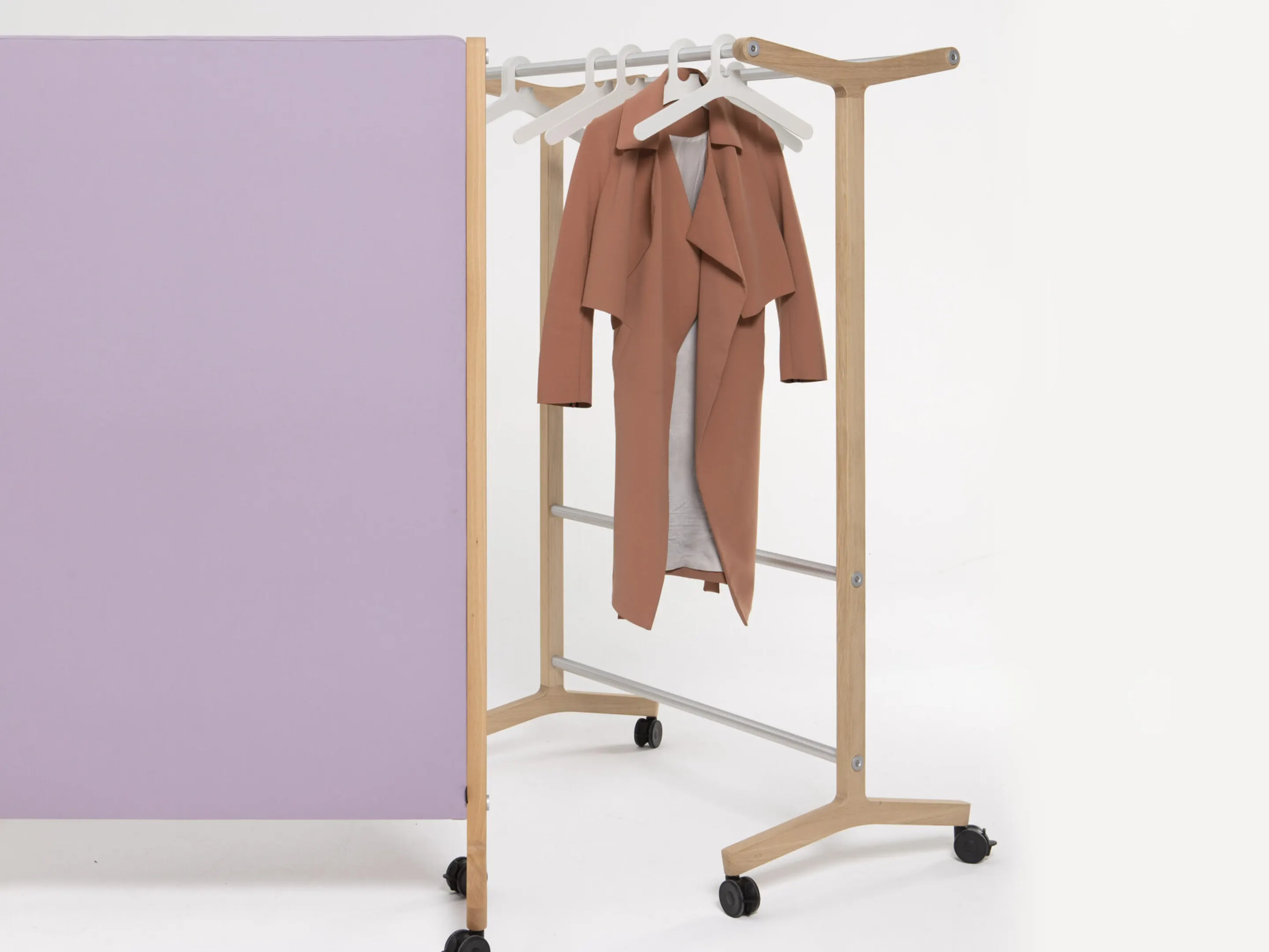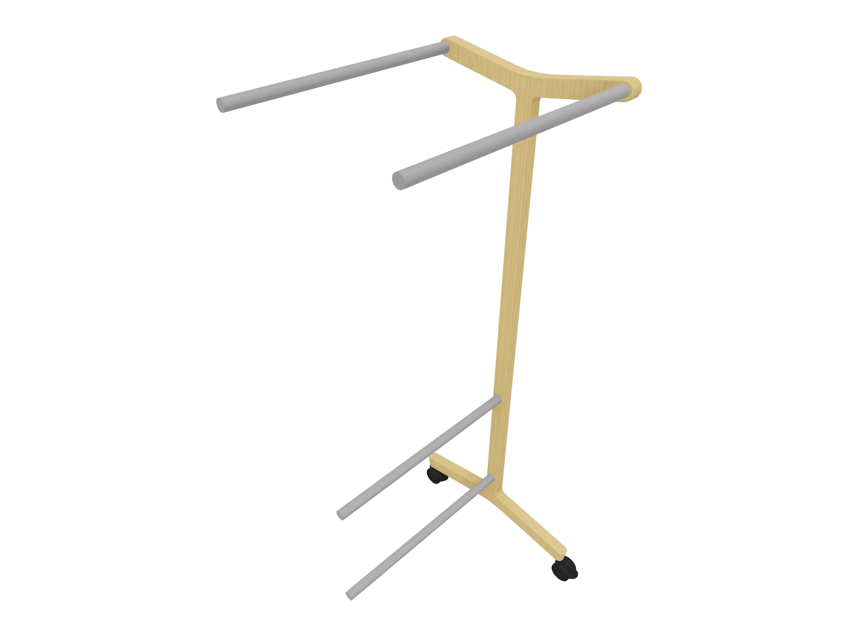 Verrijdbare garderoberek met eiken frame met twee garderobestangen. Afmeting: 430 x 700 x 1800mm (BxDxH)