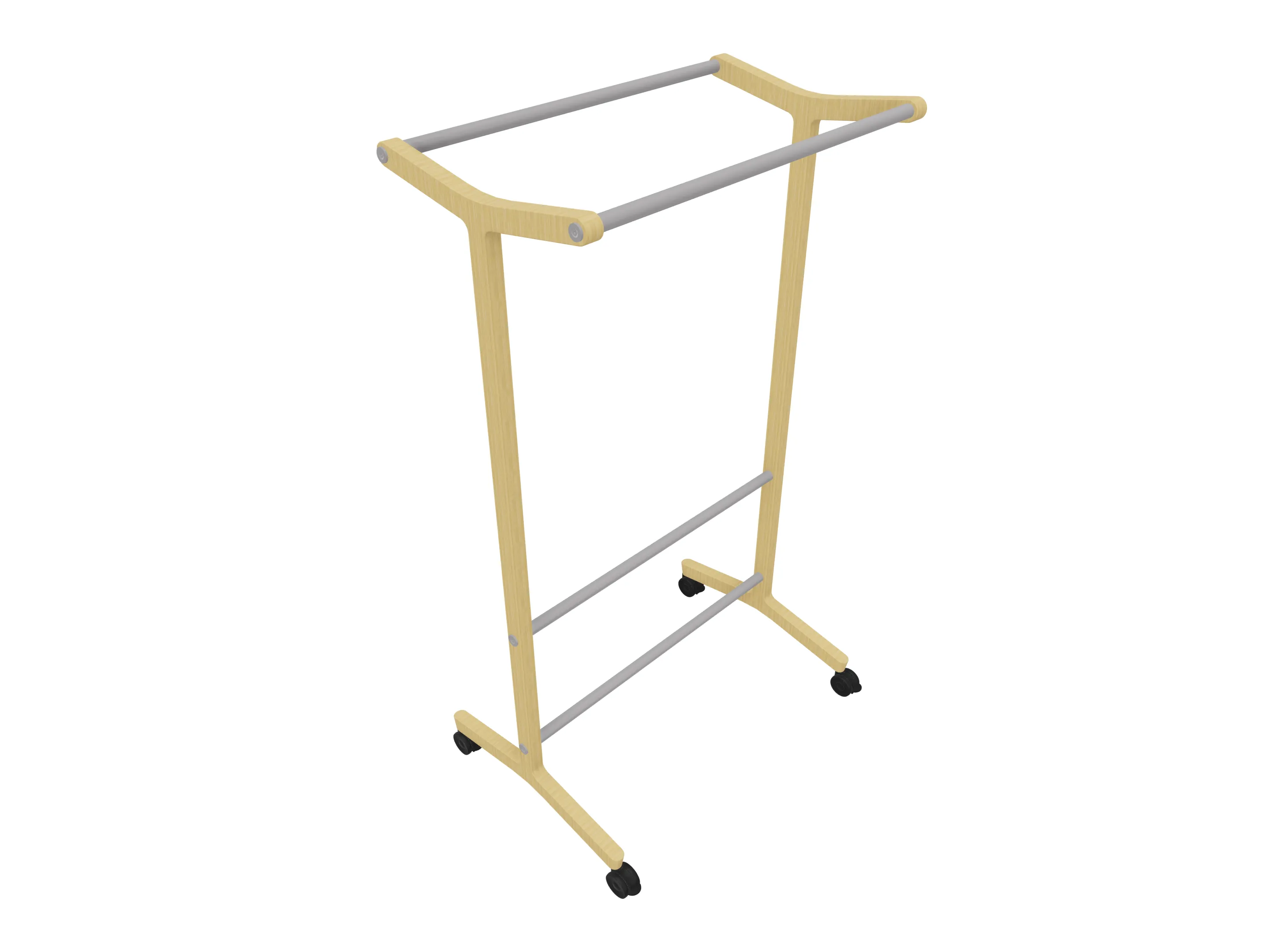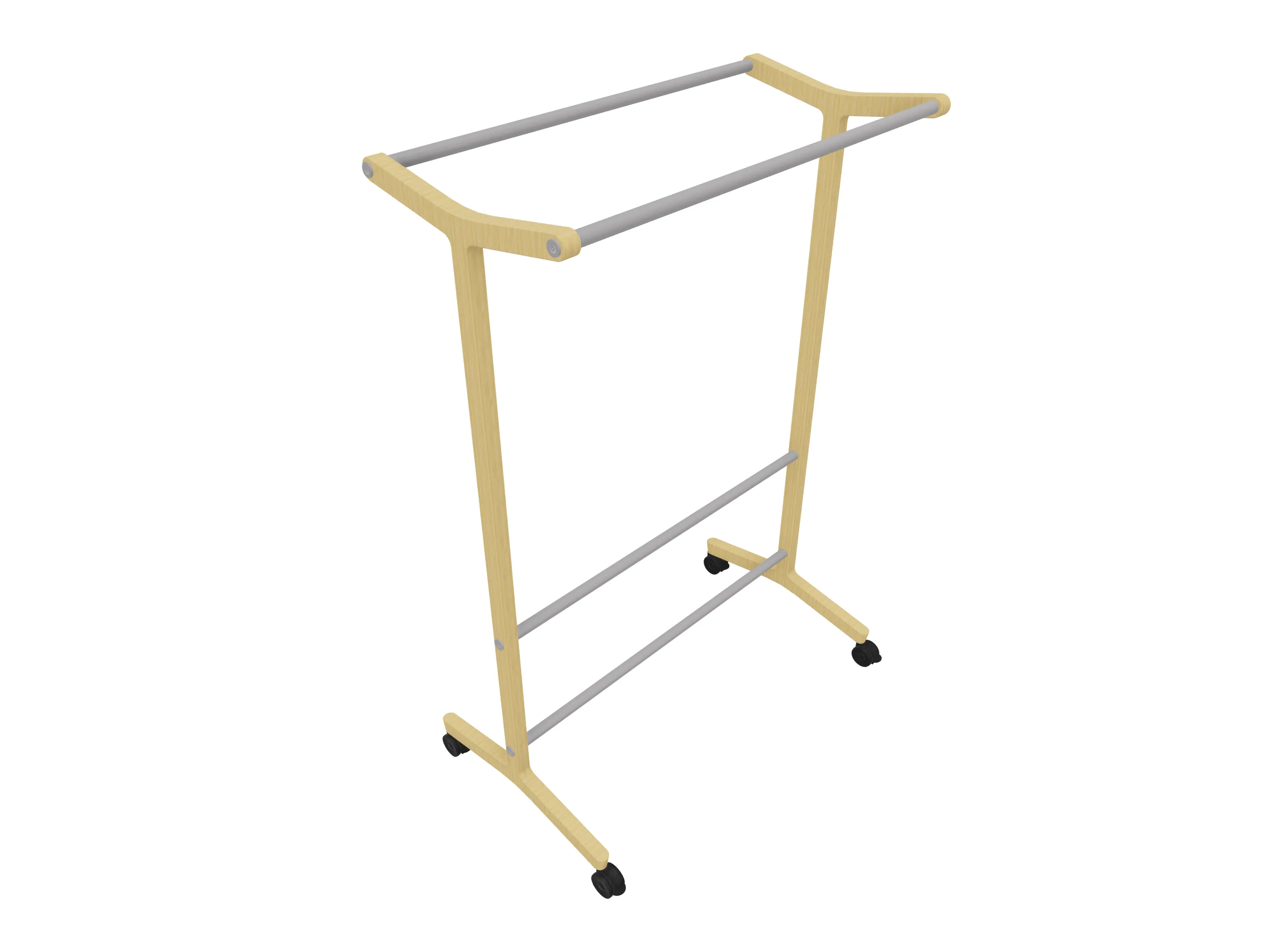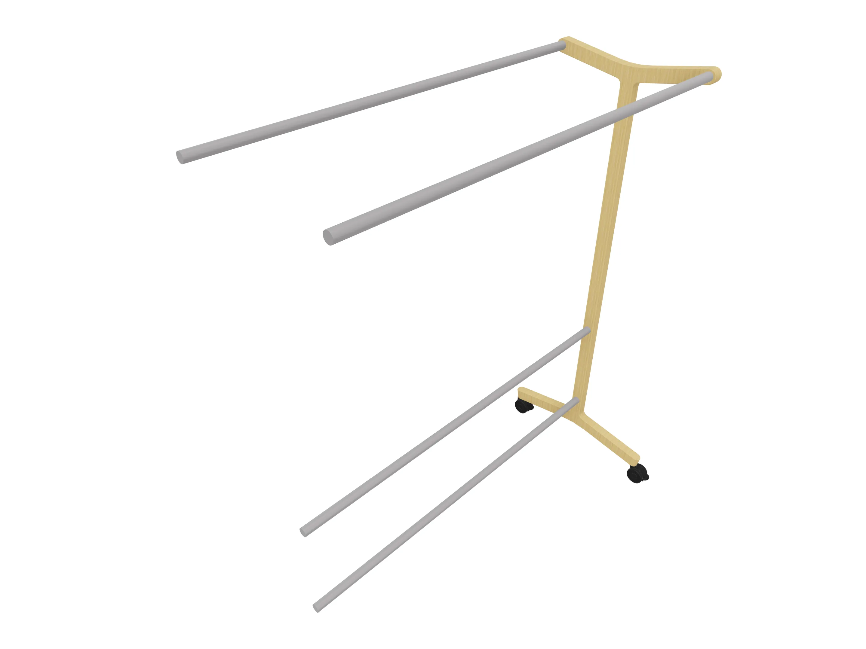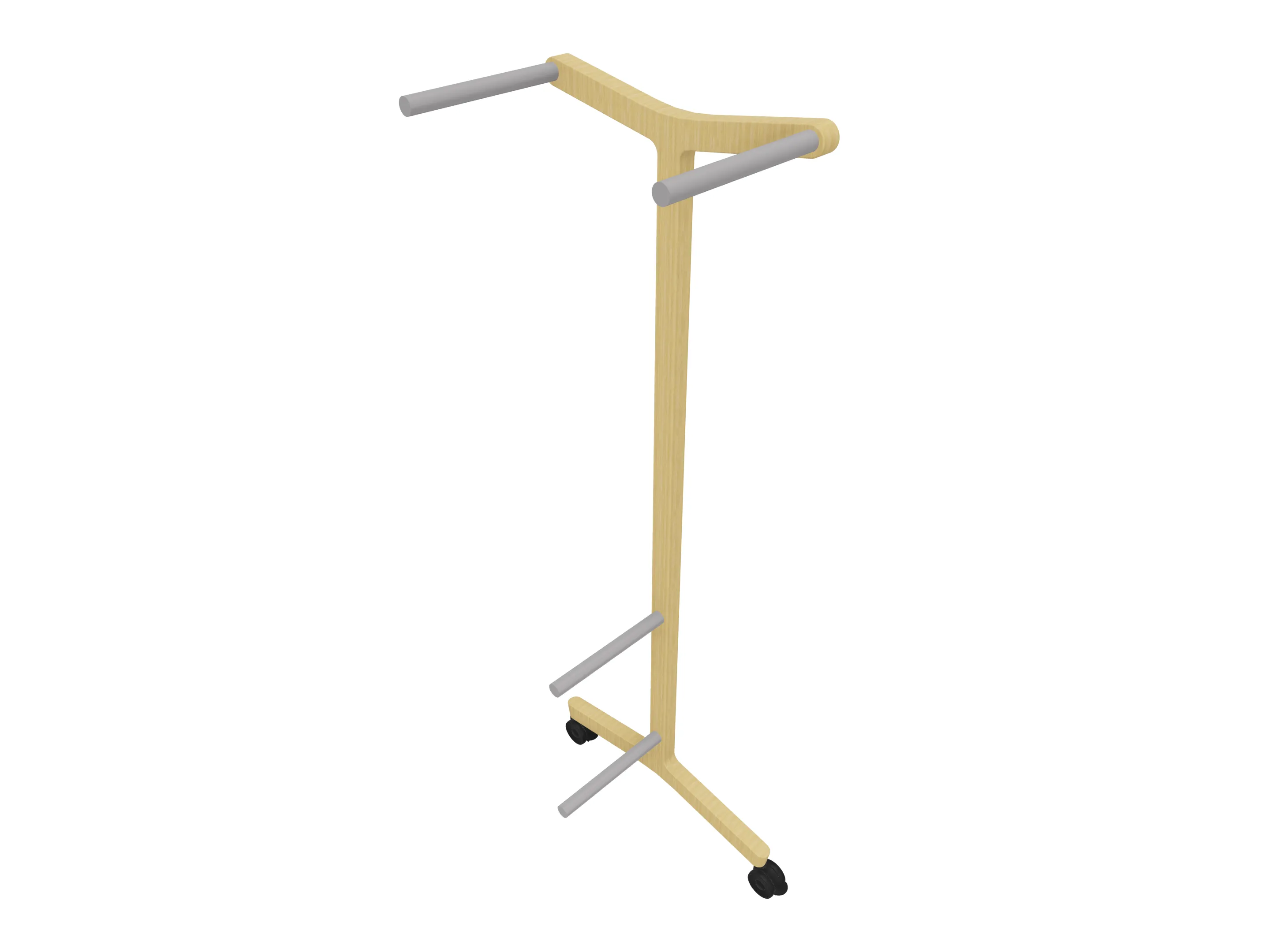 Verrijdbare garderoberek met eiken frame met twee garderobestangen. Afmeting: 430 x 700 x 1800mm (BxDxH)