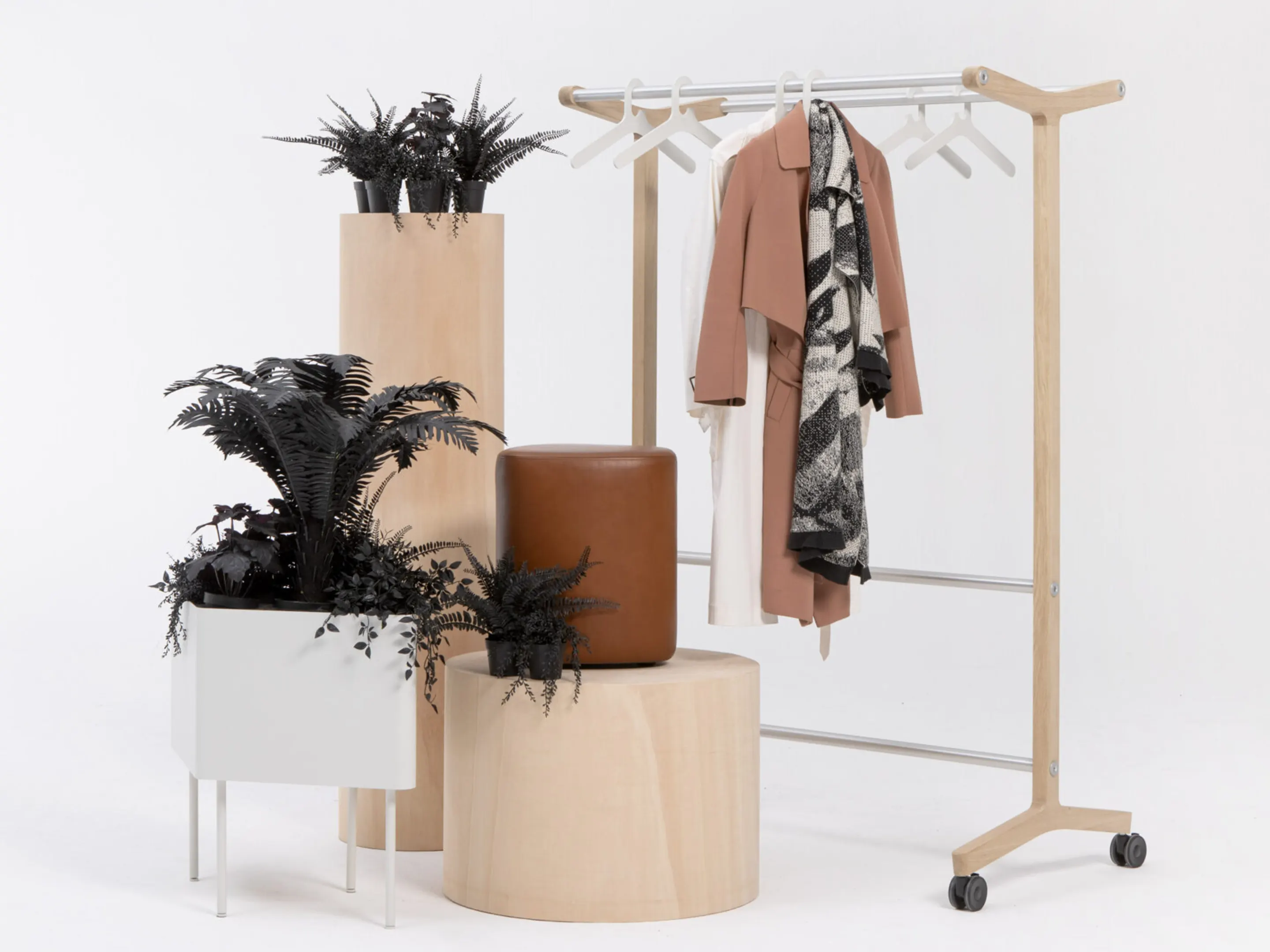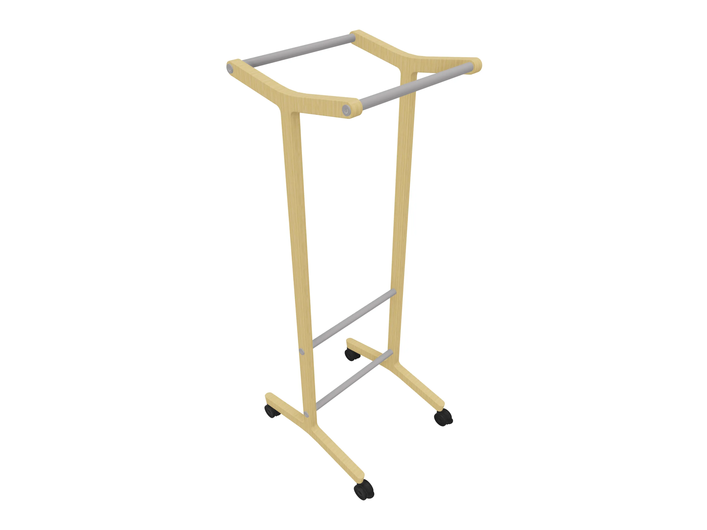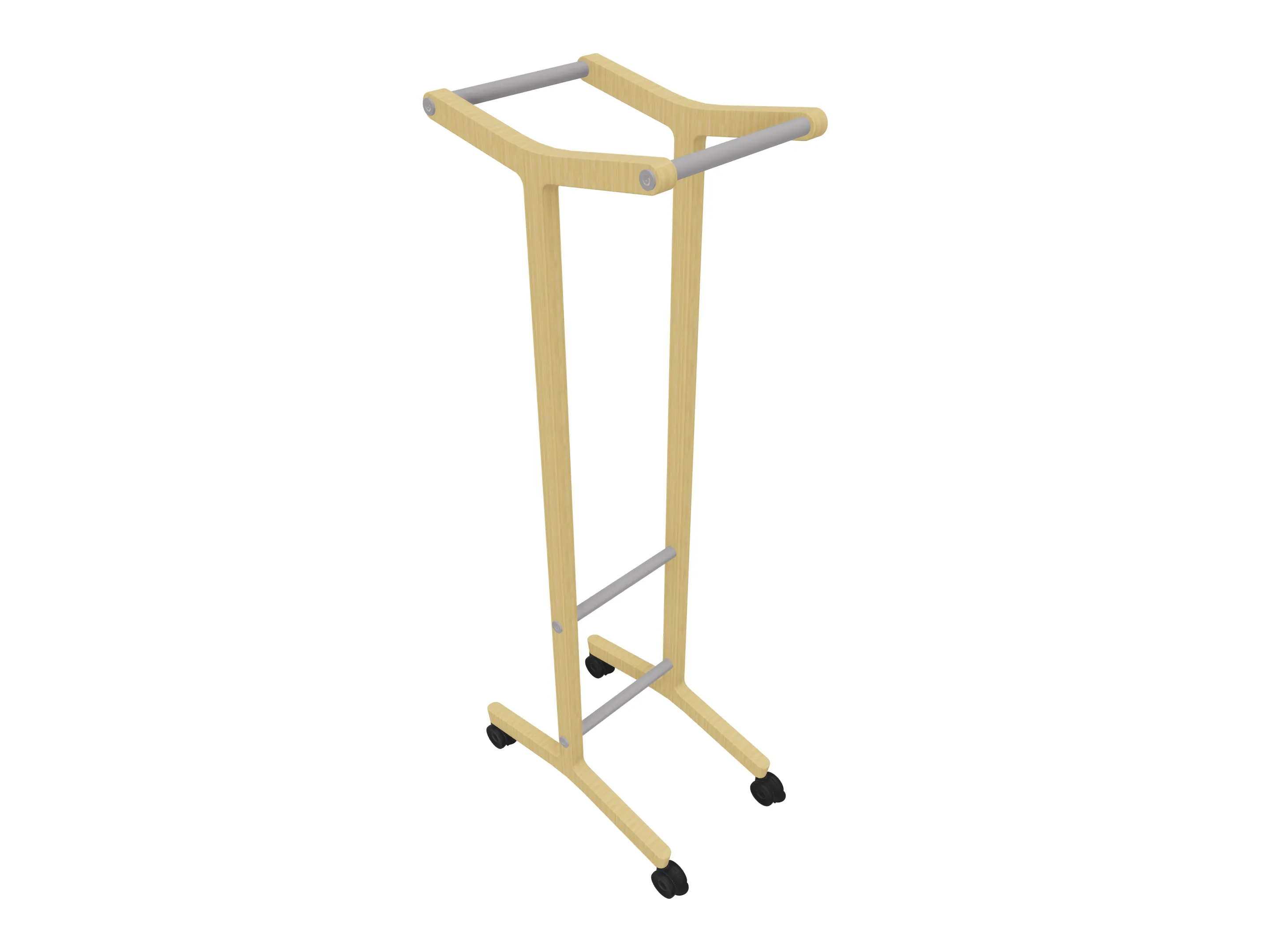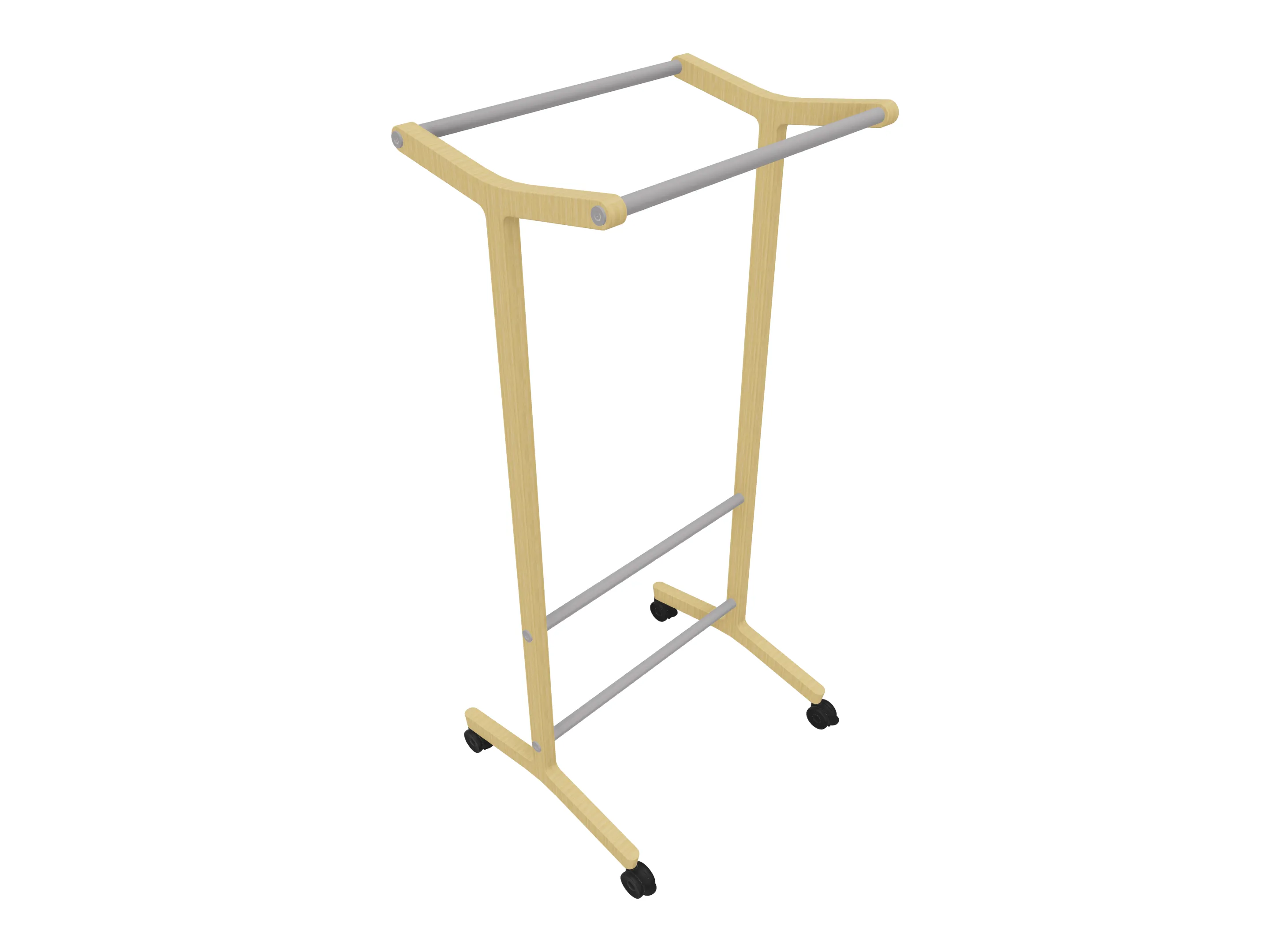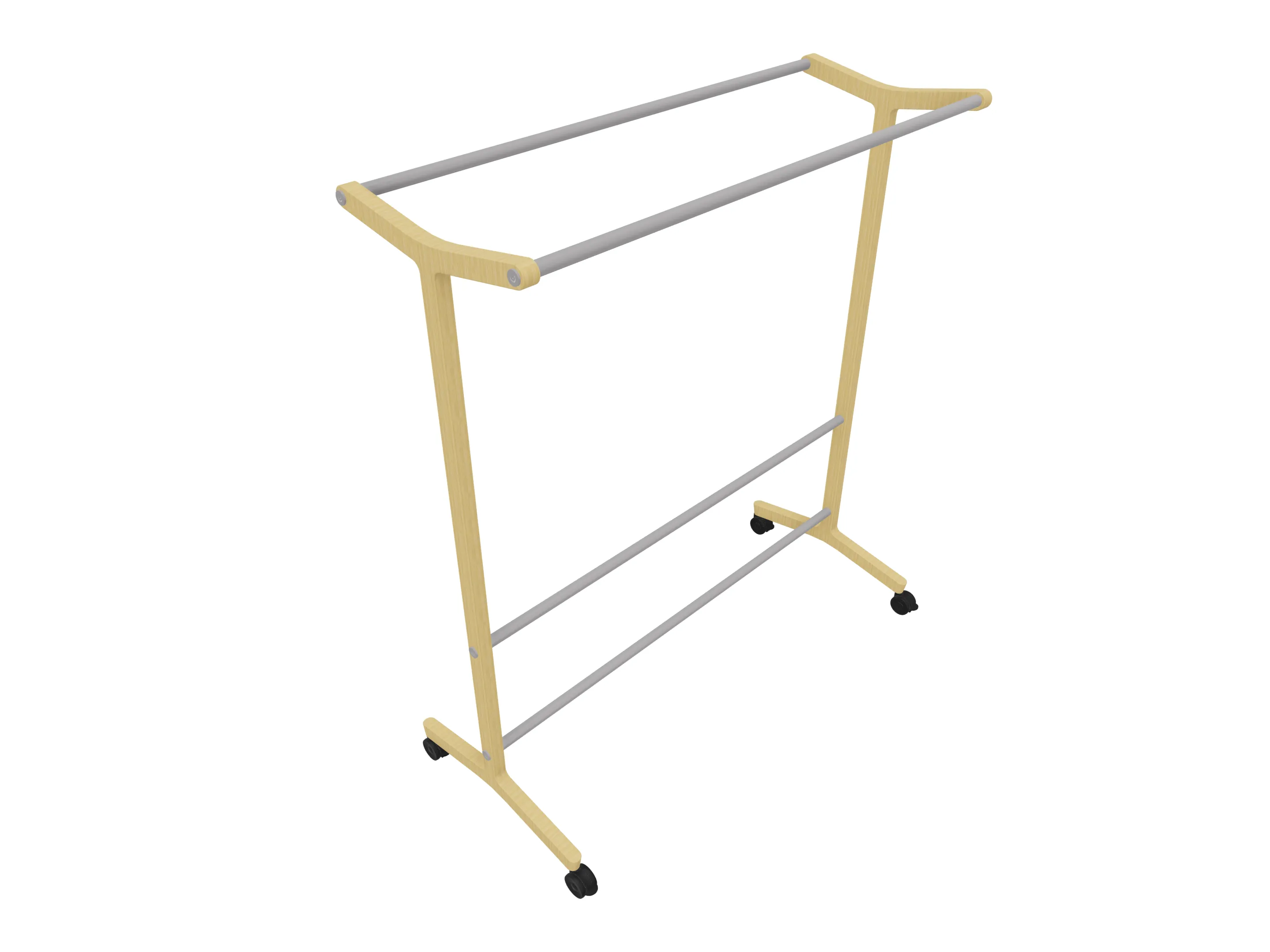 Verrijdbare garderoberek met eiken frame met twee garderobestangen. Afmeting: 430 x 700 x 1800mm (BxDxH)