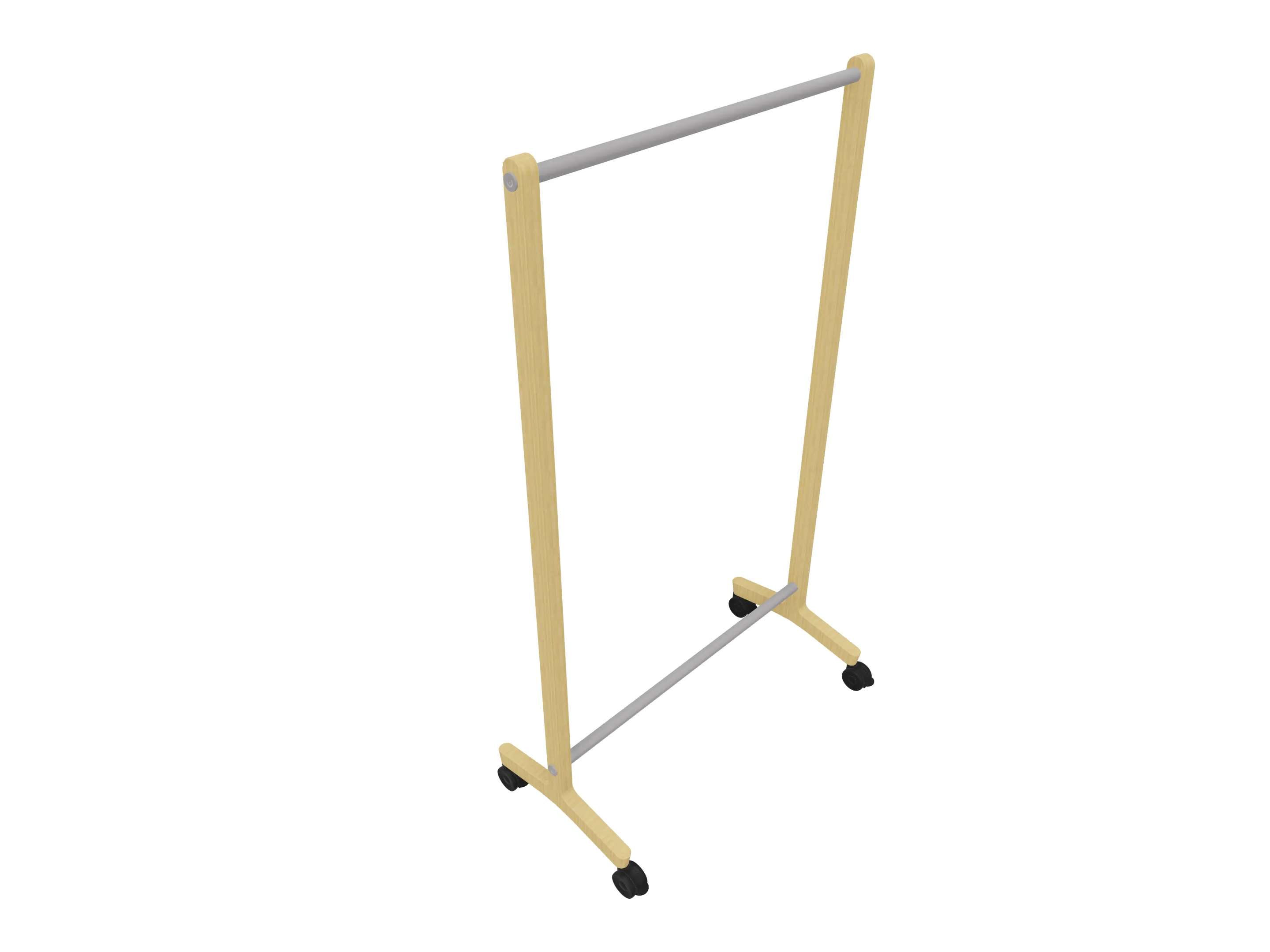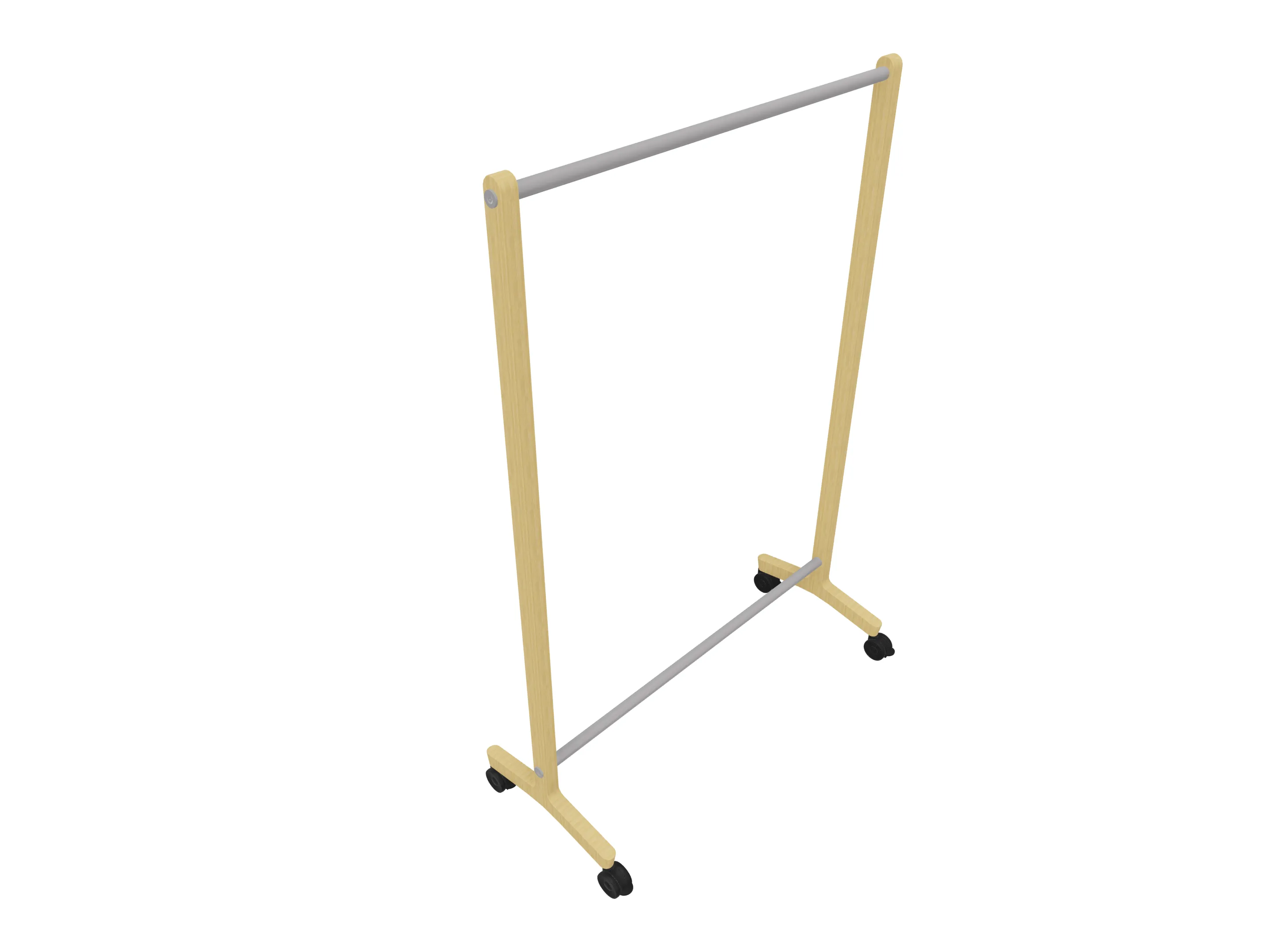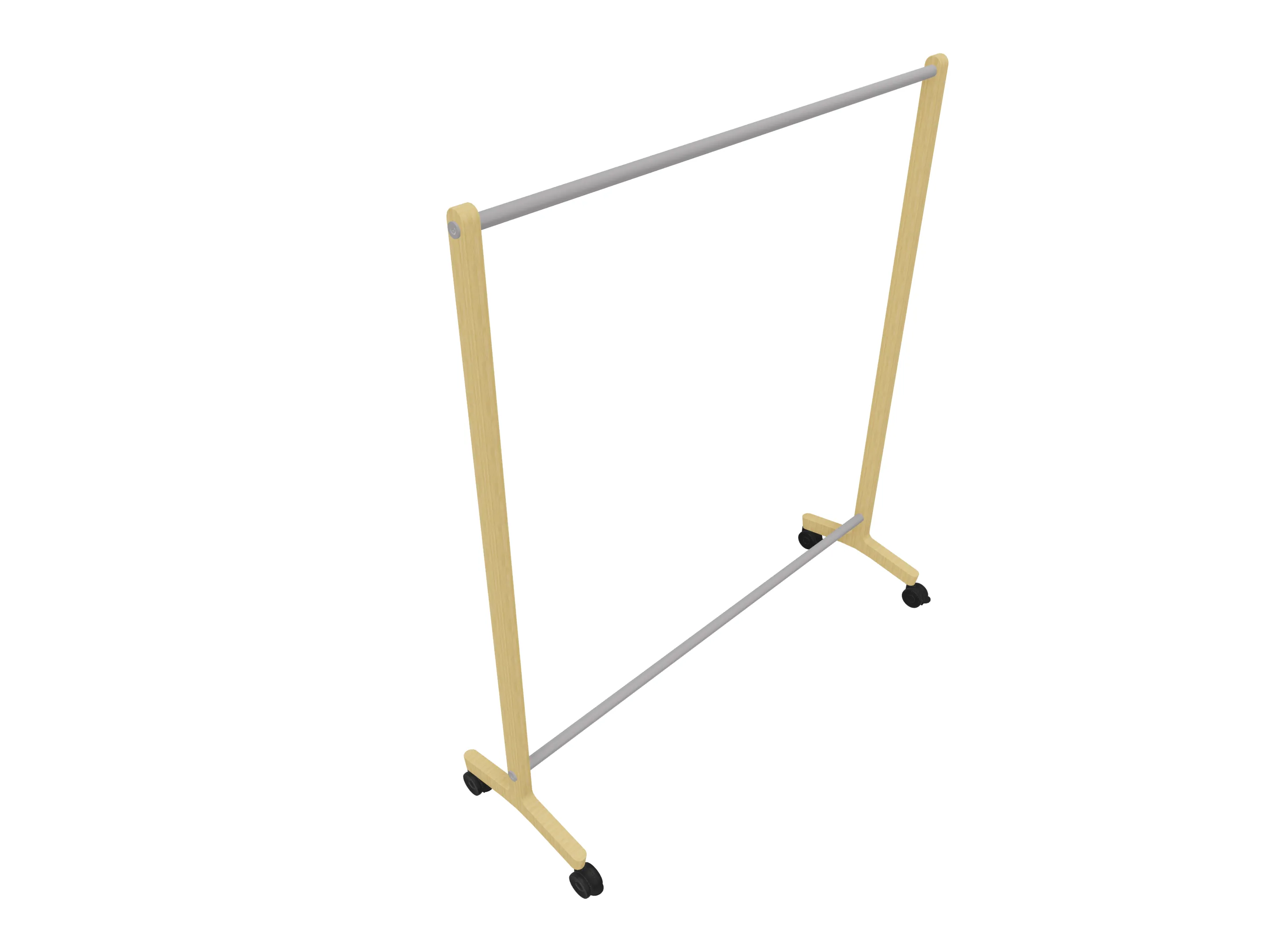 Verrijdbare garderoberek met eiken frame met één garderobestang. Afmeting: 1030 x 500 x 1800mm (BxDxH)