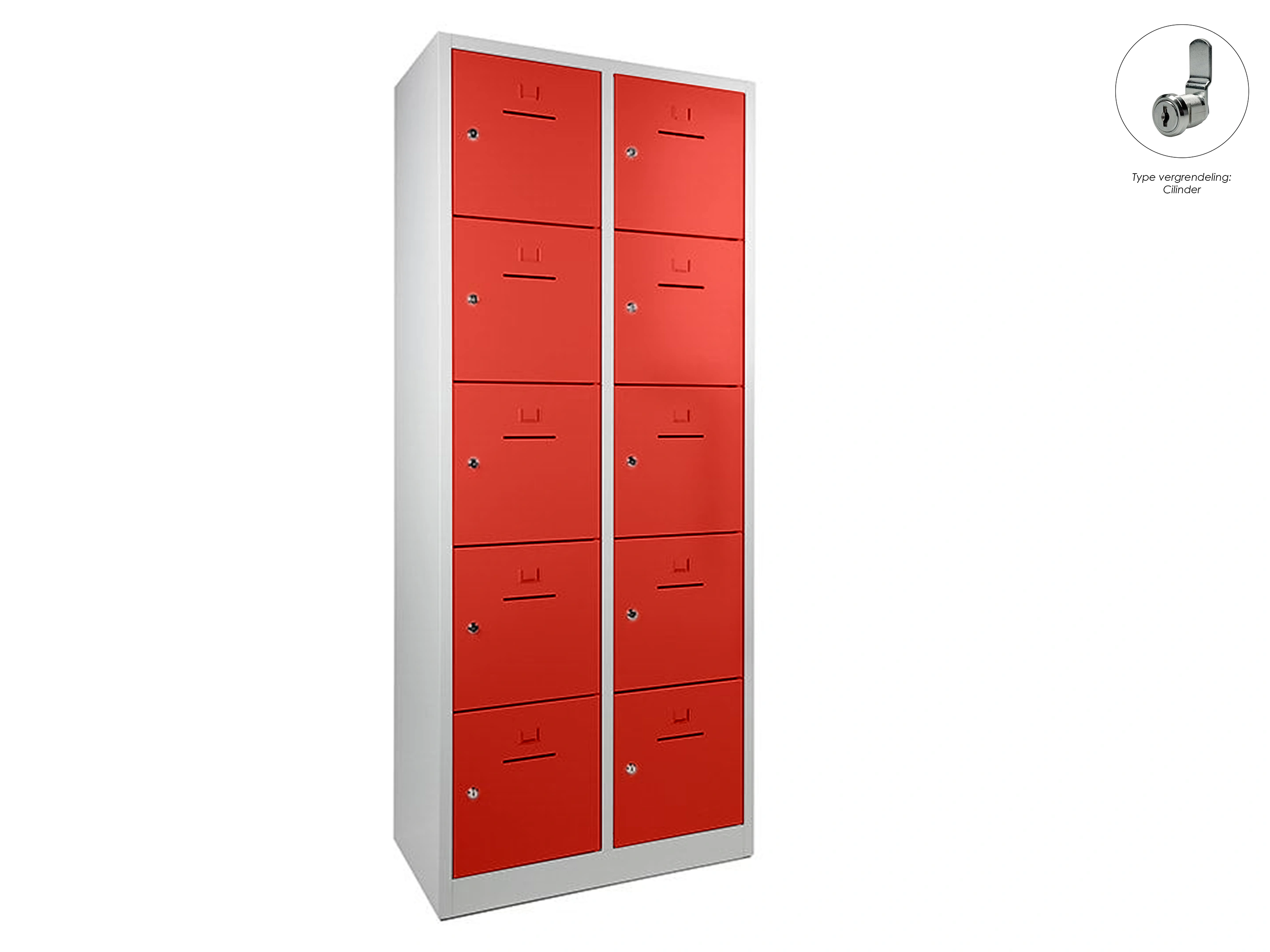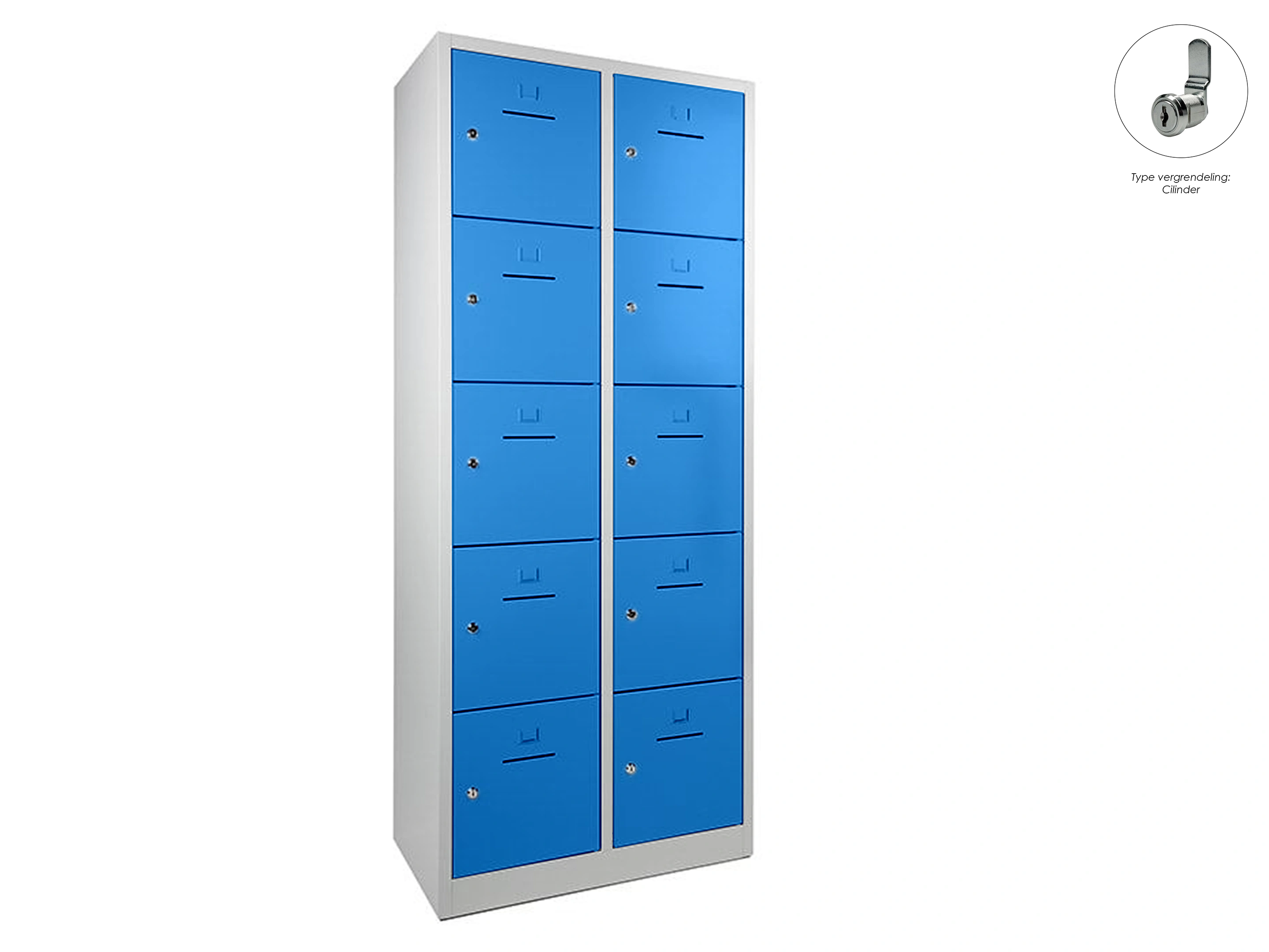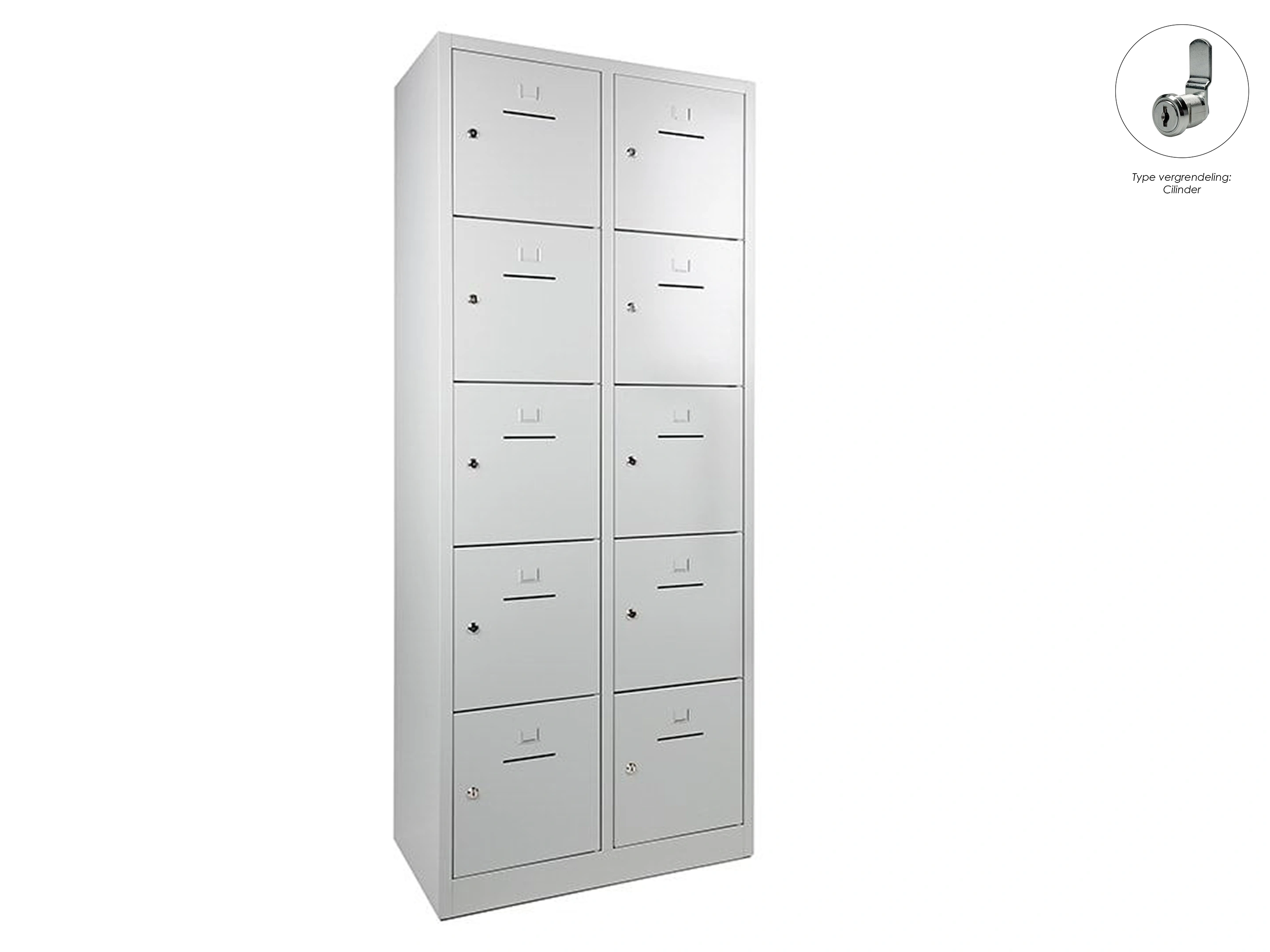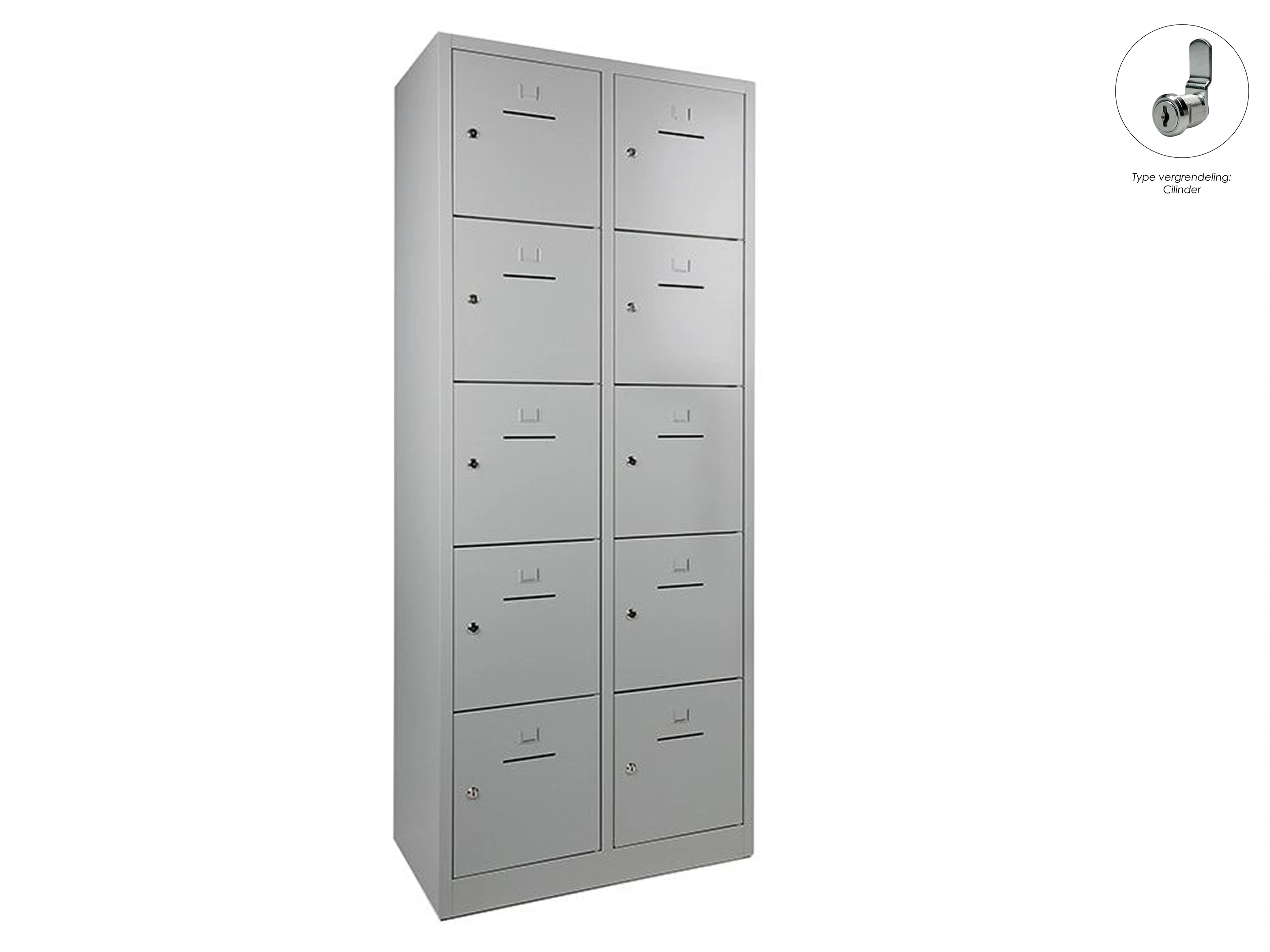 Lockerkast met 2 kolommen en 10 deuren, afsluitbaar met een cilindersluiting, incl sleutels, binnenmaat locker links: 35,5x38x42cm (hxbxd), rechts: 35,5x40x42cm, deuropening: 32x31,5cm (hxb)
