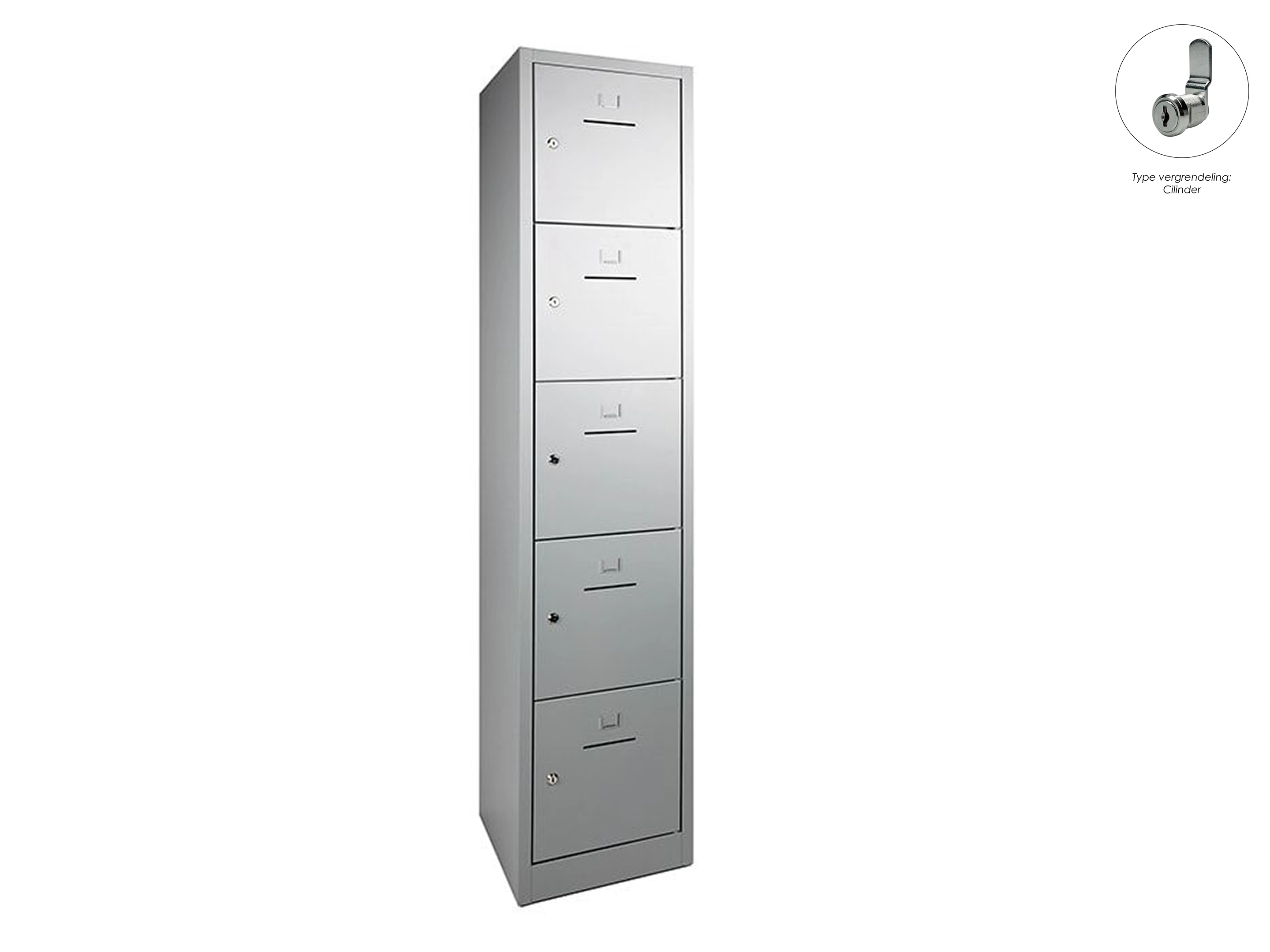 SHC Lockerkast - 5 deurs, 190x41x45cm, Grijs, cilinderslot