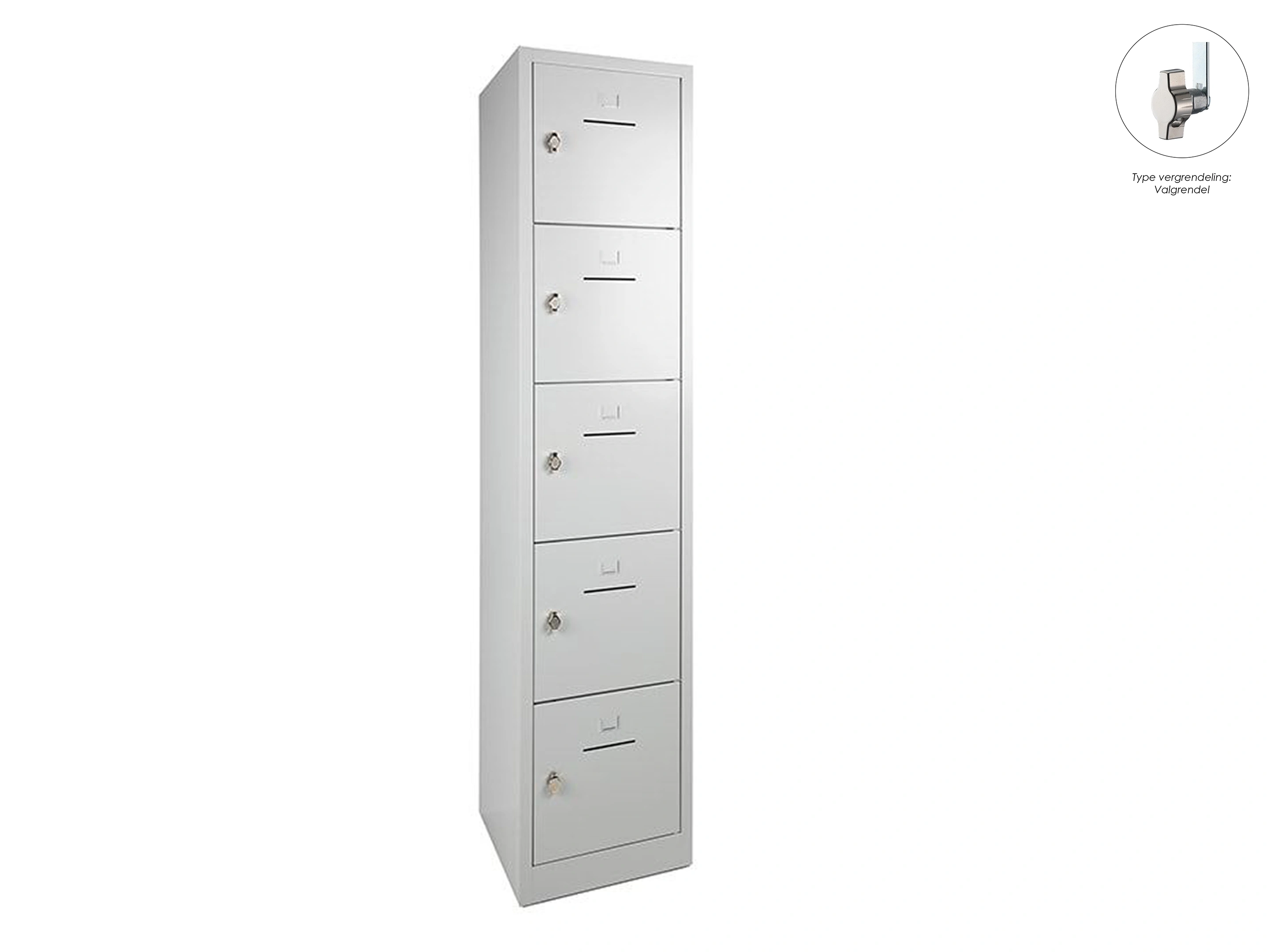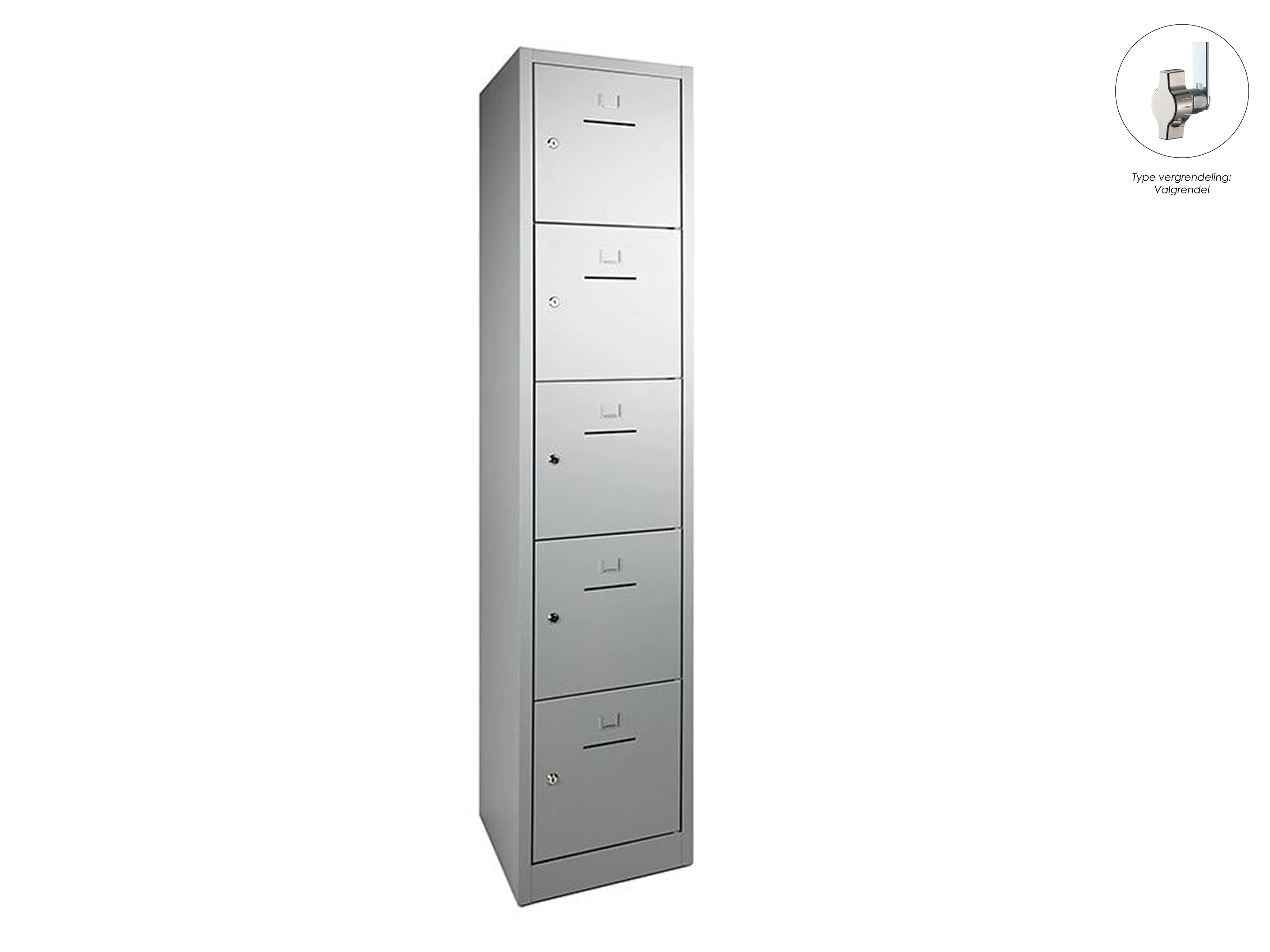SHC Lockerkast - 5 deurs, 190x41x45cm, Grijs, valgrendelslot