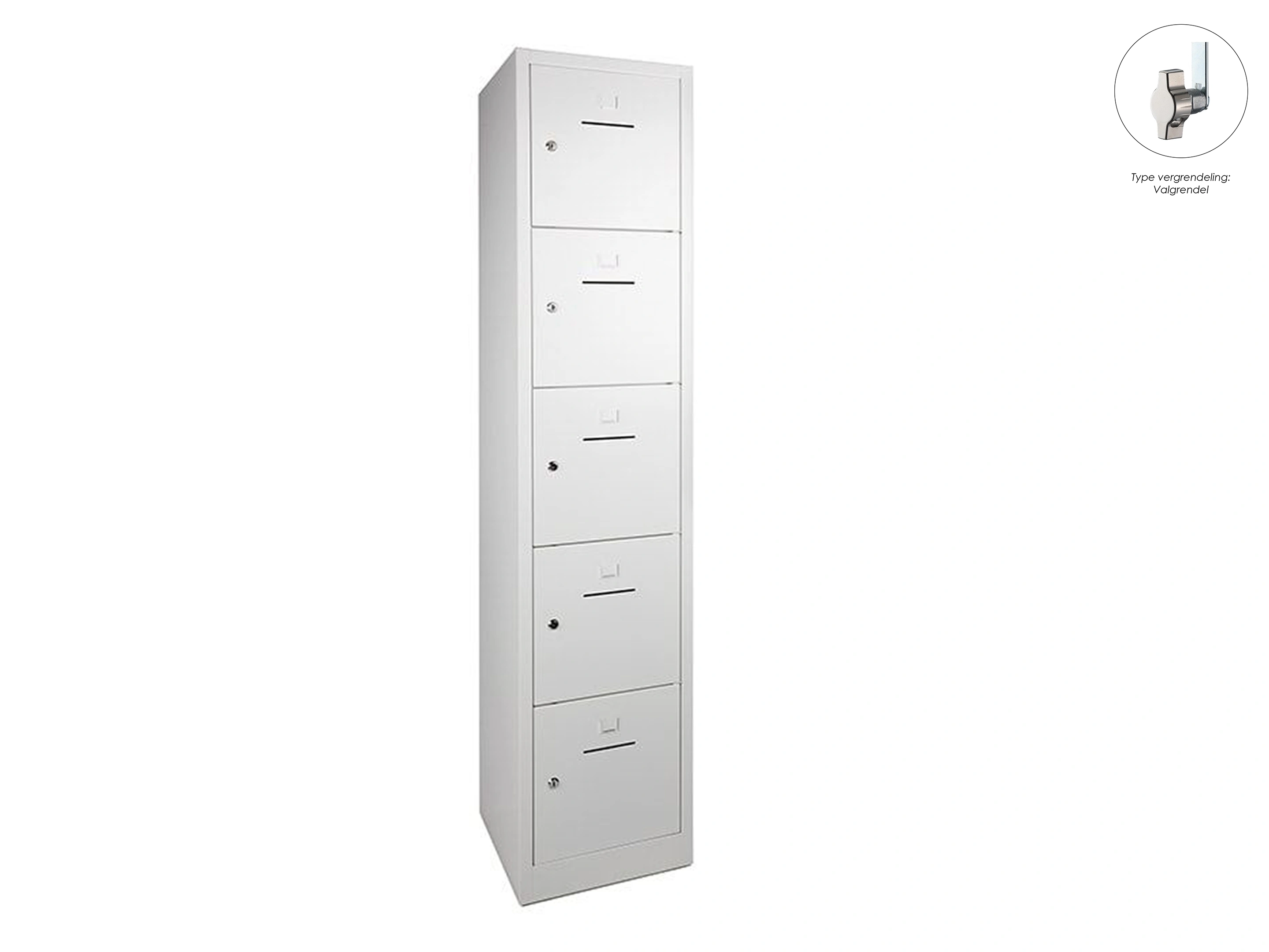 SHC Lockerkast - 5 deurs, 190x41x45cm, Wit, valgrendelslot