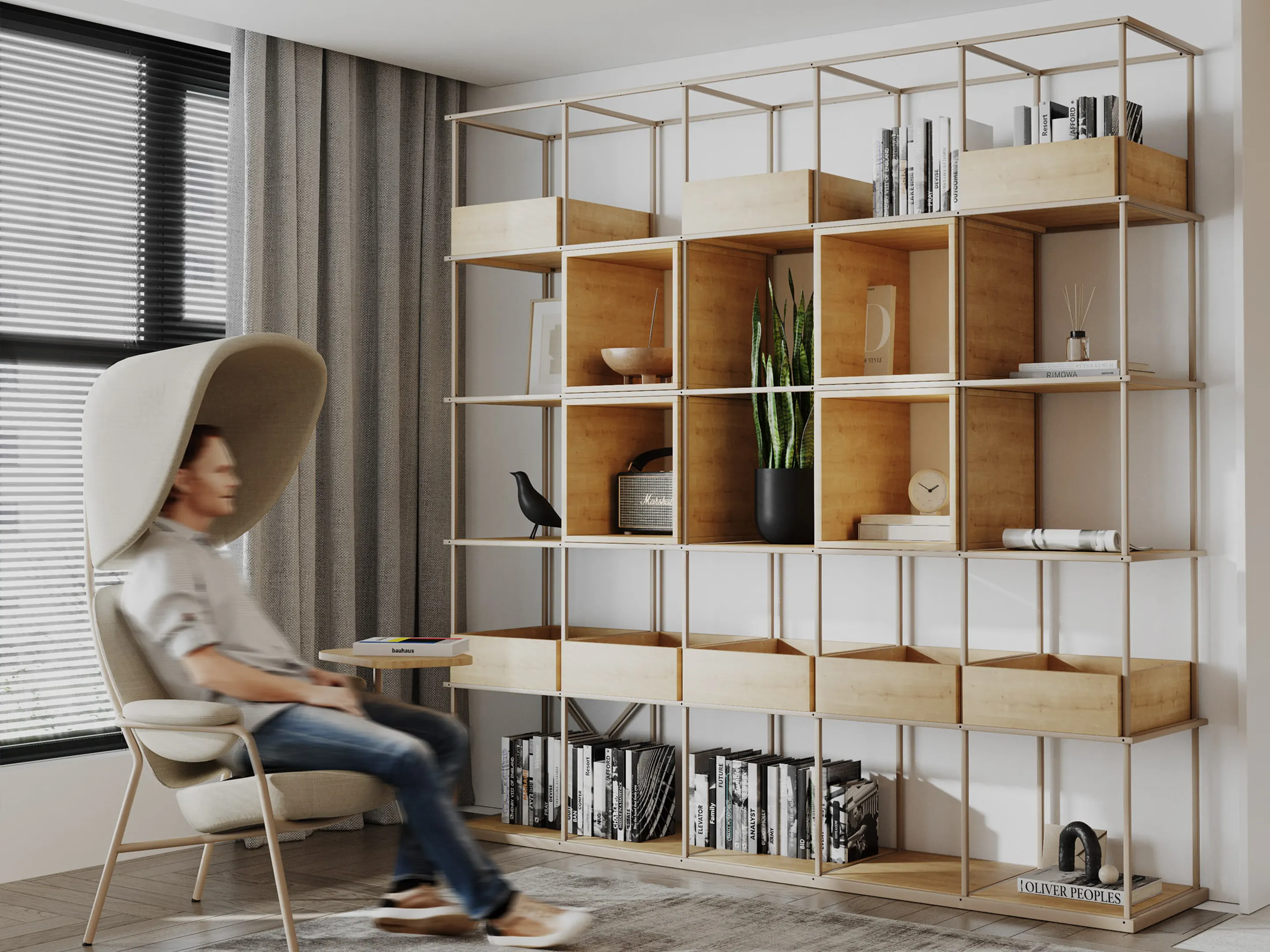 Vakkenkast systeem uit stalen kokerprofielen, voorzien van één schoorkruis. Inhoud moet los besteld worden. Afmeting: 1354 x 1336 x 484mm (BxHxD). Let op! Frame wordt af fabriek compleet geleverd! Het is verplicht deze opstelling te verankeren!