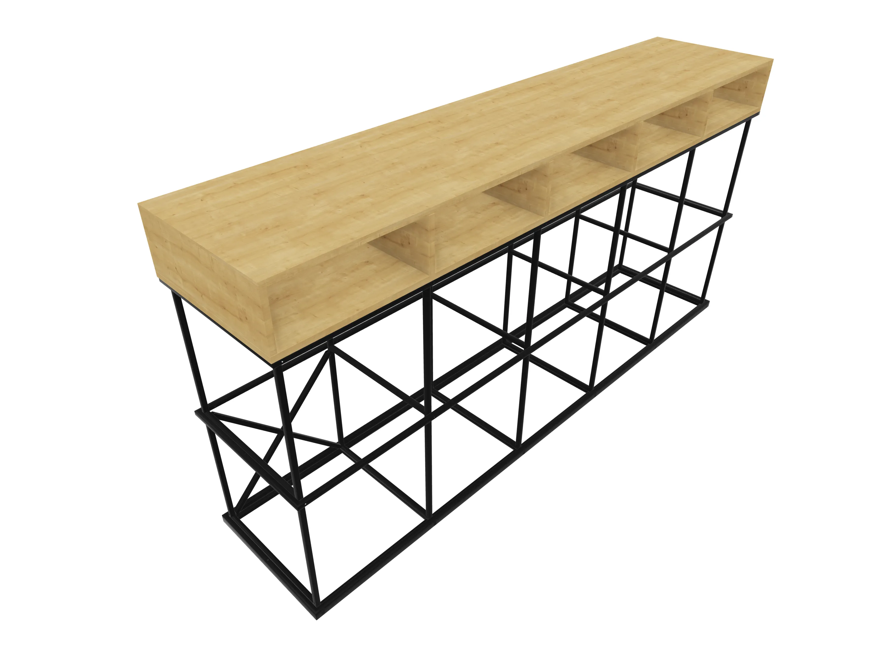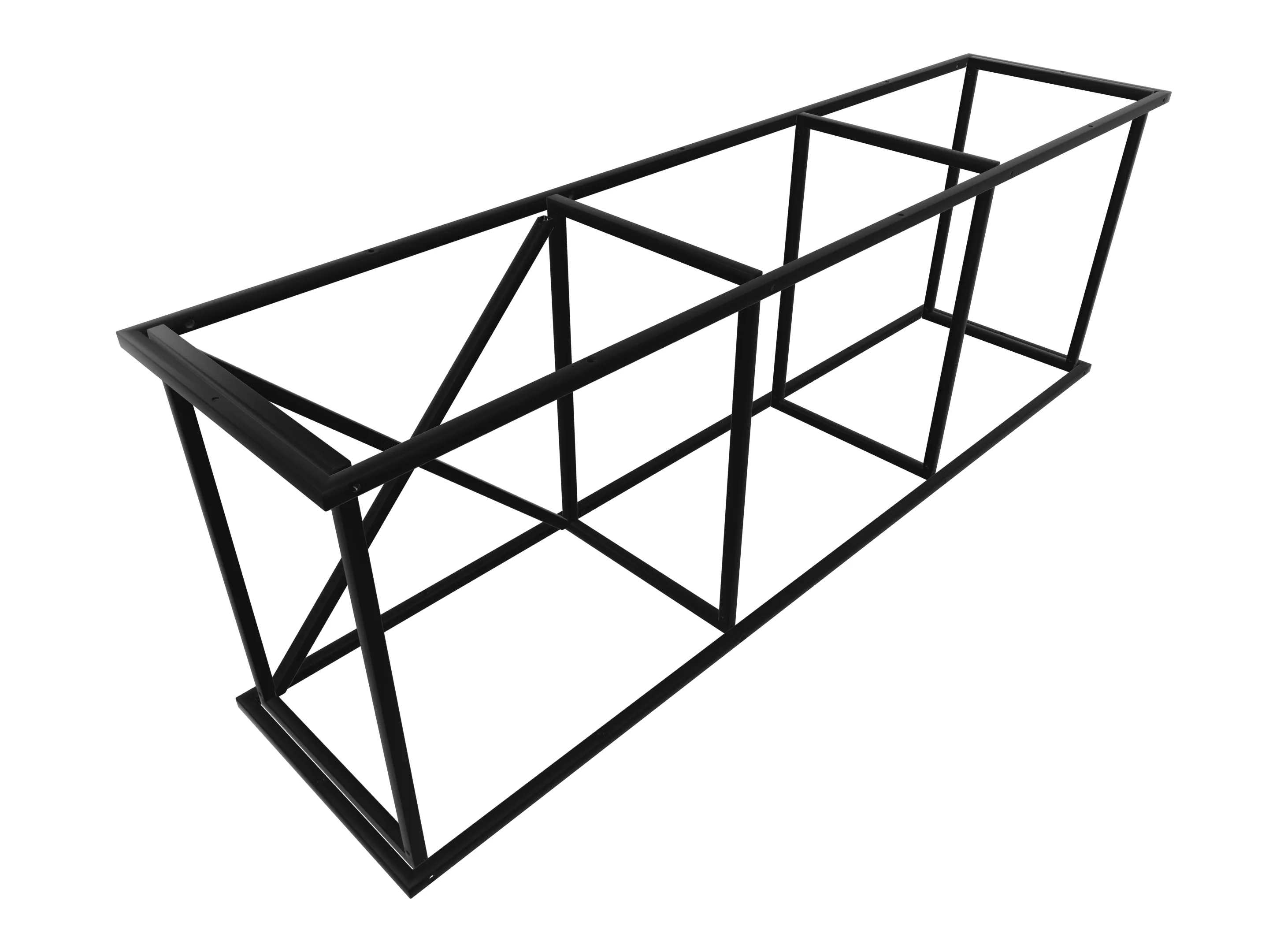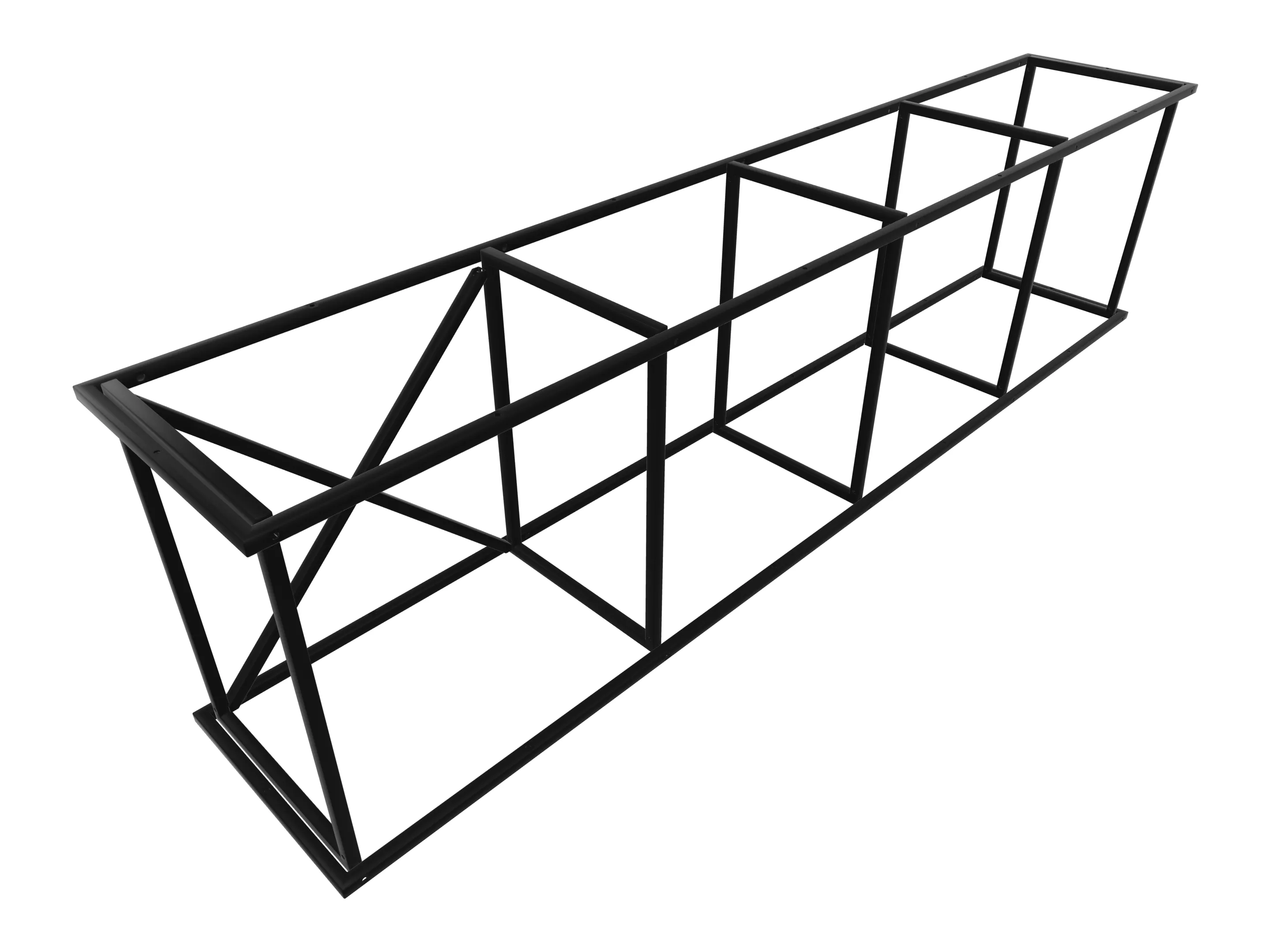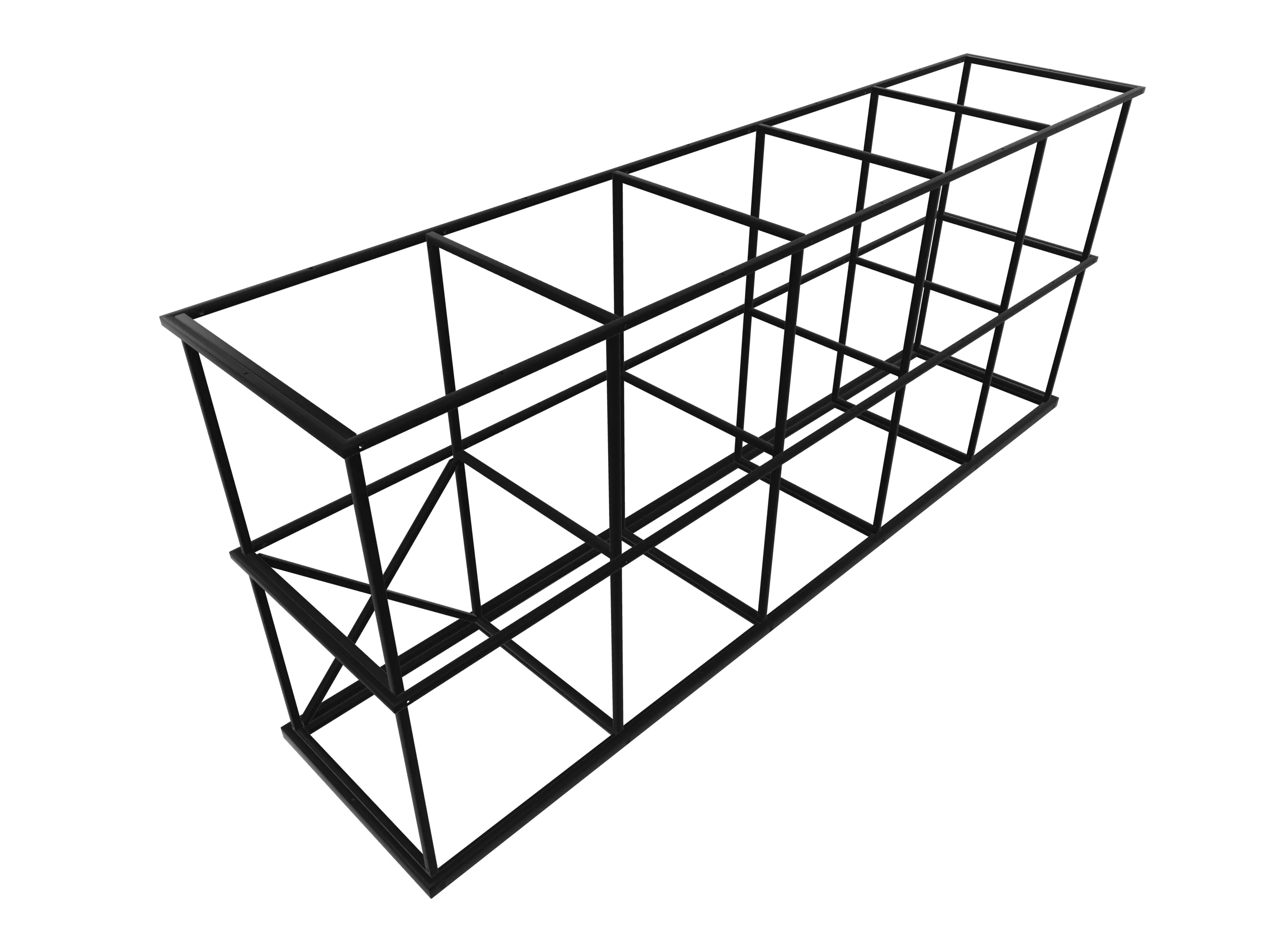 Vakkenkast systeem met werkblad uit stalen kokerprofielen, voorzien van één schoorkruis. Inhoud moet los besteld worden. Afmeting: 2225 x 1100 x 485mm (BxHxD). Let op! Frame wordt af fabriek compleet geleverd!