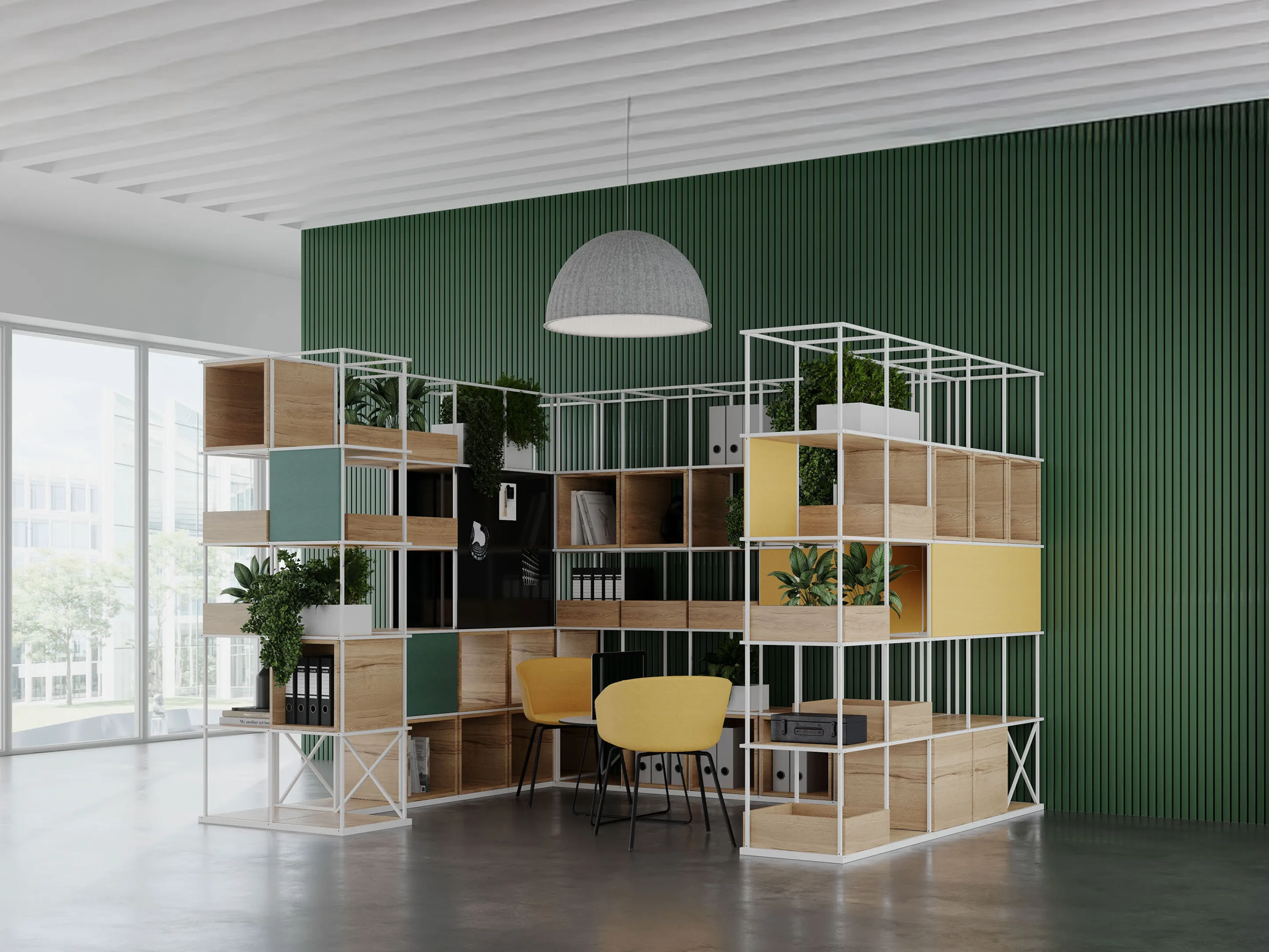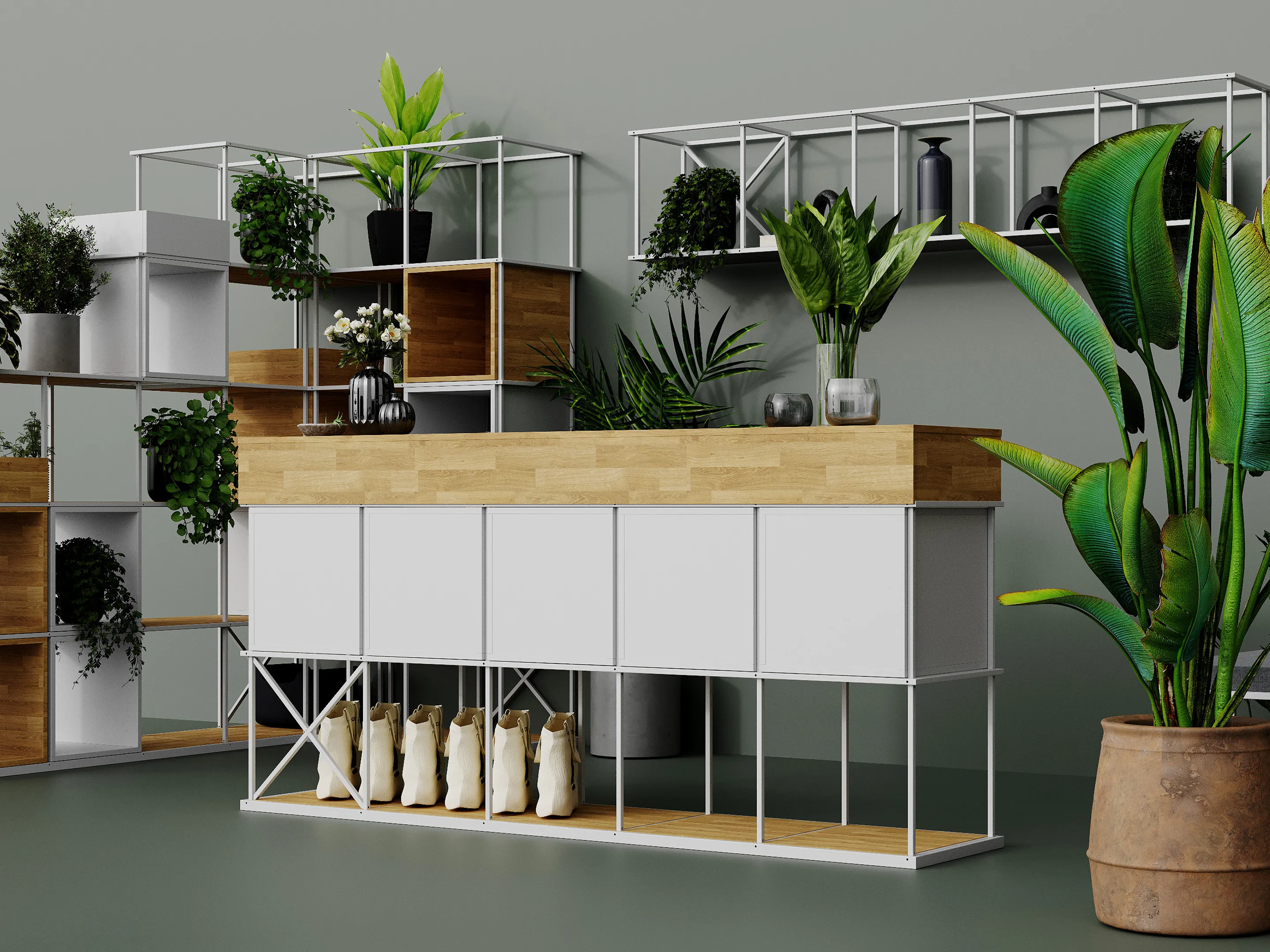 Saar Modulaire Vakkenkast - 4 modules breed, 2 modules hoog, met werkblad