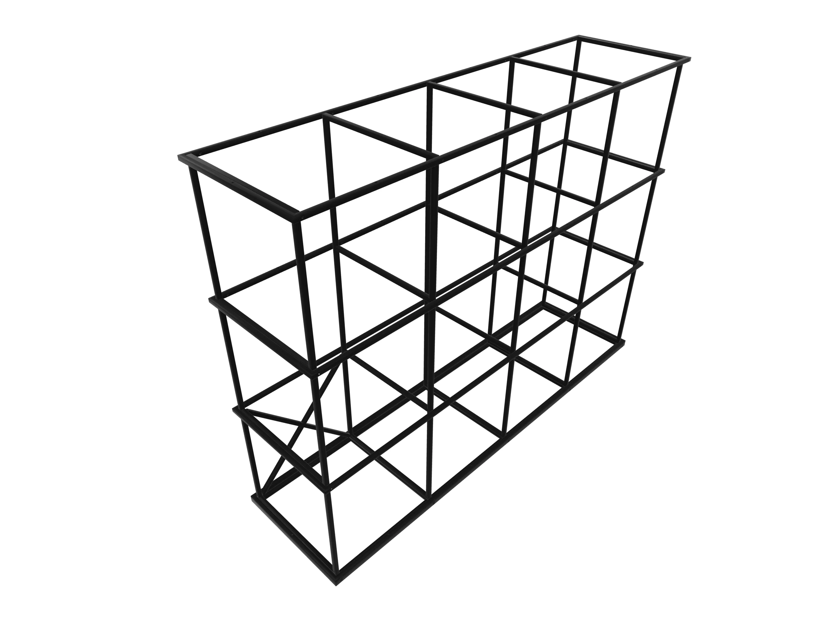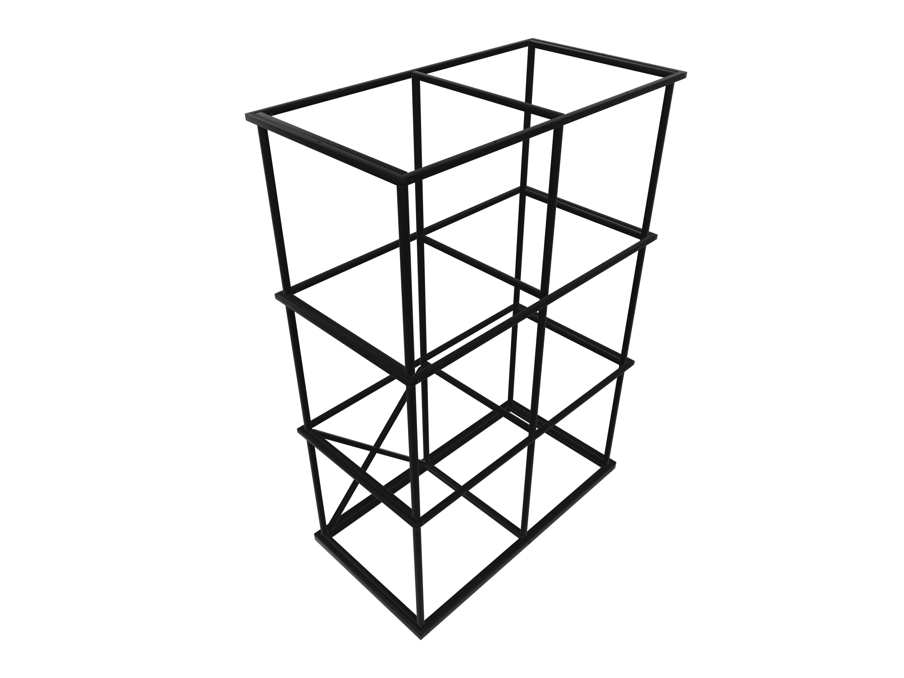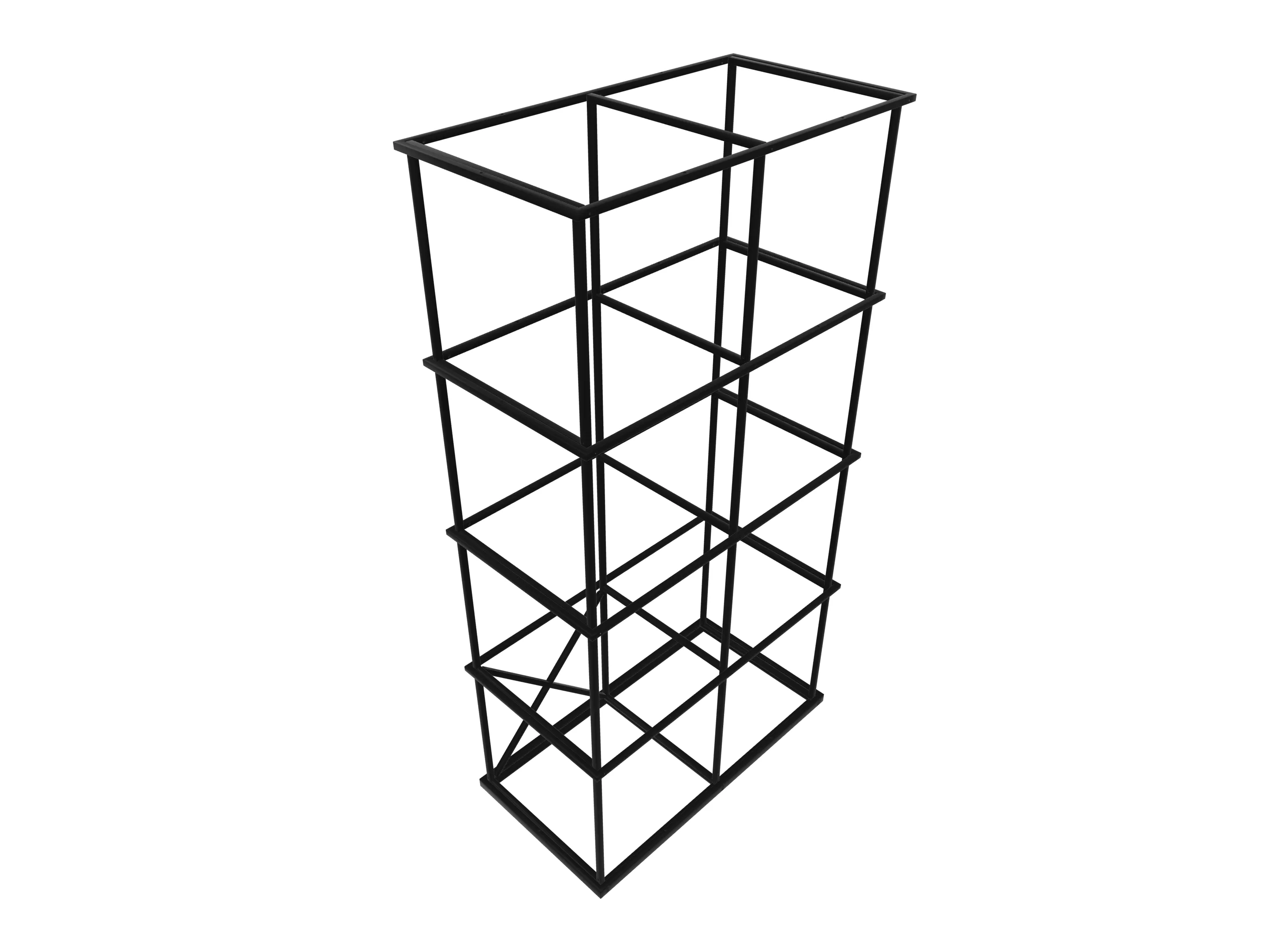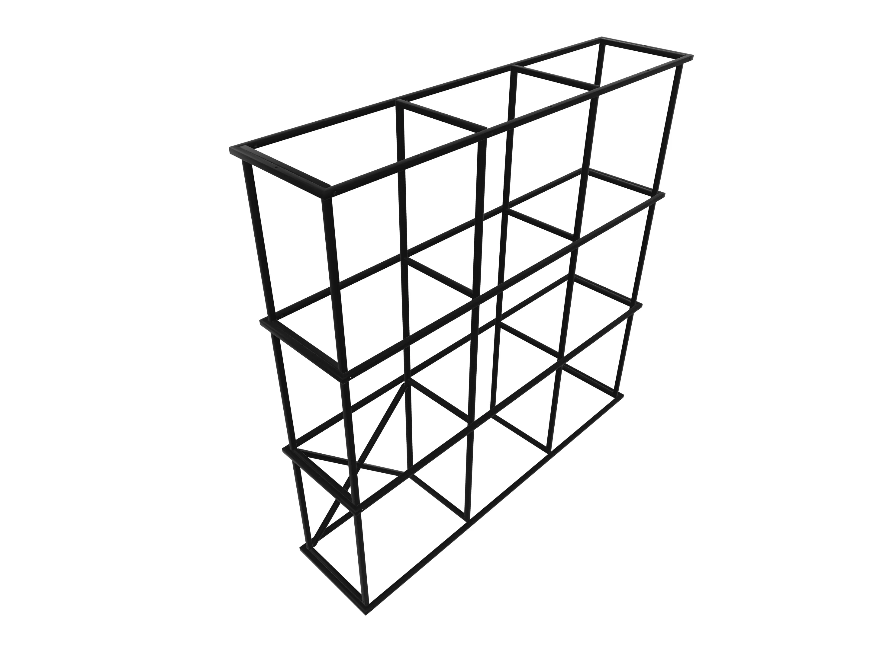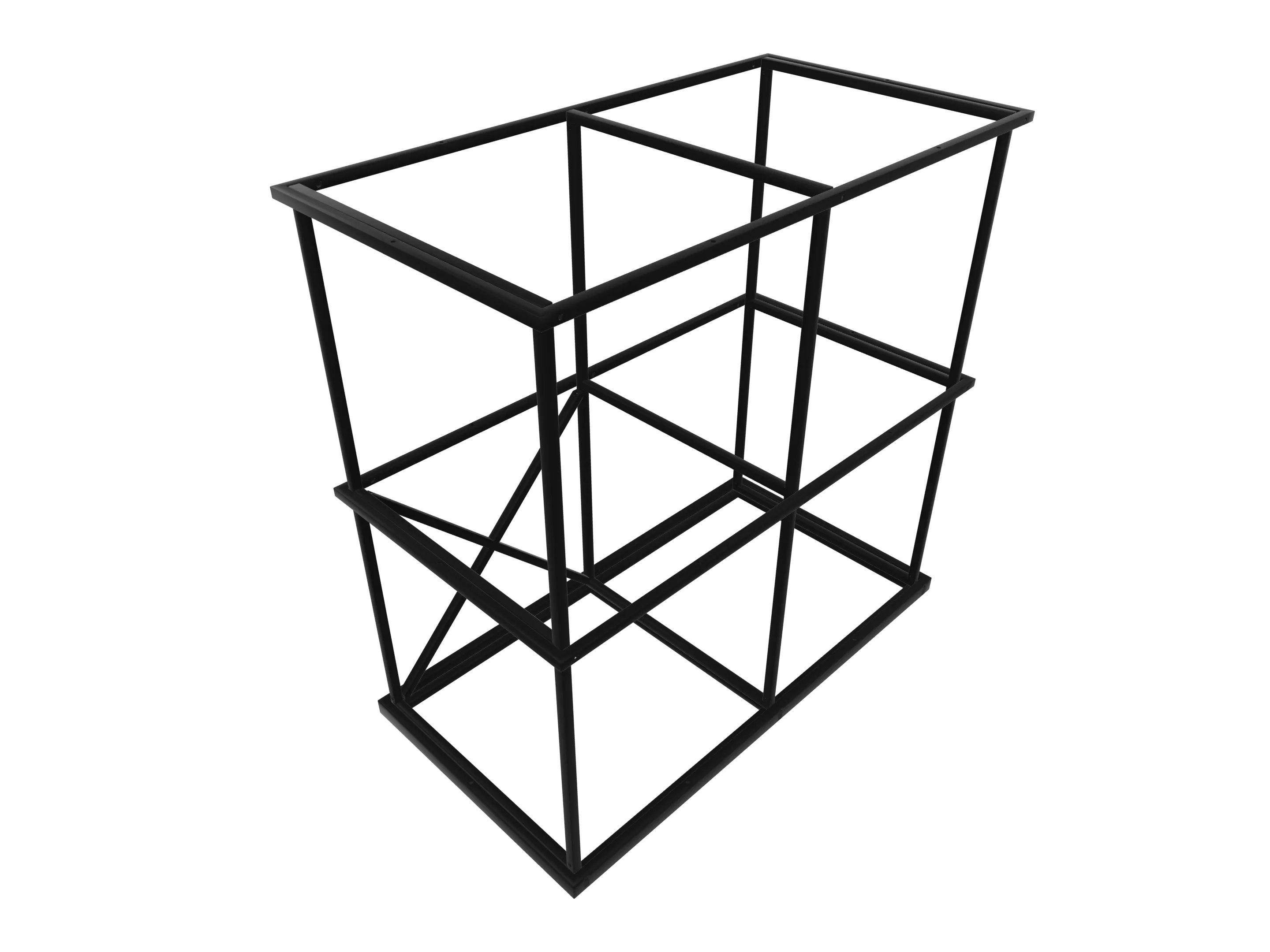 Vakkenkast systeem uit stalen kokerprofielen, voorzien van één schoorkruis. Inhoud moet los besteld worden. Afmeting: 484 x 466 x 484mm (BxHxD). Let op! Frame wordt af fabriek compleet geleverd!