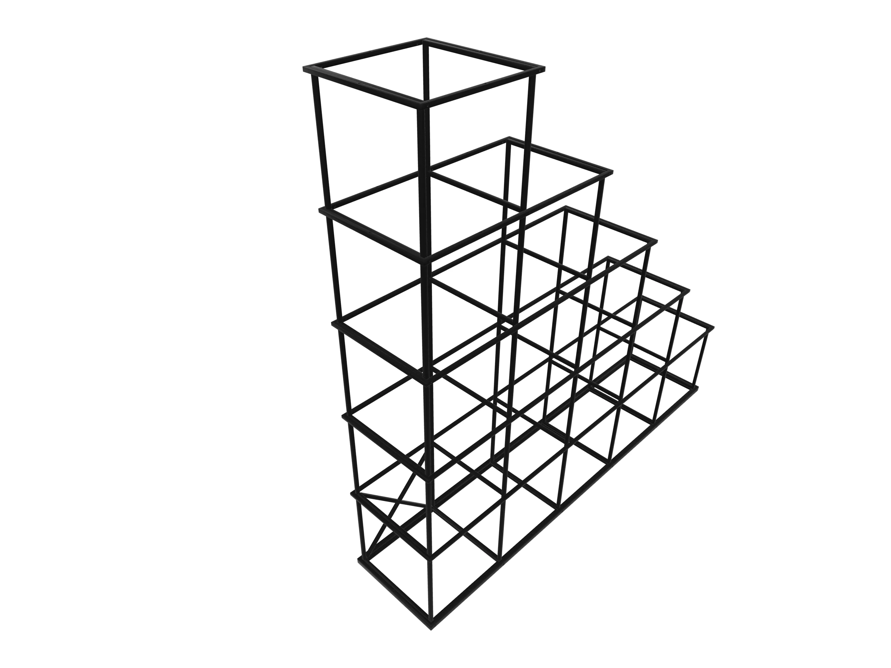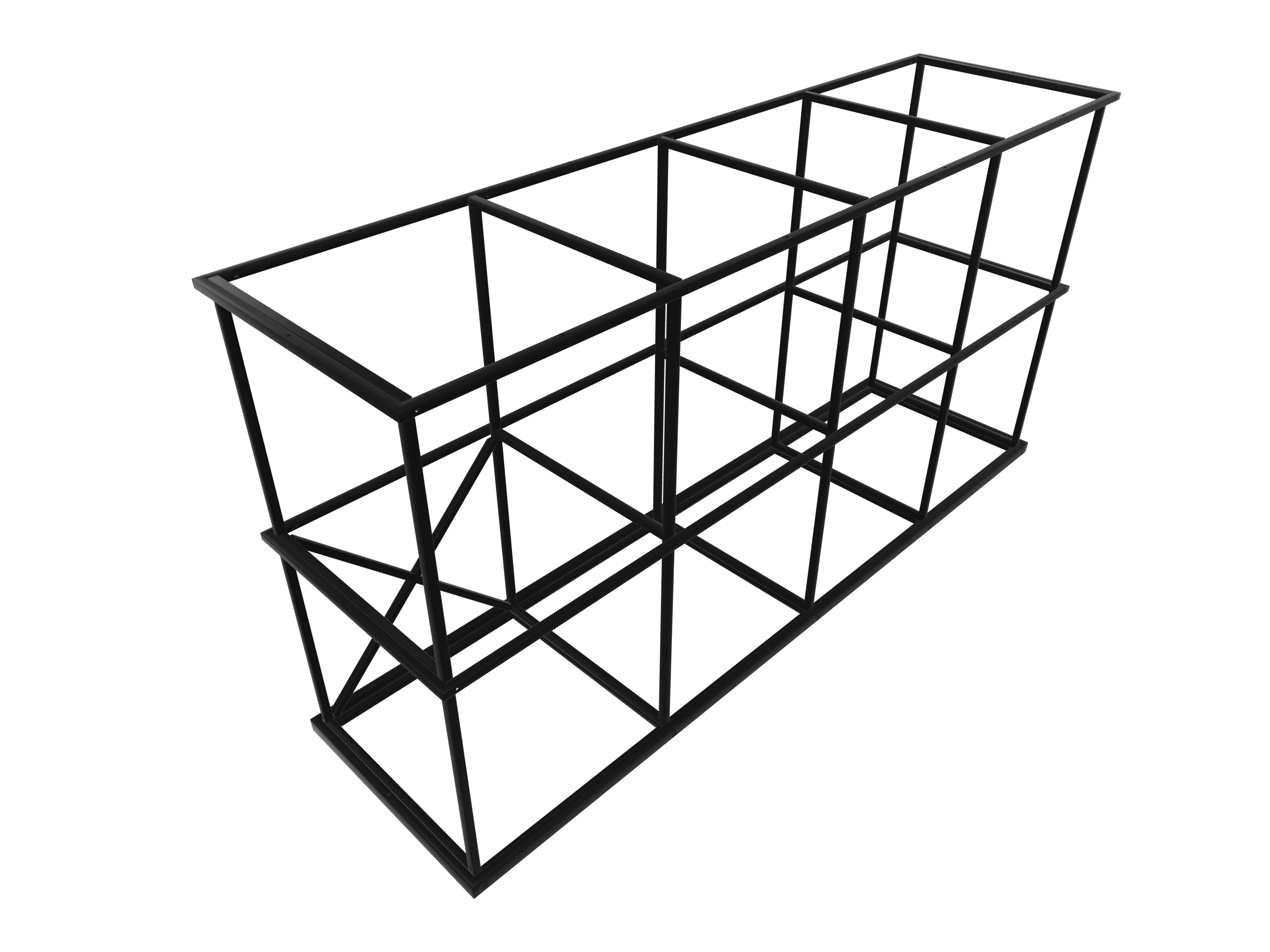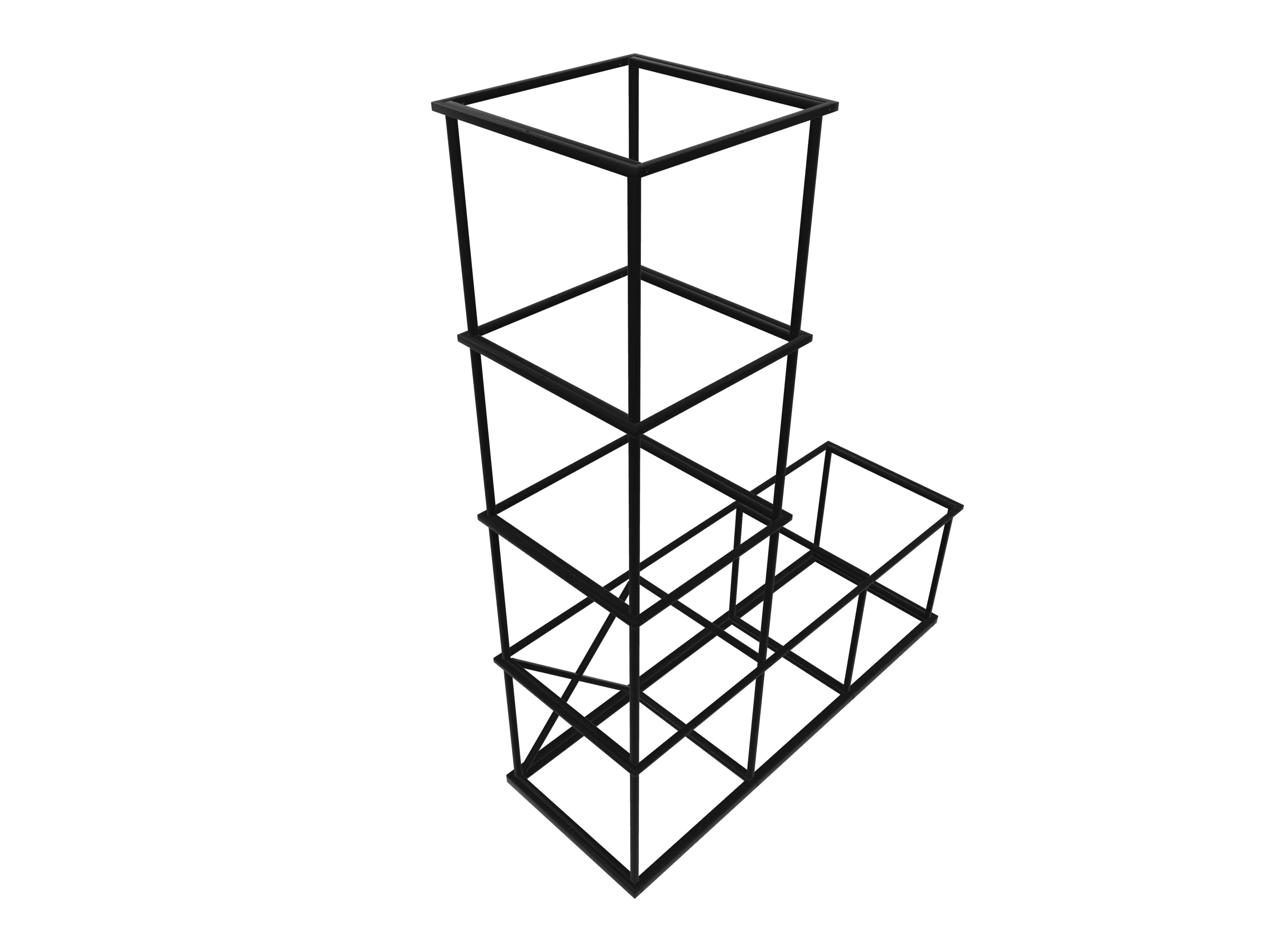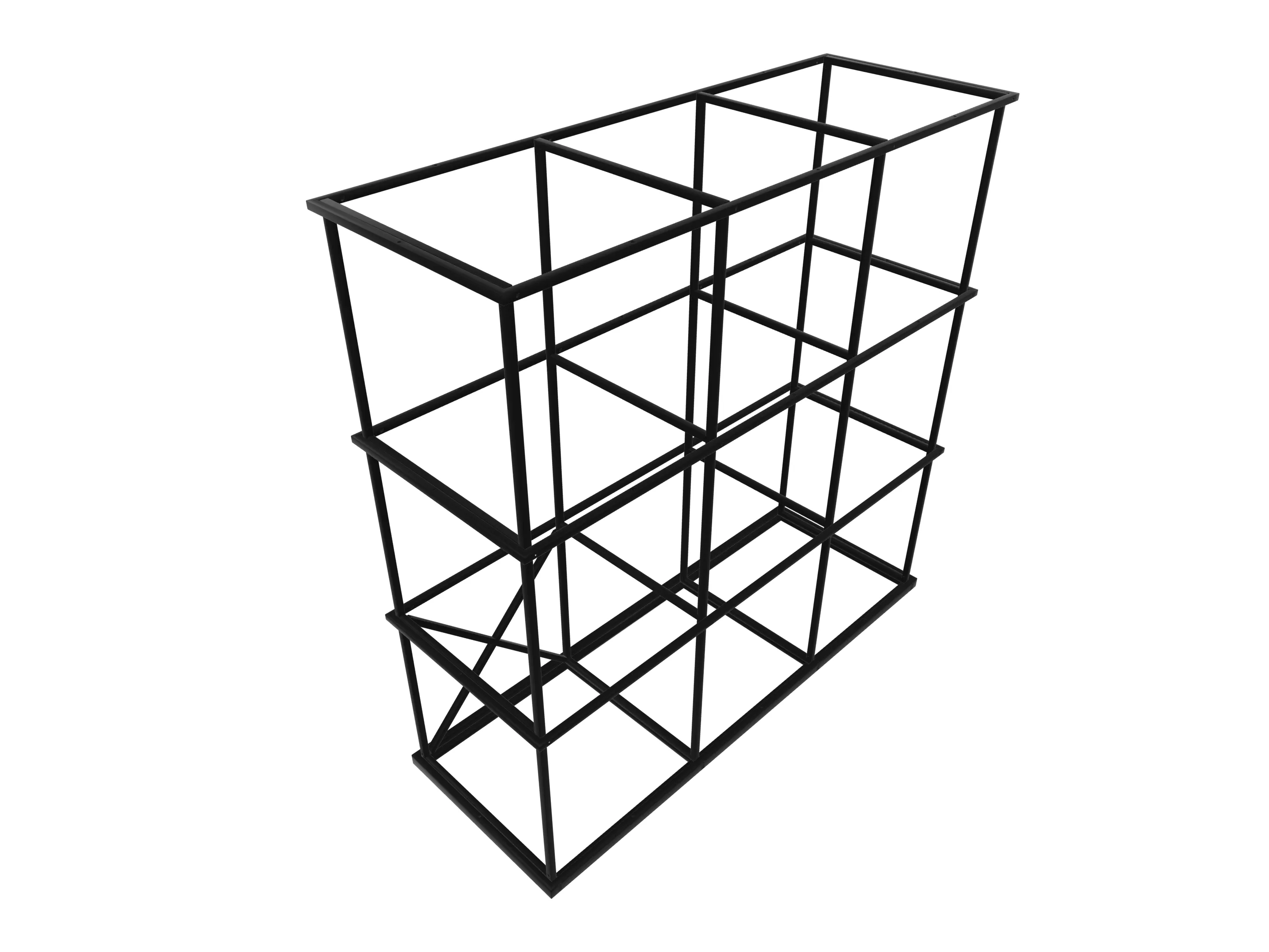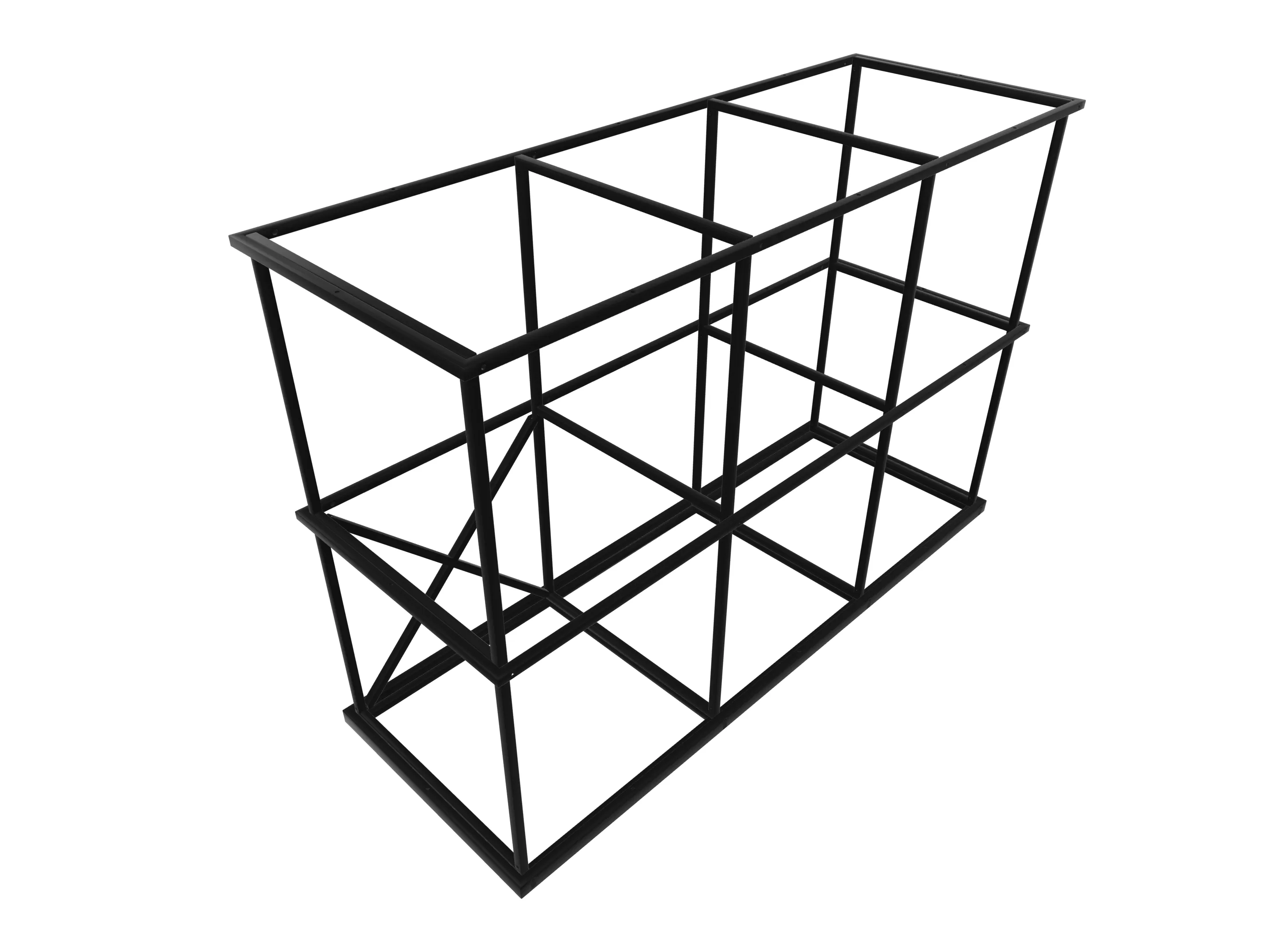 Vakkenkast systeem uit stalen kokerprofielen, voorzien van één schoorkruis. Inhoud moet los besteld worden. Afmeting: 484 x 466 x 484mm (BxHxD). Let op! Frame wordt af fabriek compleet geleverd!