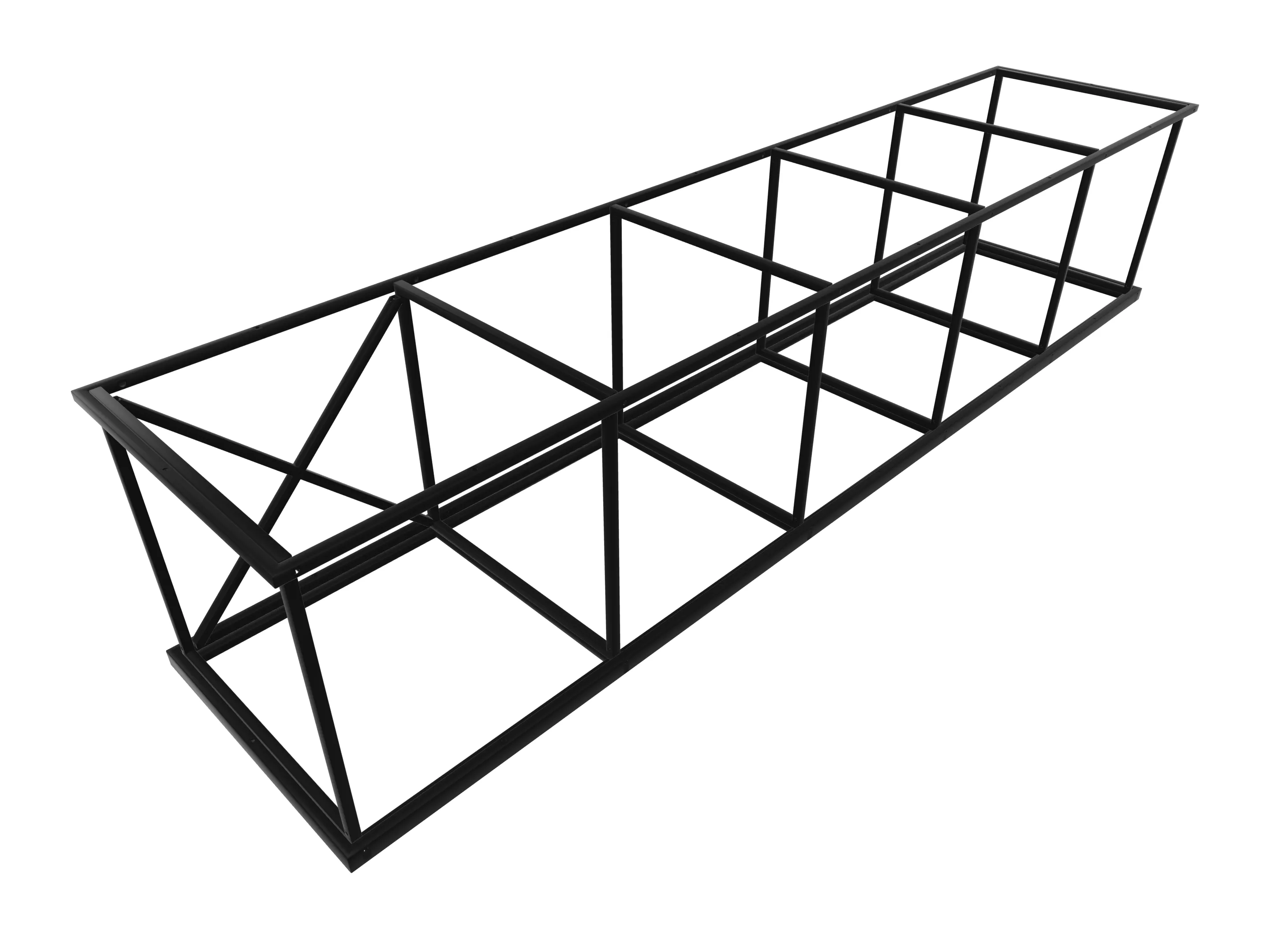 Vakkenkast systeem uit stalen kokerprofielen, voorzien van één schoorkruis. Inhoud moet los besteld worden. Afmeting: 484 x 901 x 484mm (BxHxD). Let op! Frame wordt af fabriek compleet geleverd!