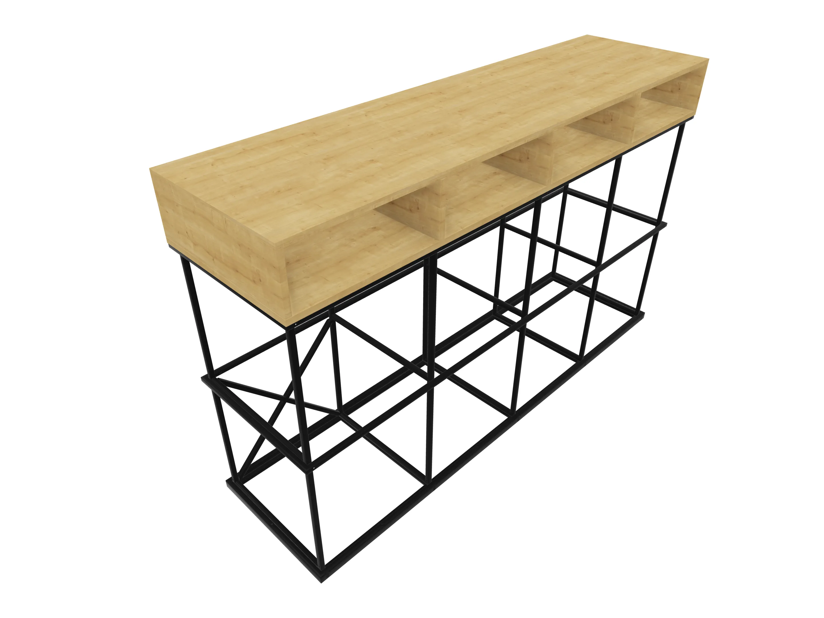 Vakkenkast systeem met werkblad uit stalen kokerprofielen, voorzien van één schoorkruis. Inhoud moet los besteld worden. Afmeting: 1790 x 1100 x 485mm (BxHxD). Let op! Frame wordt af fabriek compleet geleverd!