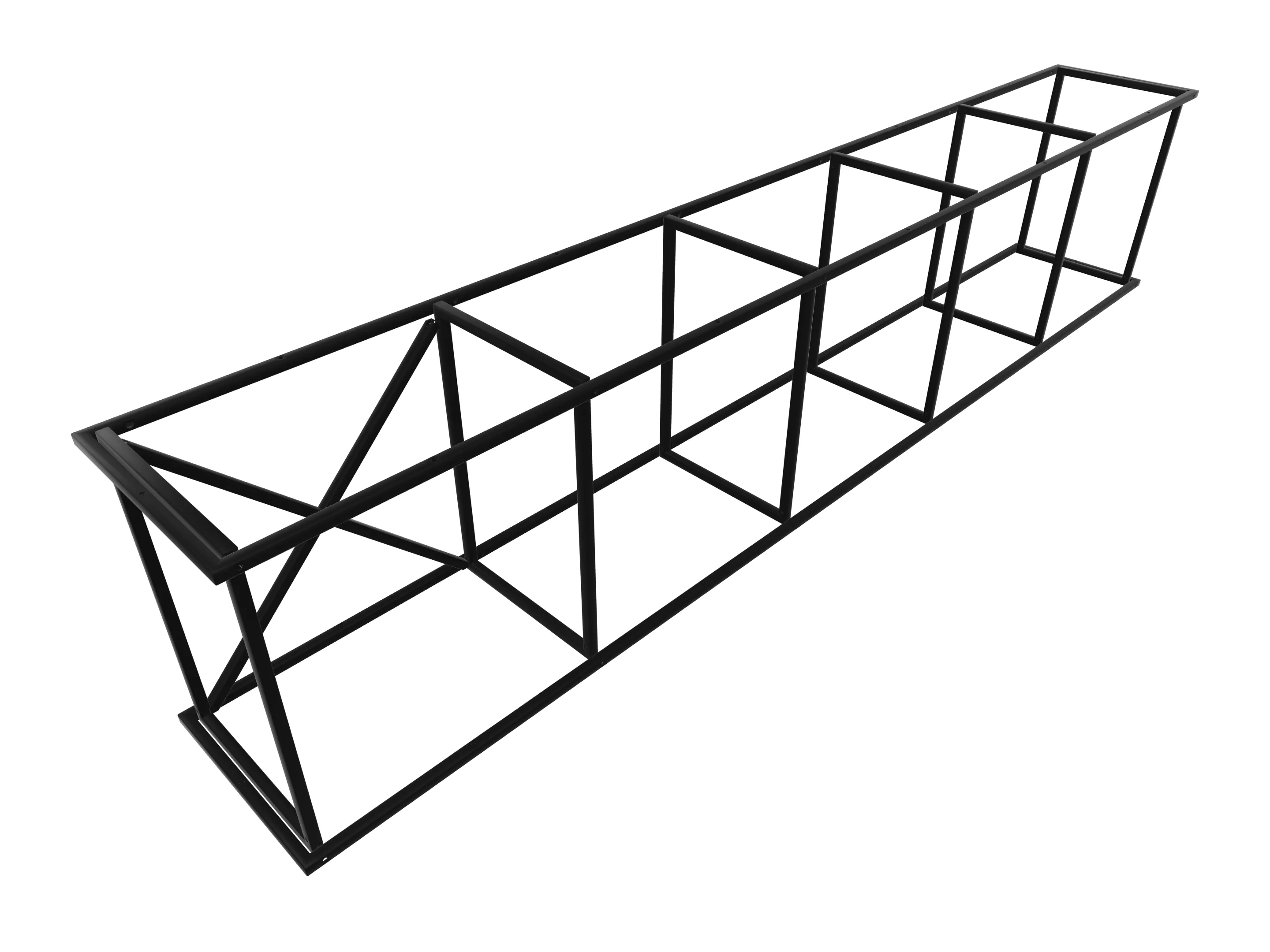 Hangend vakkenkast systeem uit stalen kokerprofielen, voorzien van één schoorkruis. Inhoud moet los besteld worden. Afmeting: 1789 x 466 x 320mm (BxHxD). Let op! Frame wordt af fabriek compleet geleverd!