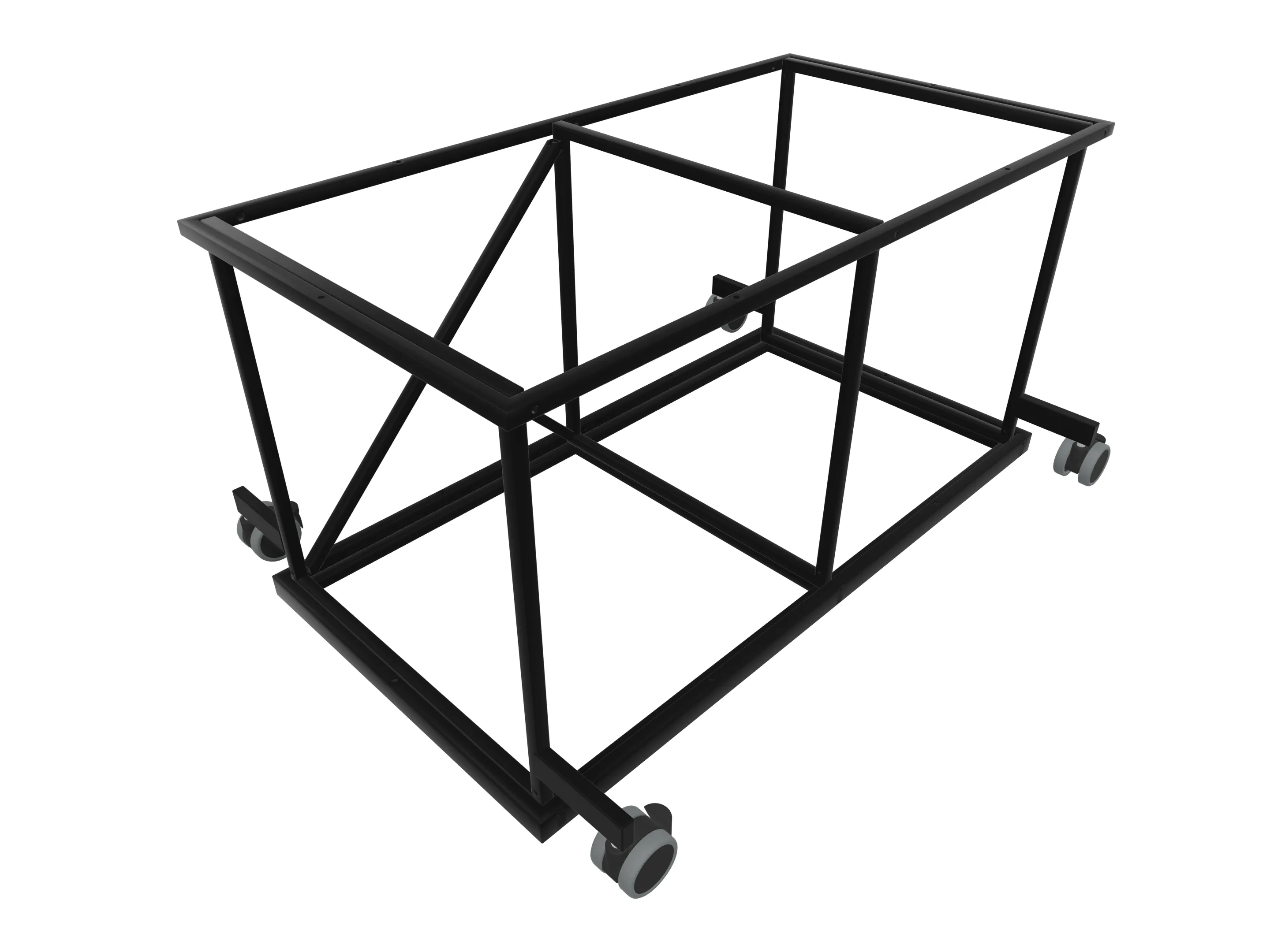 Vakkenkast systeem op wielen uit stalen kokerprofielen, voorzien van één schoorkruis. Inhoud moet los besteld worden. Afmeting: 945 x 470 x 690mm (BxHxD). Let op! Frame wordt af fabriek compleet geleverd!