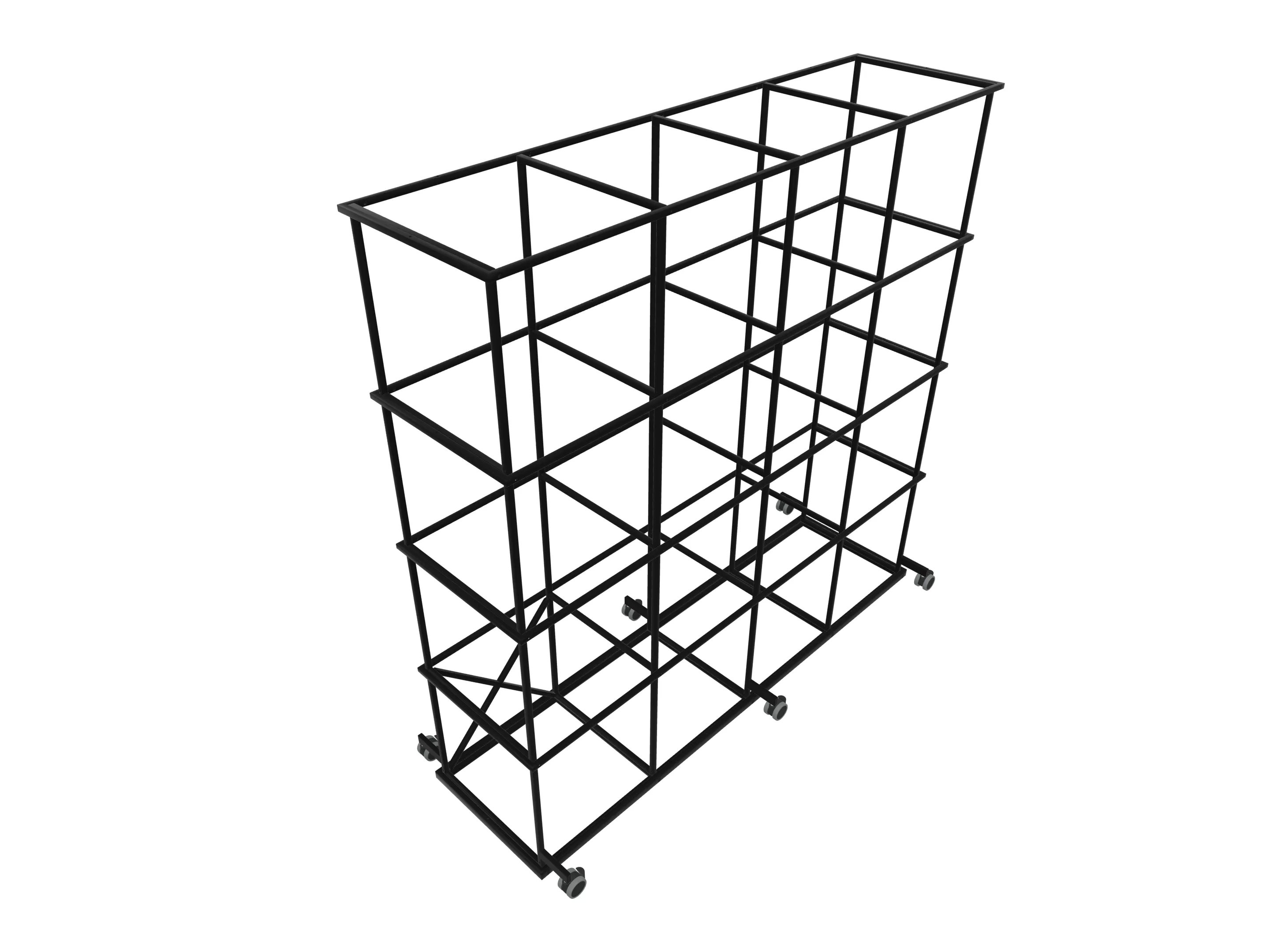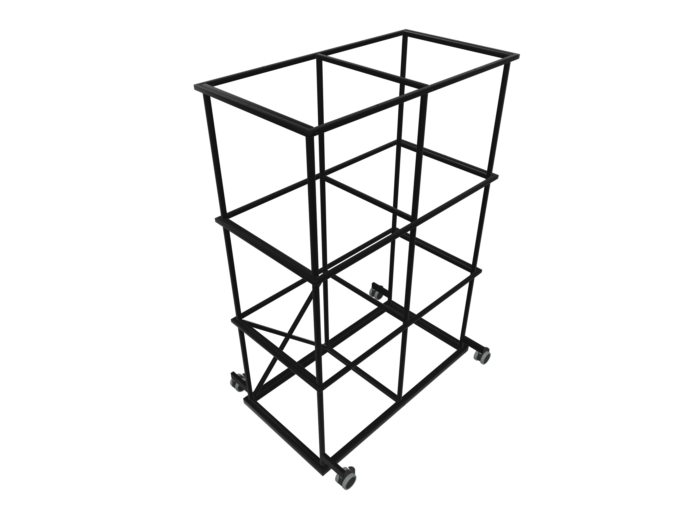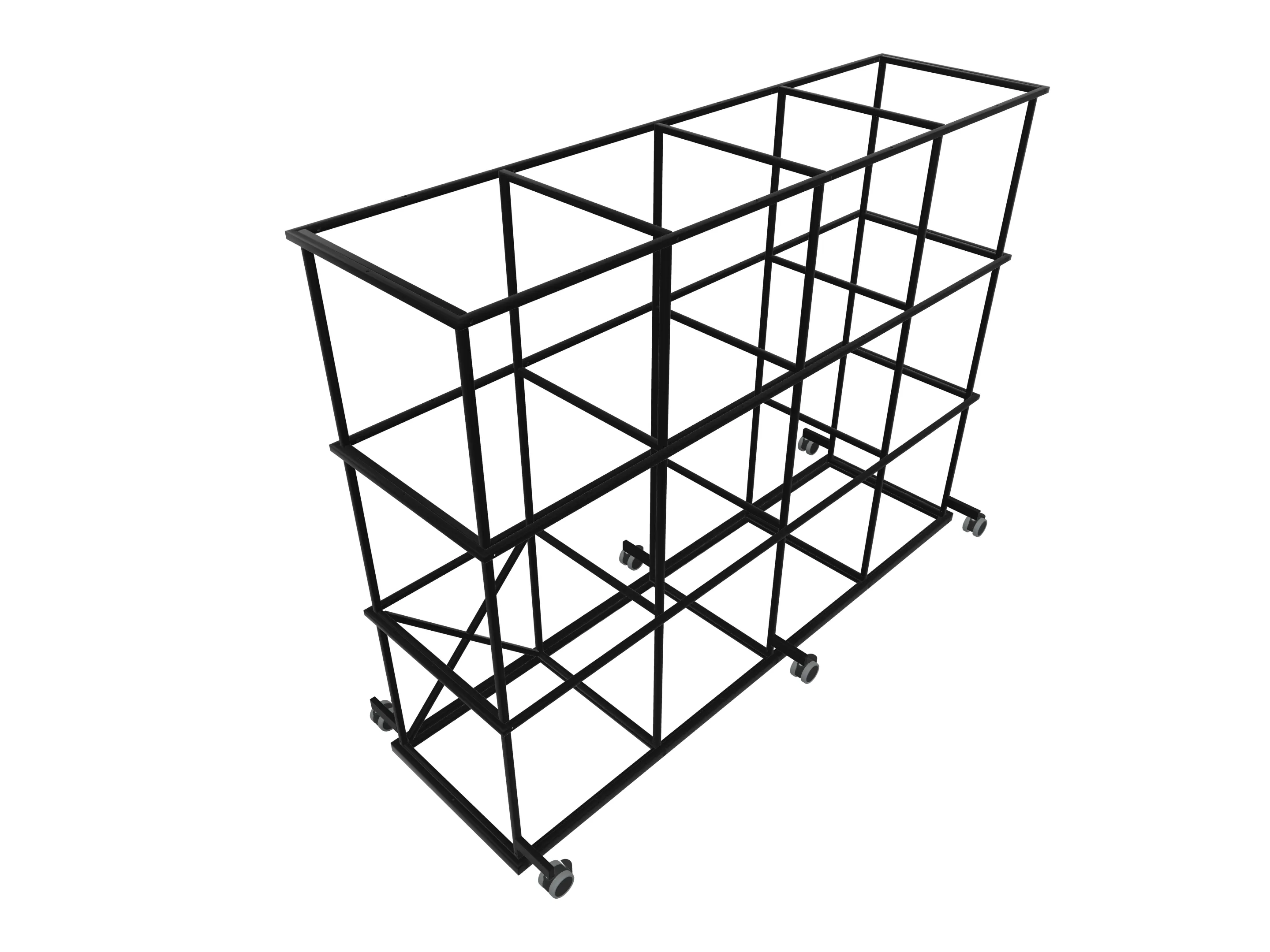 Vakkenkast systeem op wielen uit stalen kokerprofielen, voorzien van één schoorkruis. Inhoud moet los besteld worden. Afmeting: 945 x 905 x 690mm (BxHxD). Let op! Frame wordt af fabriek compleet geleverd!
